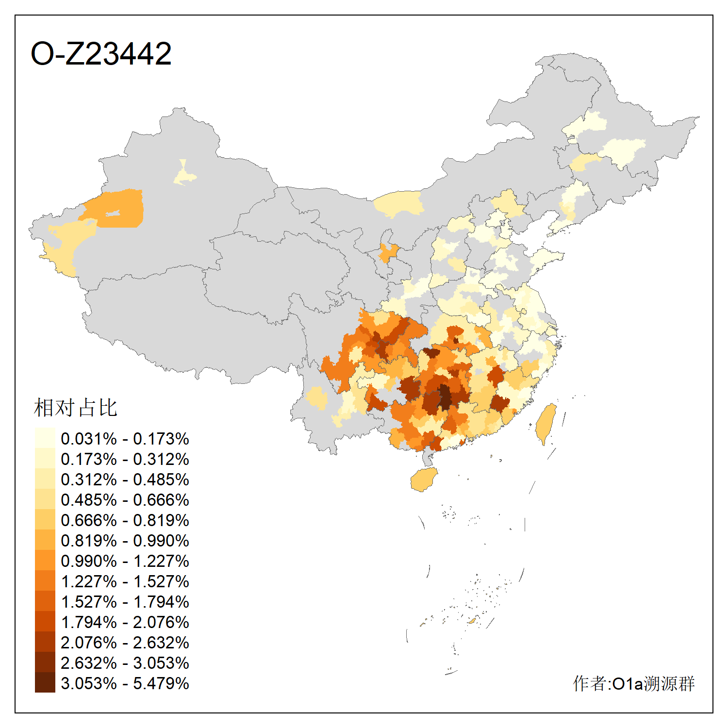| O-M119_O-Y14027_O-Z23193_O-M307_O-F446_O-F5498_O-Y125152_O-Z23406_O-Z23424_O-Z23392 | 4670 | 0.846% | 1653人(含下游)![]() | 727人(不含下游)![]() |