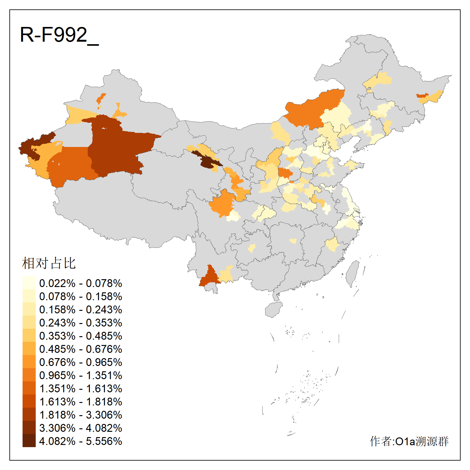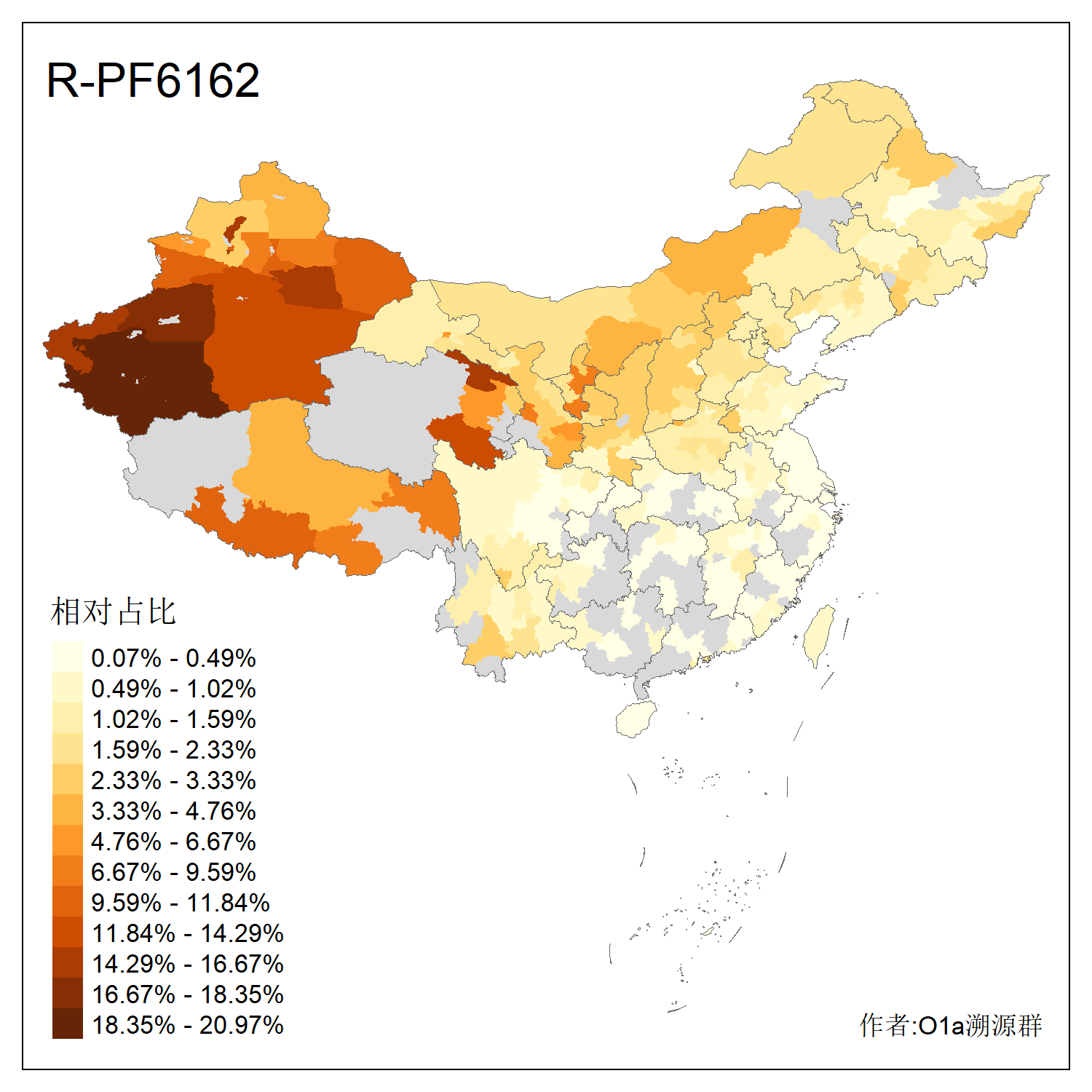 | R_R-Y482_R1_R1a_R-M459_R-M198_R-M417_R-PF6162_R-F992 | 4600 | 0.931% | 1919人(含下游)![]() | 162人(不含下游)![]() |