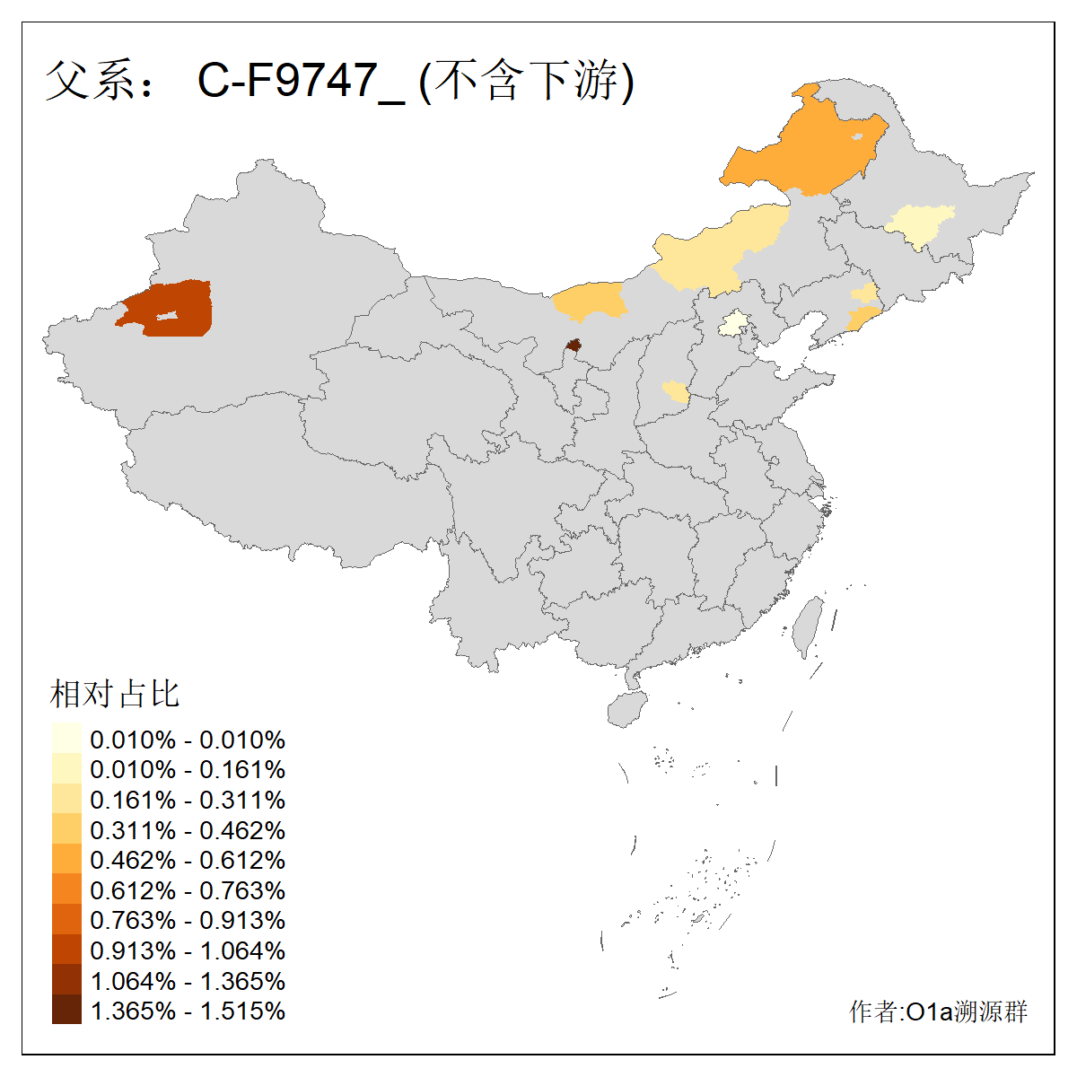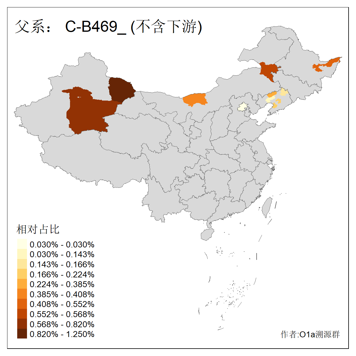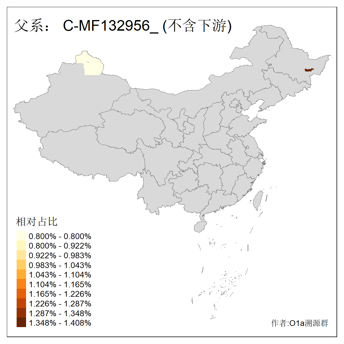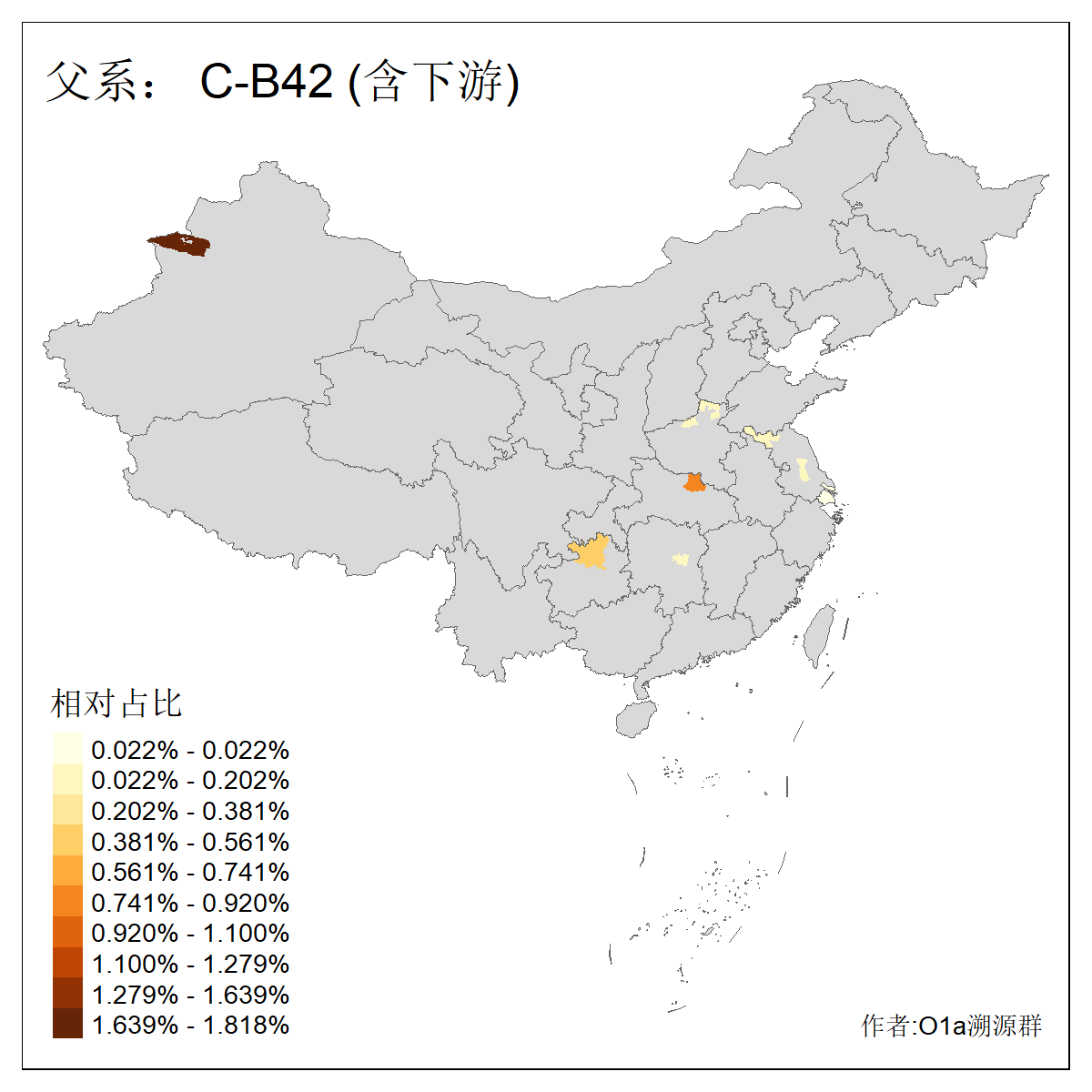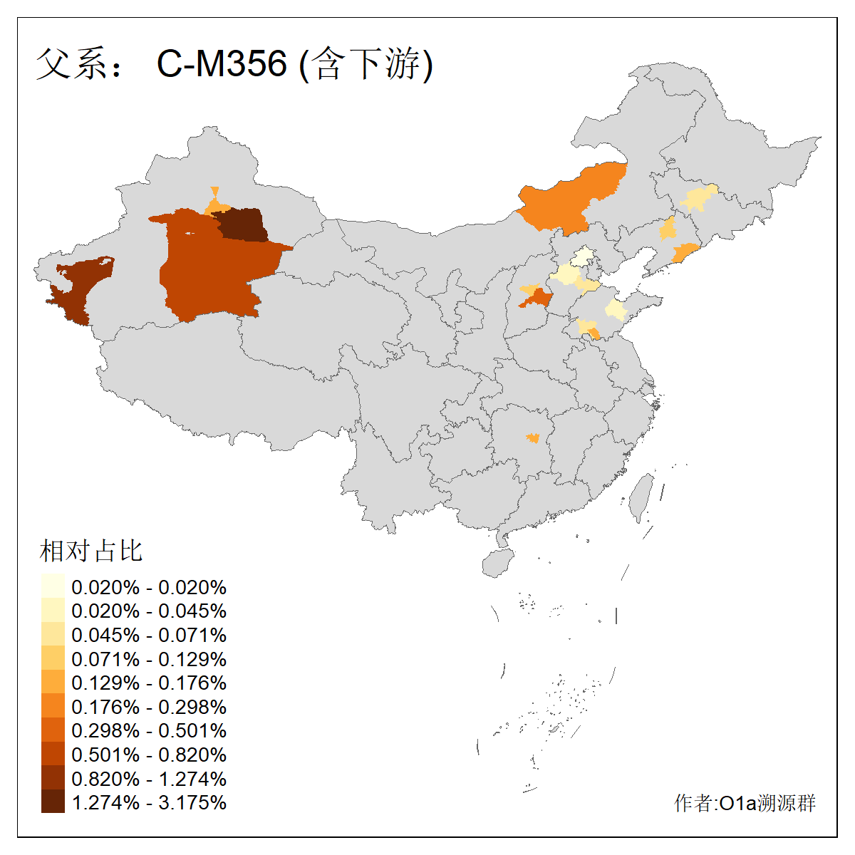 | C-M130_C-M217_C-L1373_C-F3447_C-F1699_C-Y6715_C-M504 | 8600 | 0.337% | 730人(含下游) 赵:47 李:36 张:34 关:29 王:26 吴:20 马:17 阿:16 刘:14 白:14 艾:14 何:13 巴:12 哈:11 ![]() | 10人(不含下游) 赵:3 张:1 洪:1 祖:1 肖:1 鄂:1 马:1 ![]() |