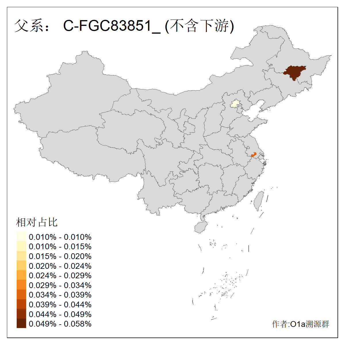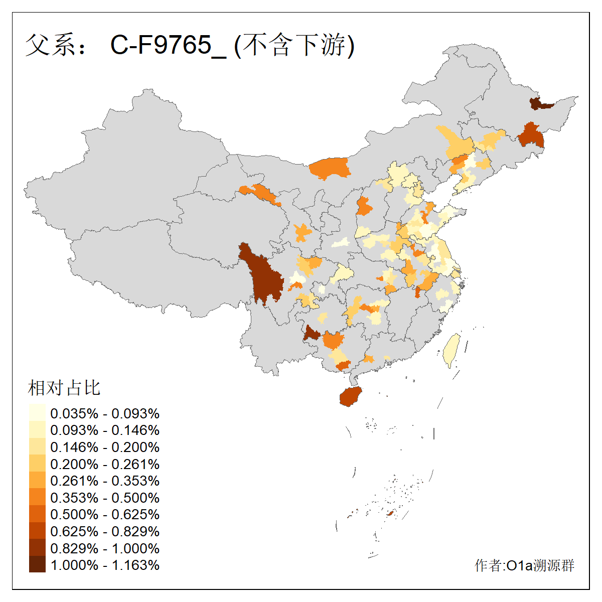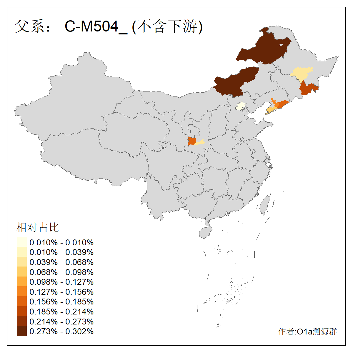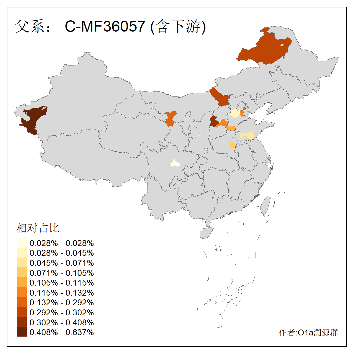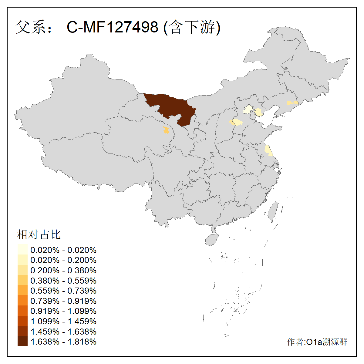 | C-M130_C-M217_C-L1373_C-F3447_C-F1699_C-Y6715_C-M504 | 8600 | 0.337% | 730人(含下游) 赵:47 李:36 张:34 关:29 王:26 吴:20 马:17 阿:16 刘:14 白:14 艾:14 何:13 巴:12 哈:11 ![]() | 10人(不含下游) 赵:3 张:1 洪:1 祖:1 肖:1 鄂:1 马:1 ![]() |