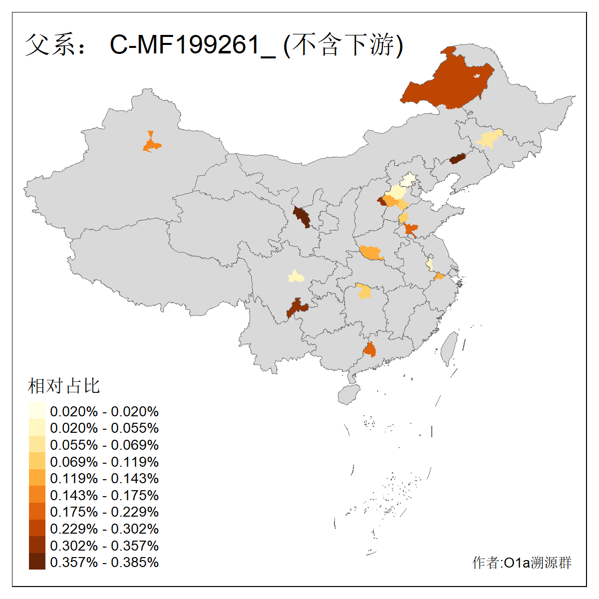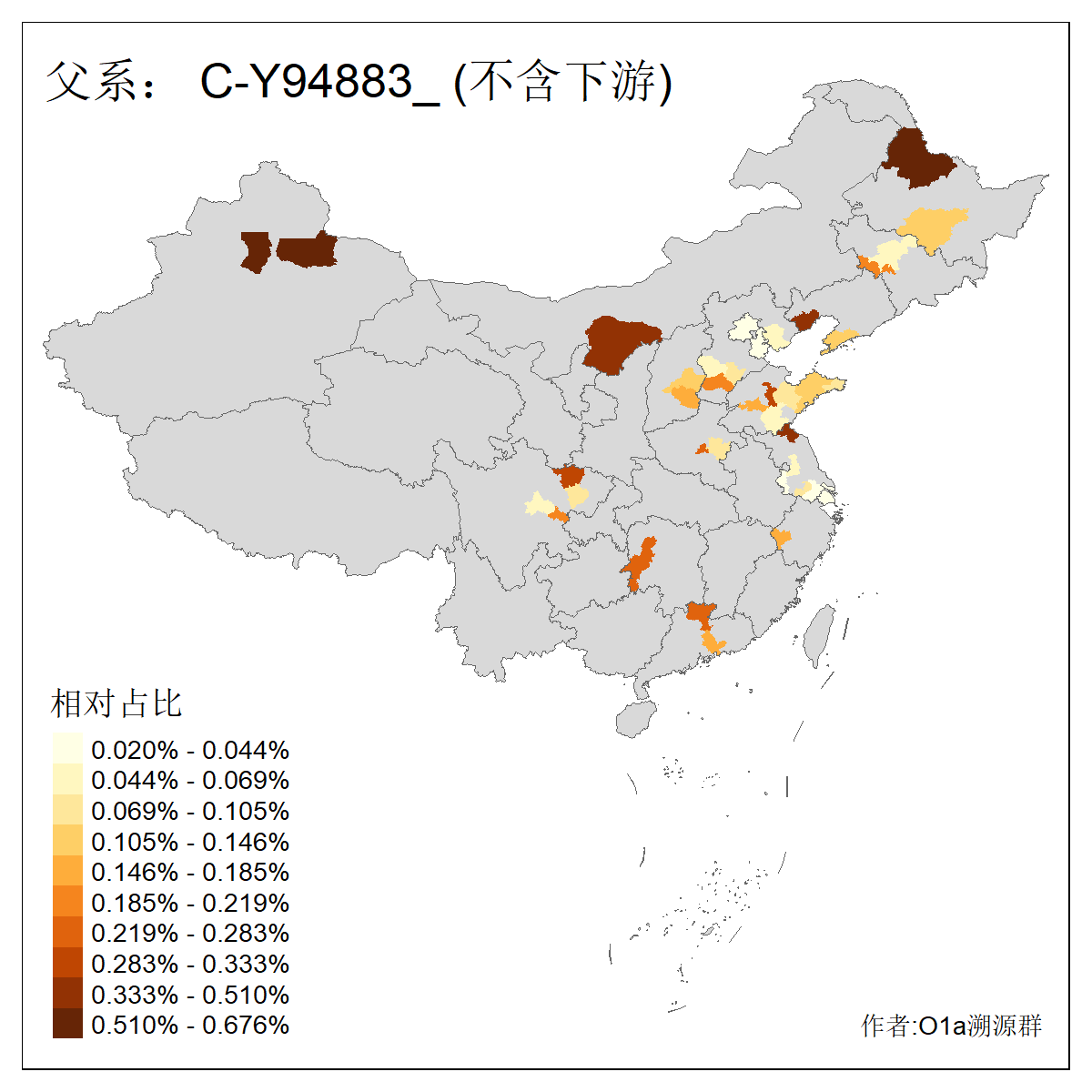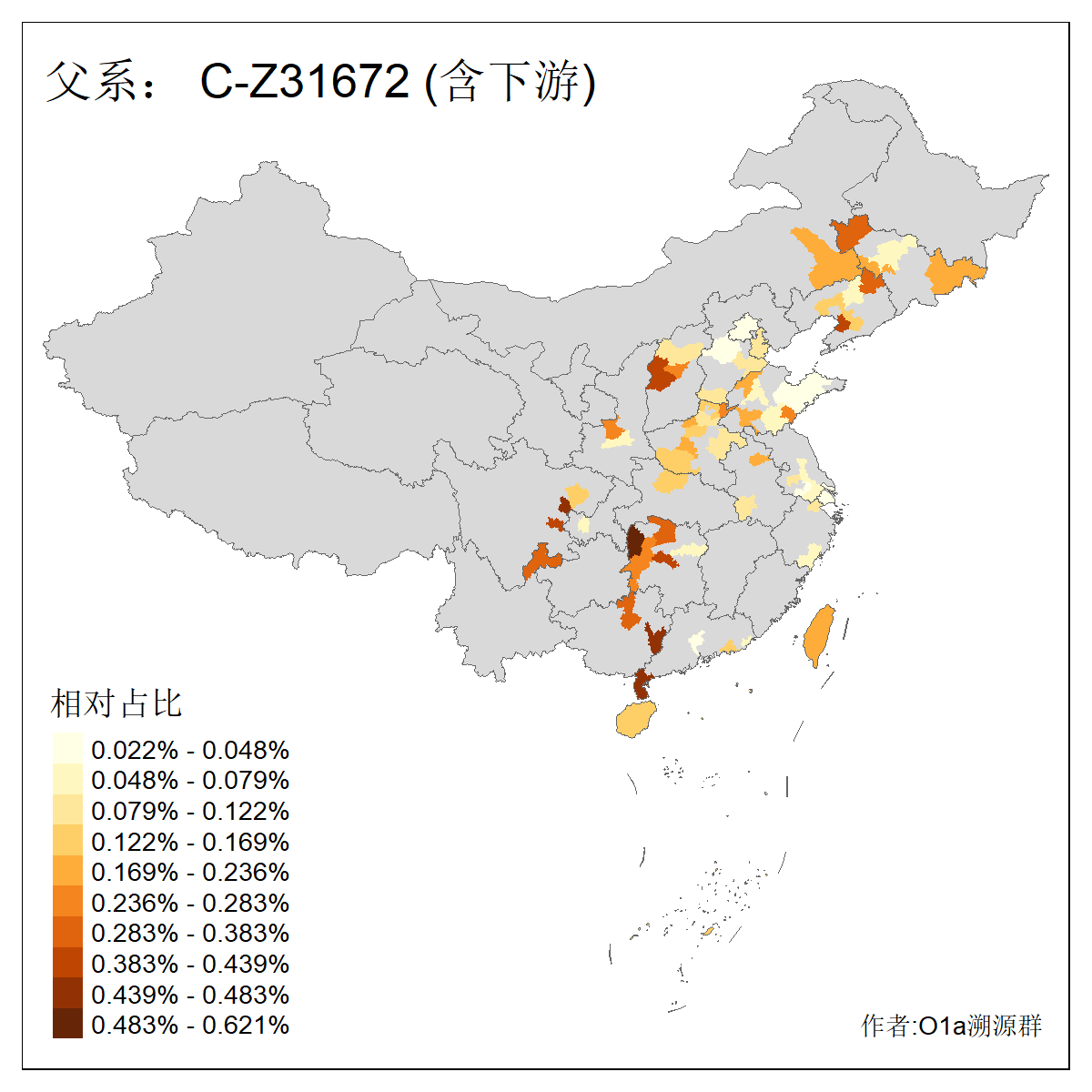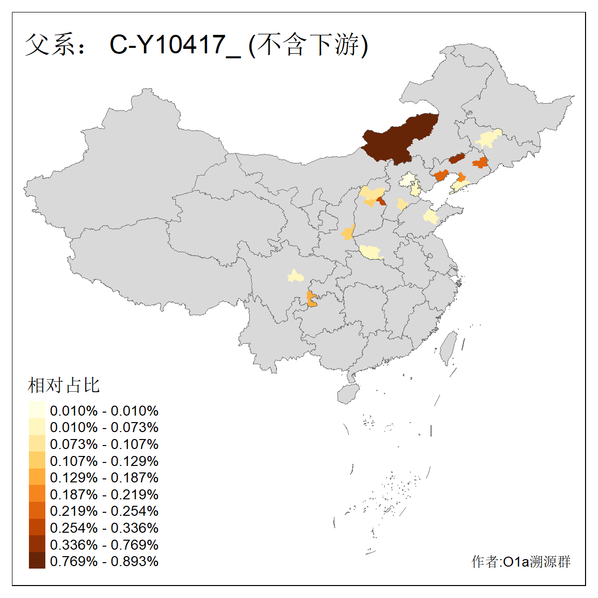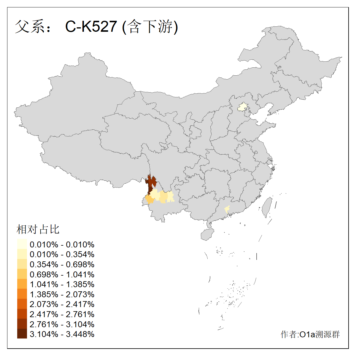 | C-M130_C-M217_C-L1373_C-F3447_C-F1699_C-Y6715_C-M504 | 8600 | 0.337% | 730人(含下游) 赵:47 李:36 张:34 关:29 王:26 吴:20 马:17 阿:16 刘:14 白:14 艾:14 何:13 巴:12 哈:11 ![]() | 10人(不含下游) 赵:3 张:1 洪:1 祖:1 肖:1 鄂:1 马:1 ![]() |