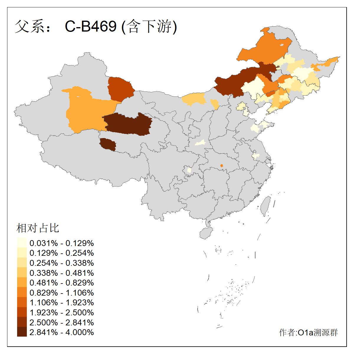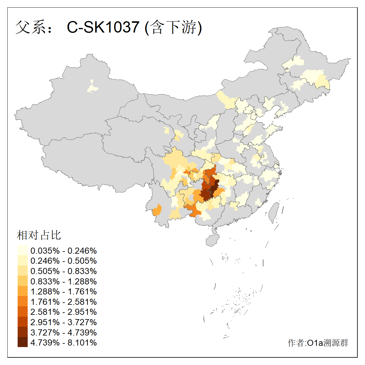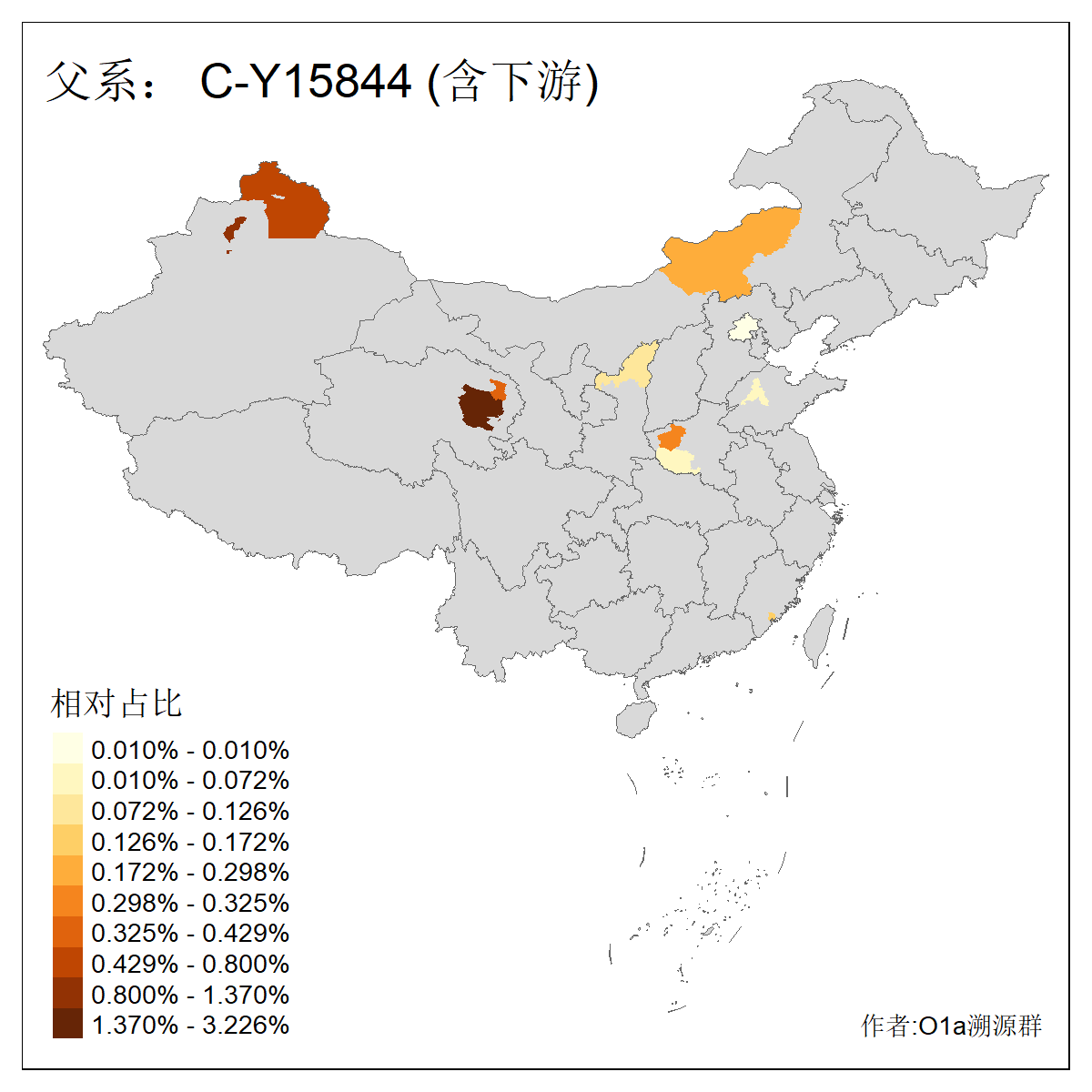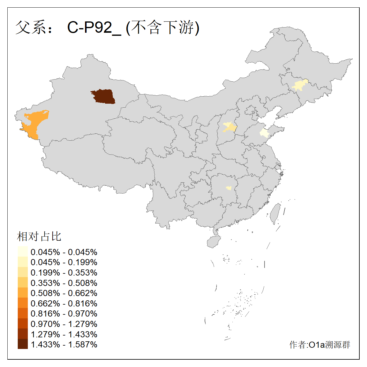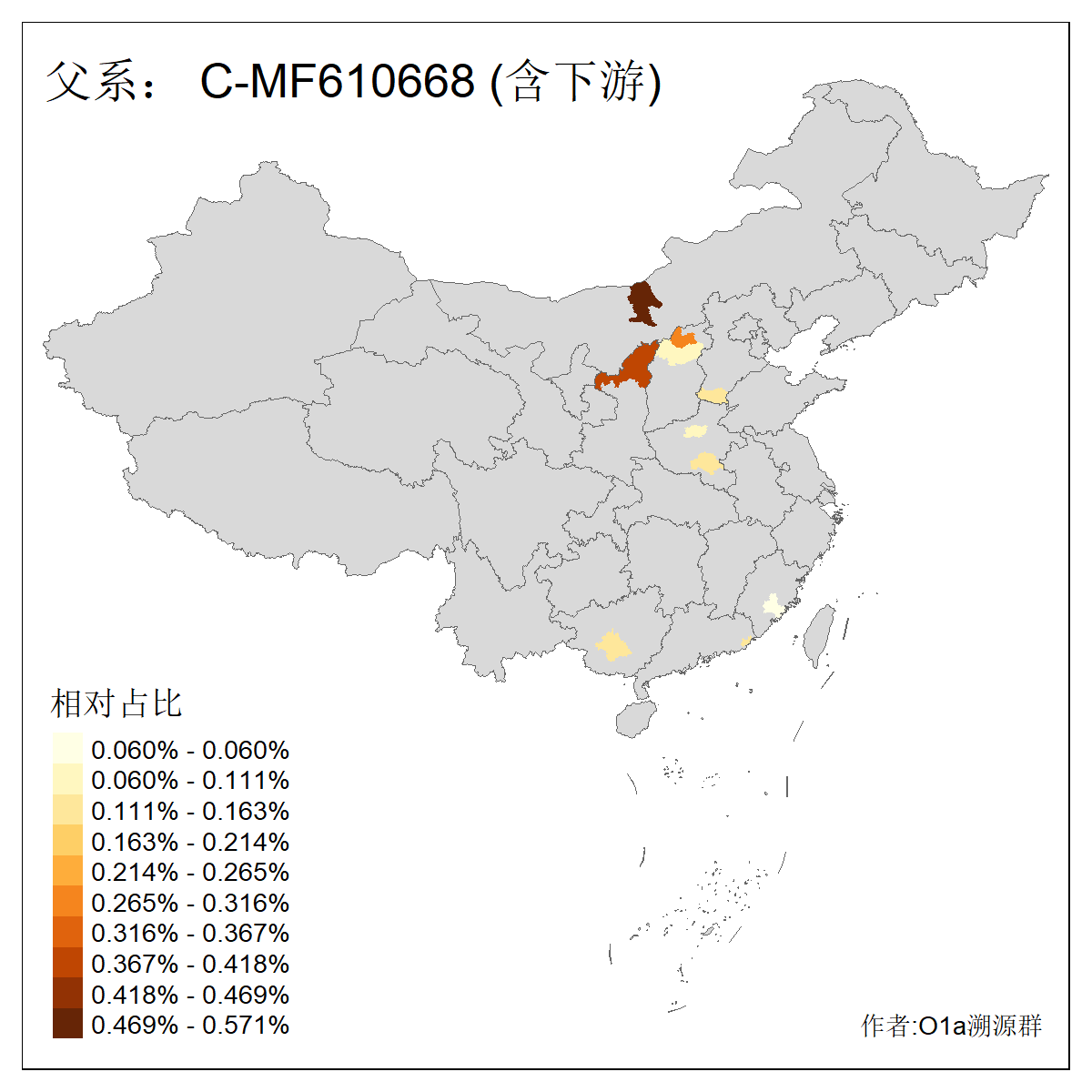 | C-M130_C-M217_C-L1373_C-F3447_C-F1699_C-Y6715_C-M504 | 8600 | 0.337% | 730人(含下游) 赵:47 李:36 张:34 关:29 王:26 吴:20 马:17 阿:16 刘:14 白:14 艾:14 何:13 巴:12 哈:11 ![]() | 10人(不含下游) 赵:3 张:1 洪:1 祖:1 肖:1 鄂:1 马:1 ![]() |