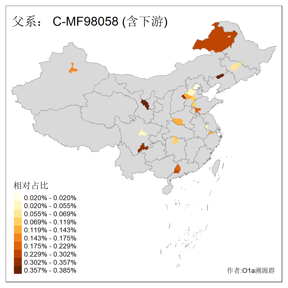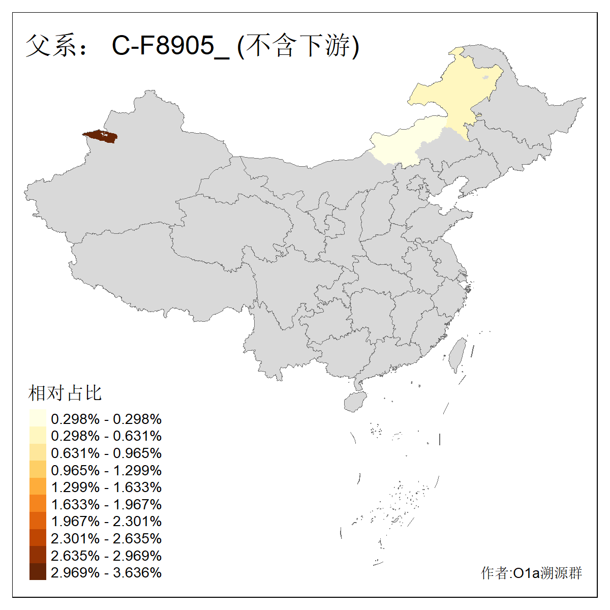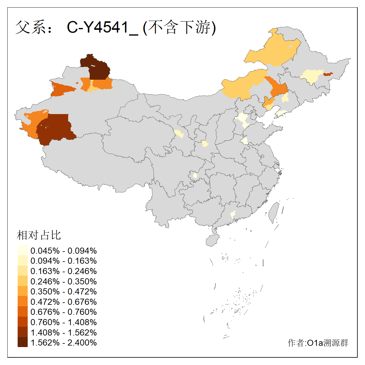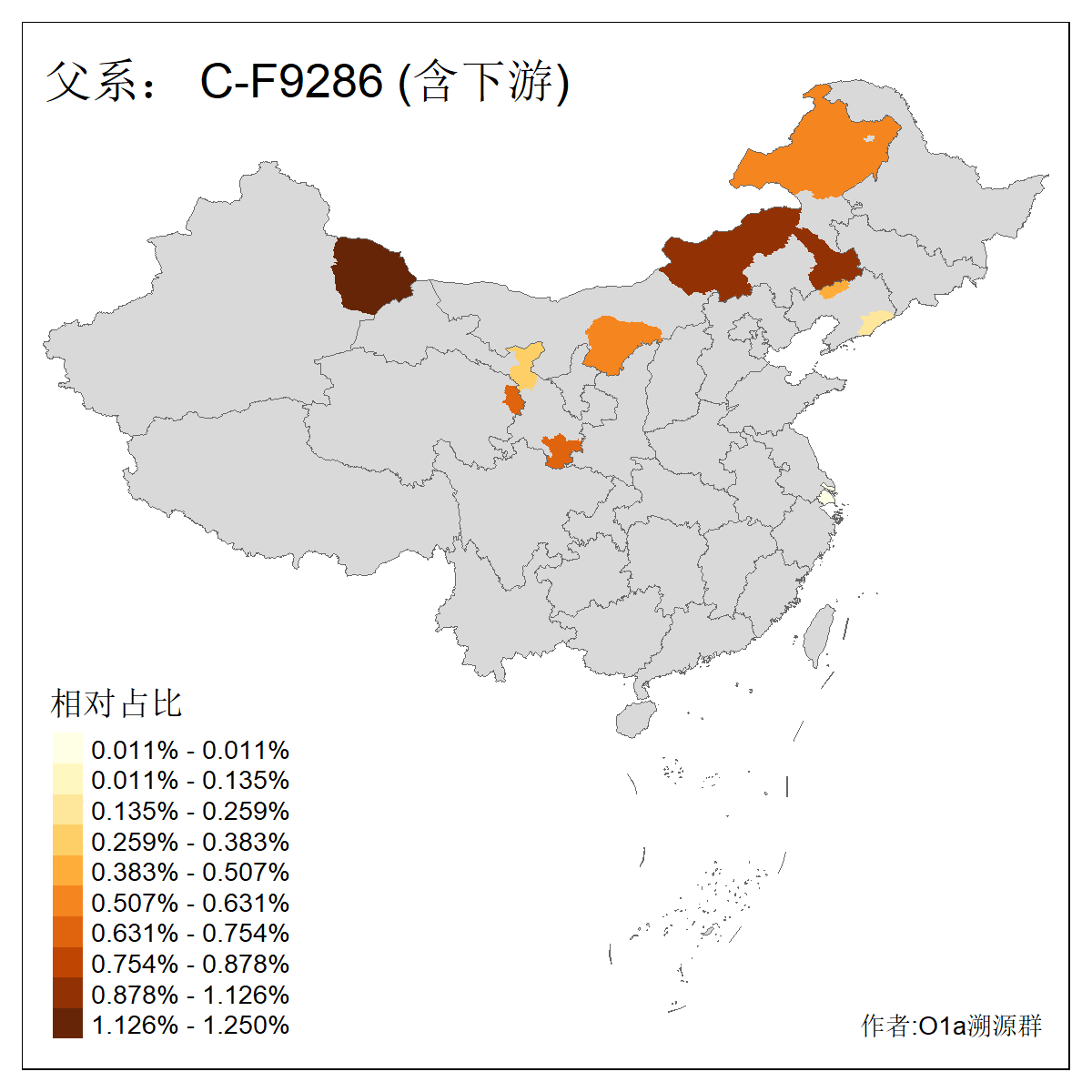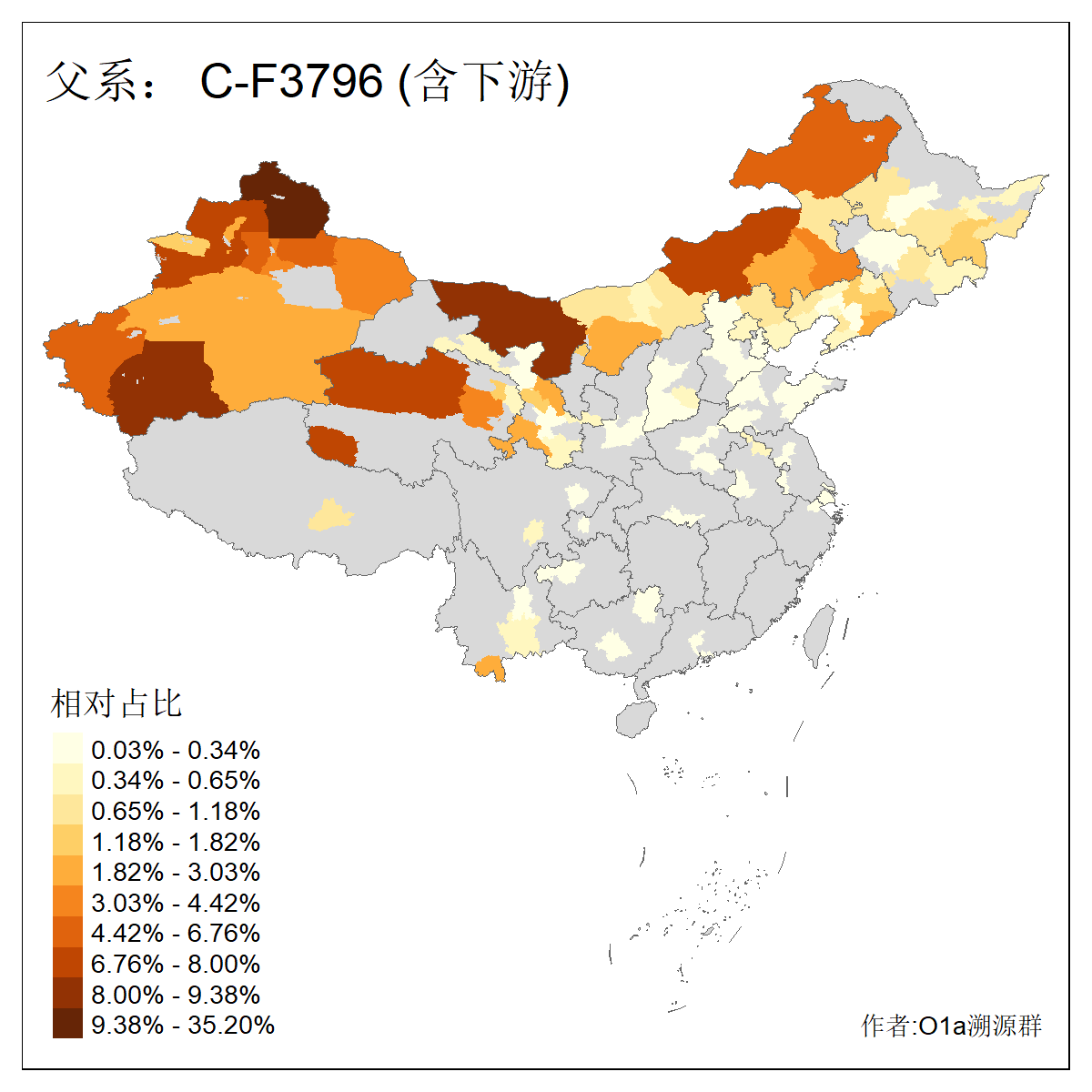 | C-M130_C-M217_C-L1373_C-F3447_C-F1699_C-Y6715_C-M504 | 8600 | 0.337% | 730人(含下游) 赵:47 李:36 张:34 关:29 王:26 吴:20 马:17 阿:16 刘:14 白:14 艾:14 何:13 巴:12 哈:11 ![]() | 10人(不含下游) 赵:3 张:1 洪:1 祖:1 肖:1 鄂:1 马:1 ![]() |