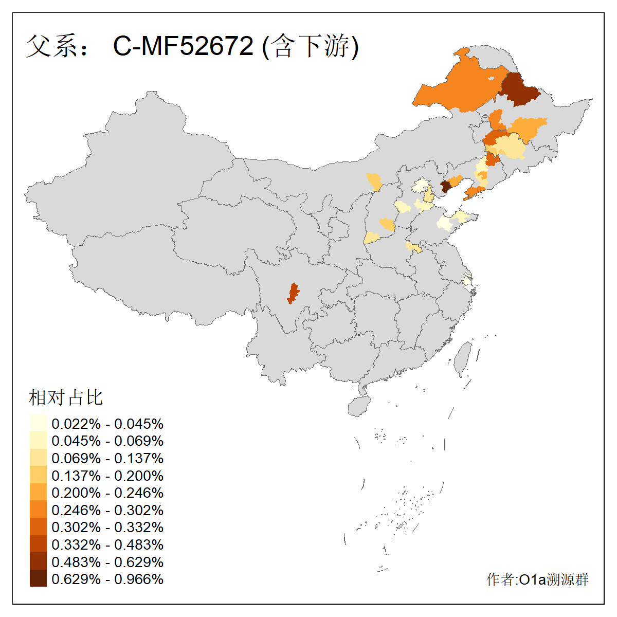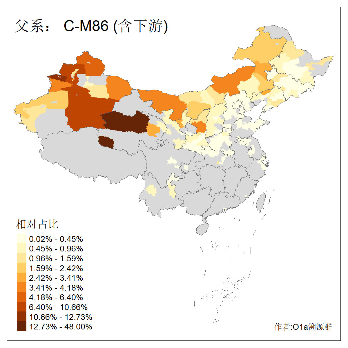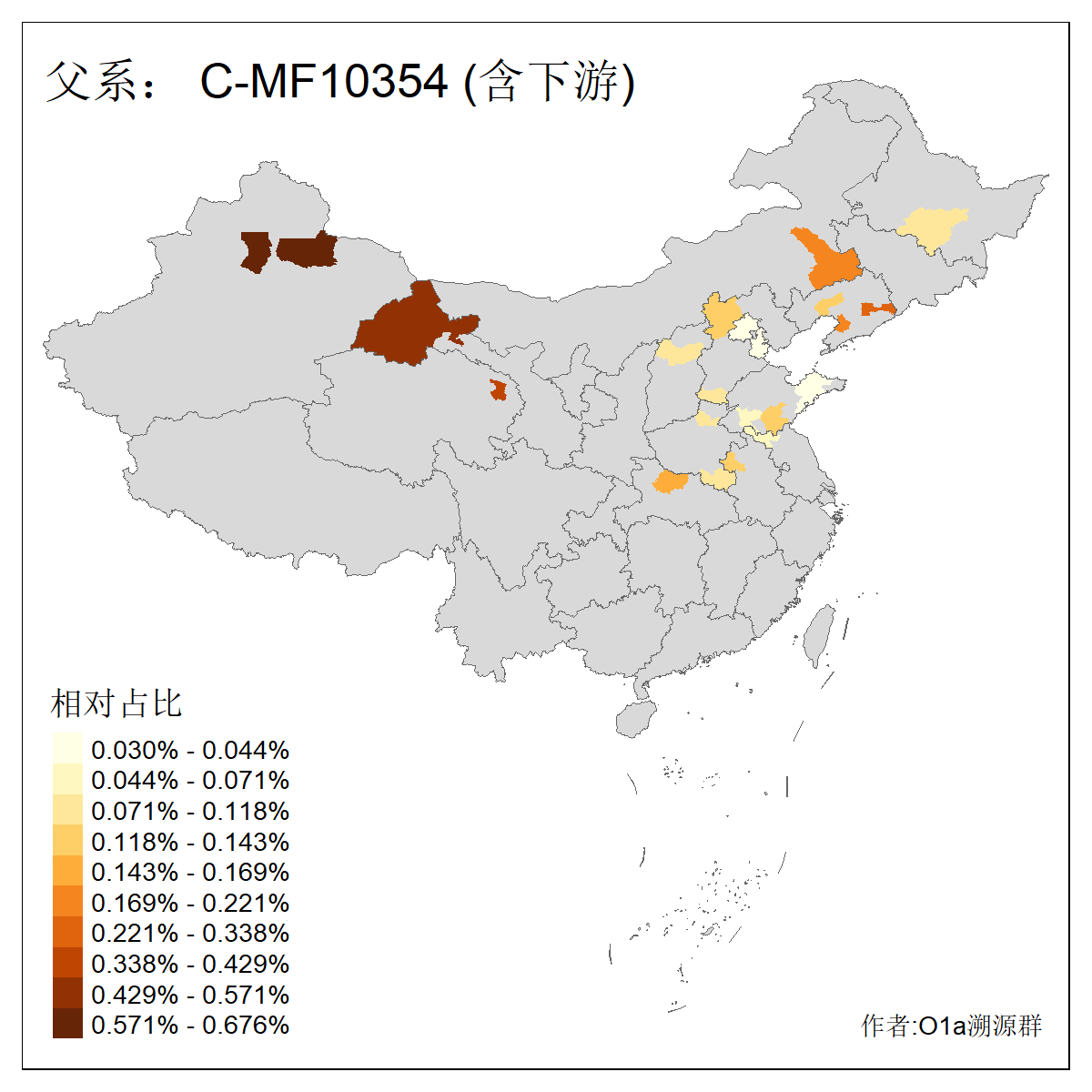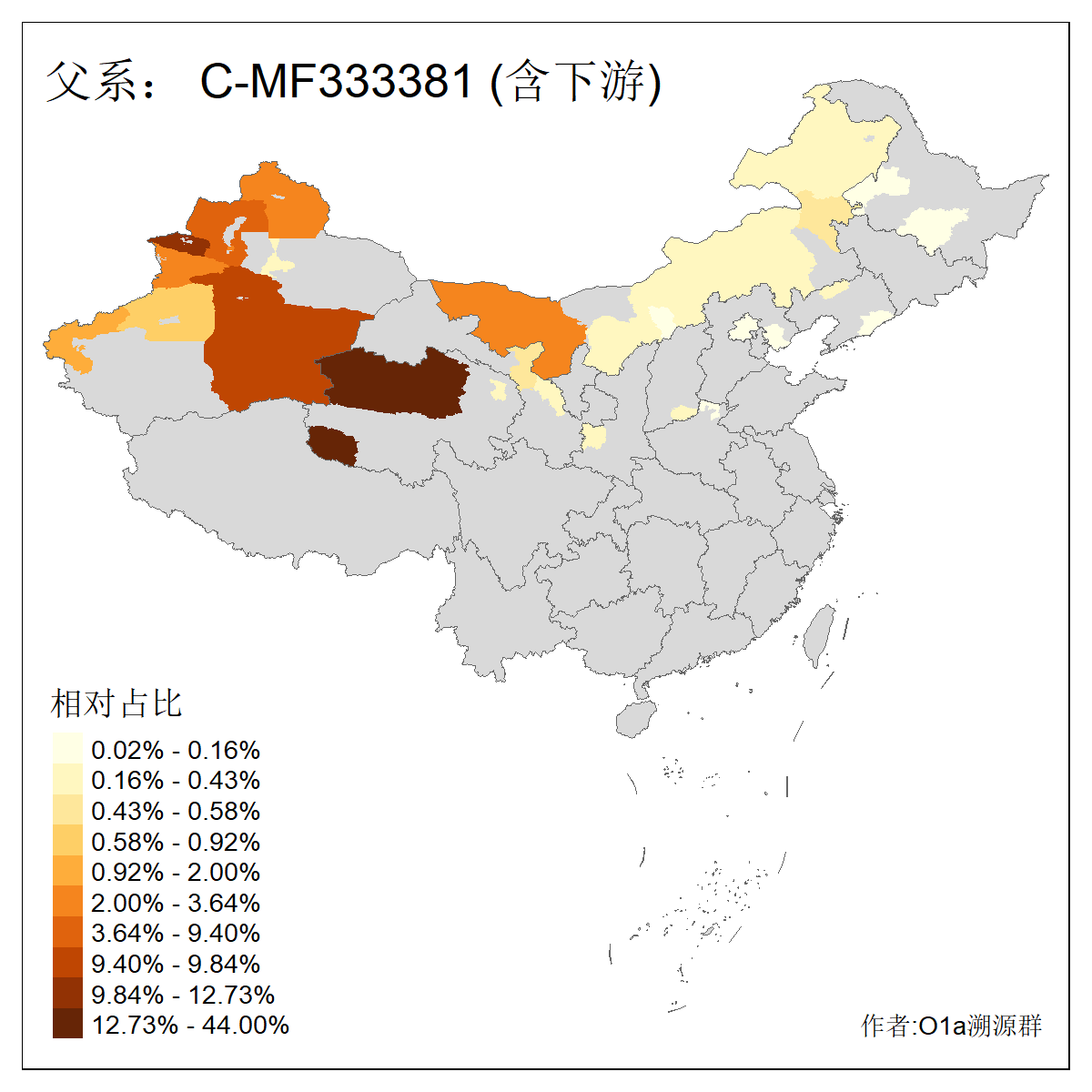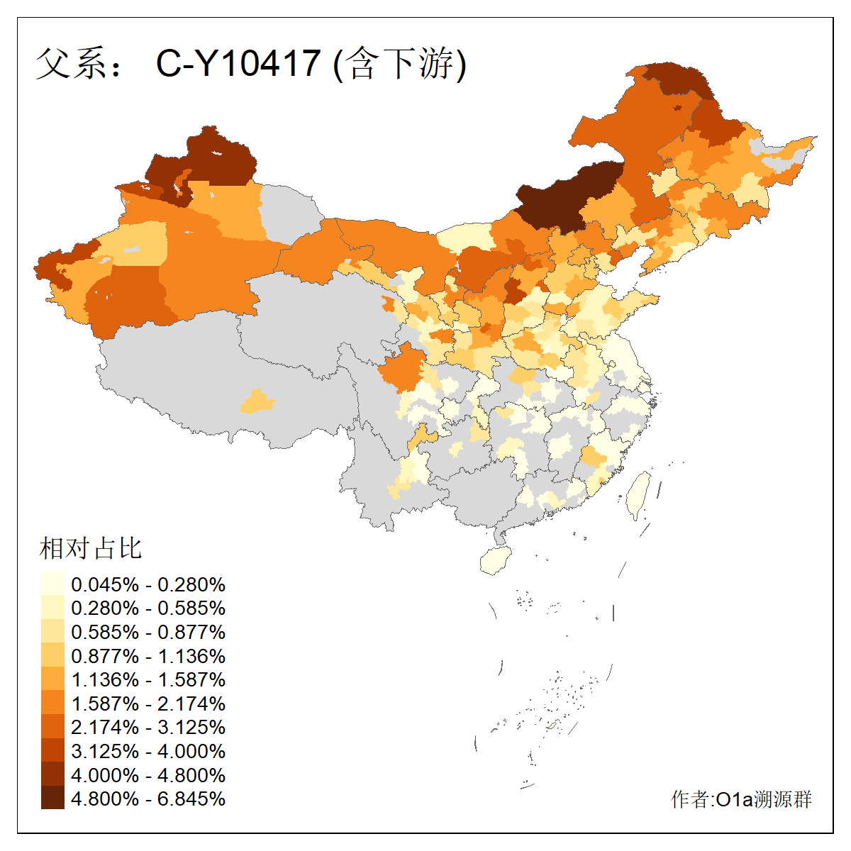 | C-M130_C-M217_C-L1373_C-F3447_C-F1699_C-Y6715_C-M504 | 8600 | 0.337% | 730人(含下游) 赵:47 李:36 张:34 关:29 王:26 吴:20 马:17 阿:16 刘:14 白:14 艾:14 何:13 巴:12 哈:11 ![]() | 10人(不含下游) 赵:3 张:1 洪:1 祖:1 肖:1 鄂:1 马:1 ![]() |