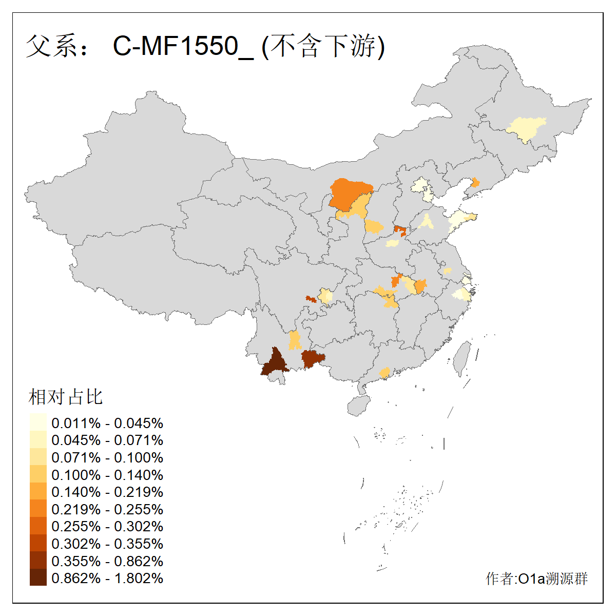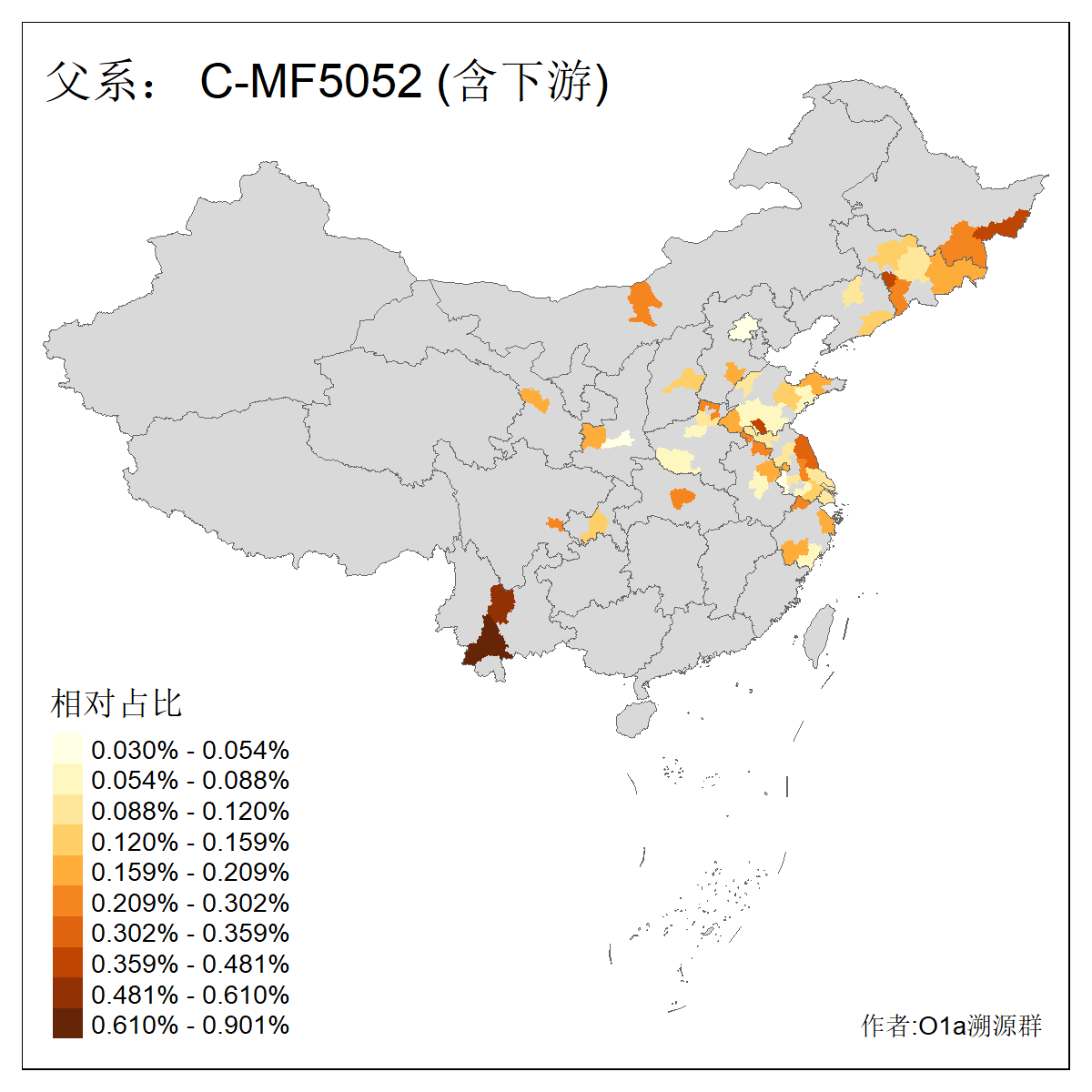 | C-M130_C-M217_C-F1067_C-CTS2_C-F978_C-F3895_C-CTS2657_C-A14901_C-A14909_C-MF1553_C-MF3752 | 3930 | 0.058% | 122人(含下游) 李:12 孙:9 张:8 王:8 刘:7 马:6 袁:5 徐:4 朱:4 郭:4 陆:4 陈:4 牛:3 付:2 ![]() | 70人(不含下游) 李:7 王:7 孙:5 袁:5 张:4 刘:3 徐:3 牛:3 郭:3 朱:2 段:2 陆:2 马:2 万:1 ![]() |