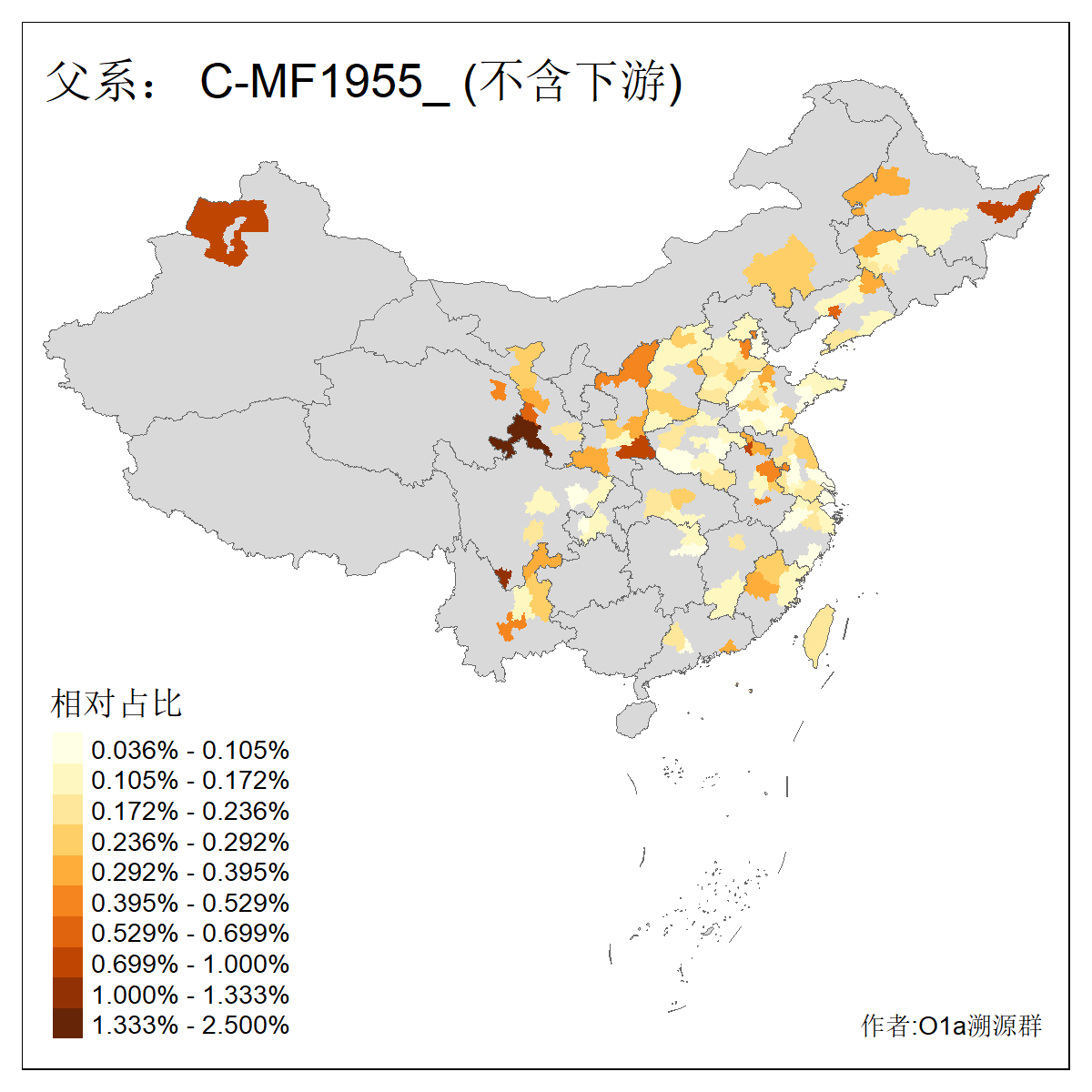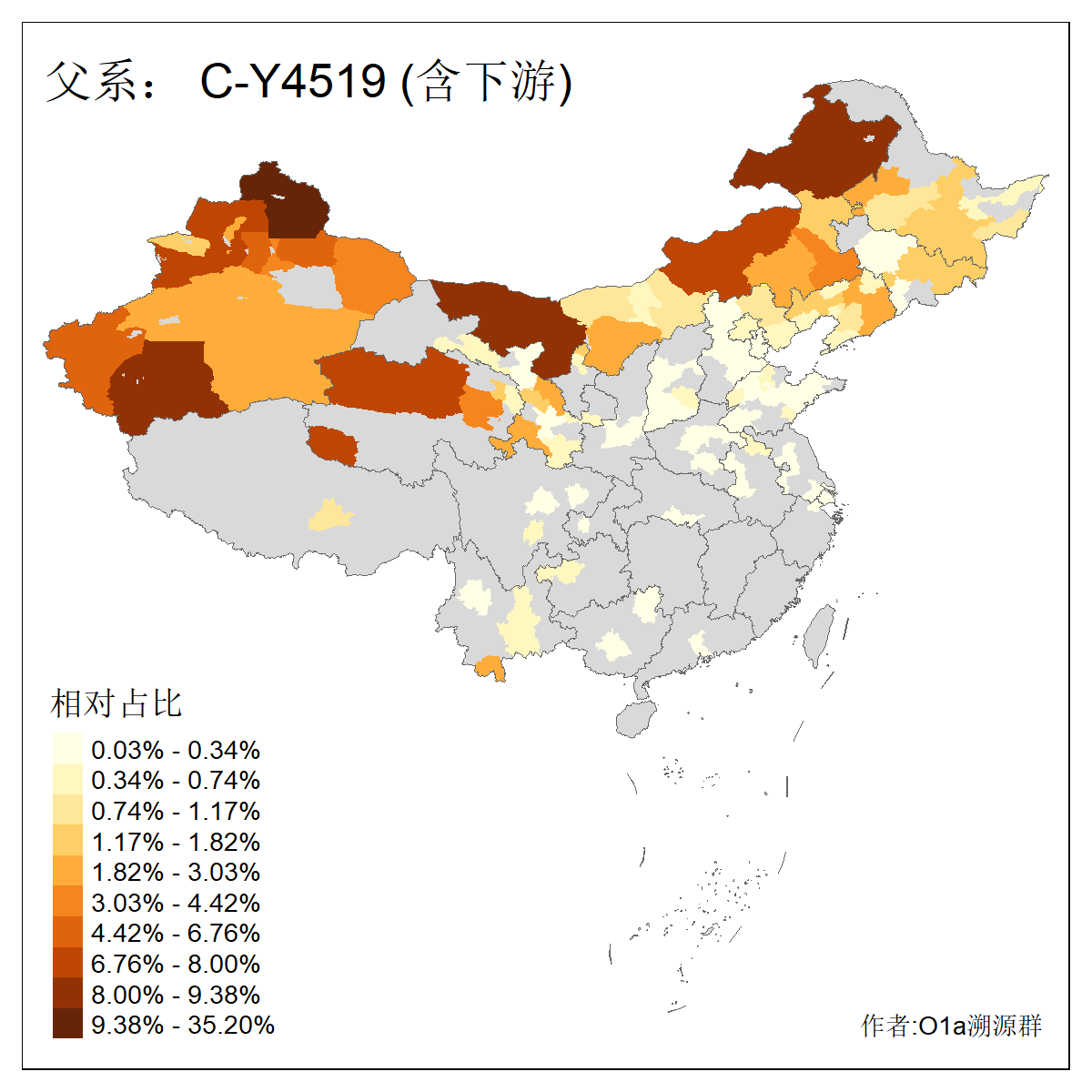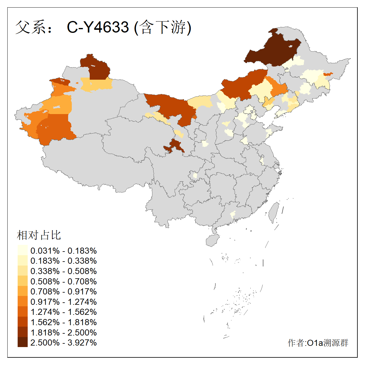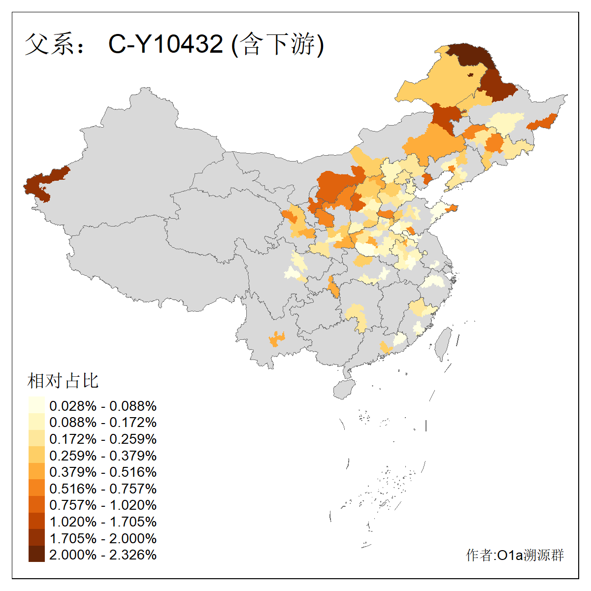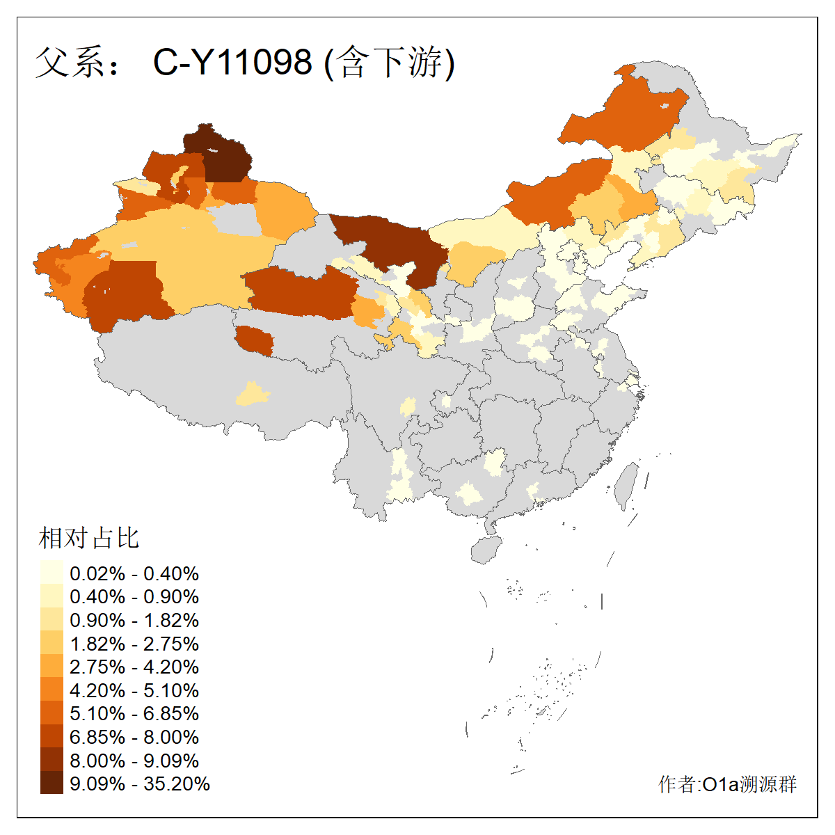 | C-M130_C-M217_C-L1373_C-F3447_C-F1699_C-Y6715_C-M504_C-Y4519_C-Y11121 | 3480 | 0.286% | 582人(含下游) 李:28 关:27 张:23 吴:19 王:19 赵:17 阿:16 艾:14 刘:13 巴:12 白:12 马:12 何:11 哈:11 ![]() | 20人(不含下游) 张:2 白:2 马:2 乌:1 仝:1 周:1 孙:1 封:1 曹:1 杨:1 王:1 罕:1 赫:1 赵:1 ![]() |