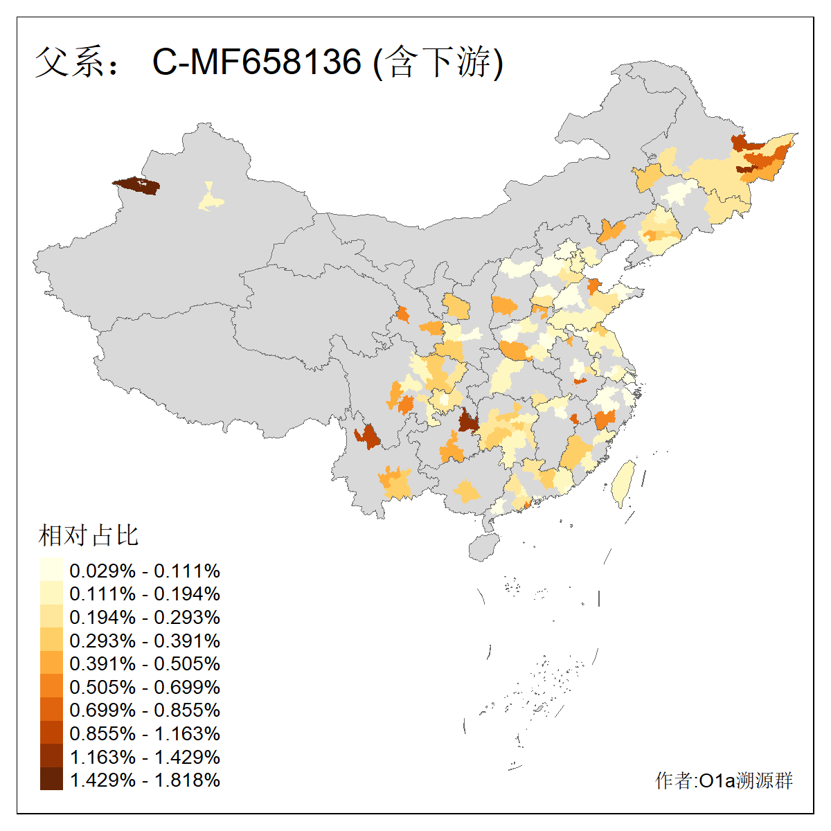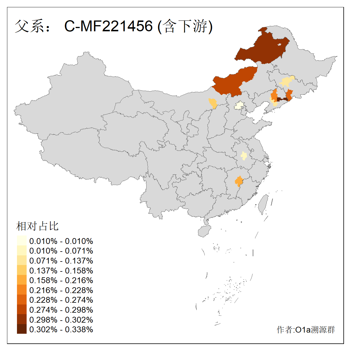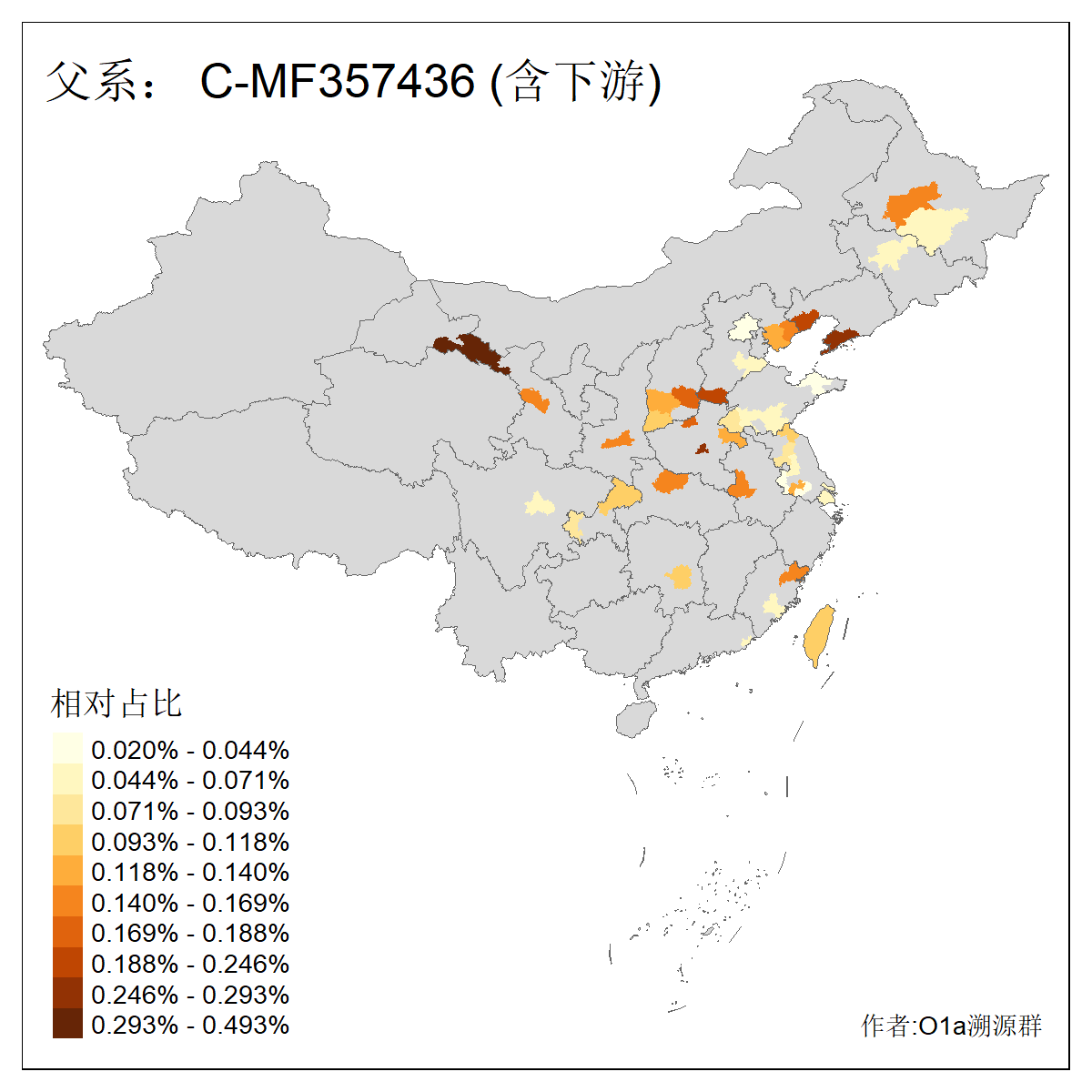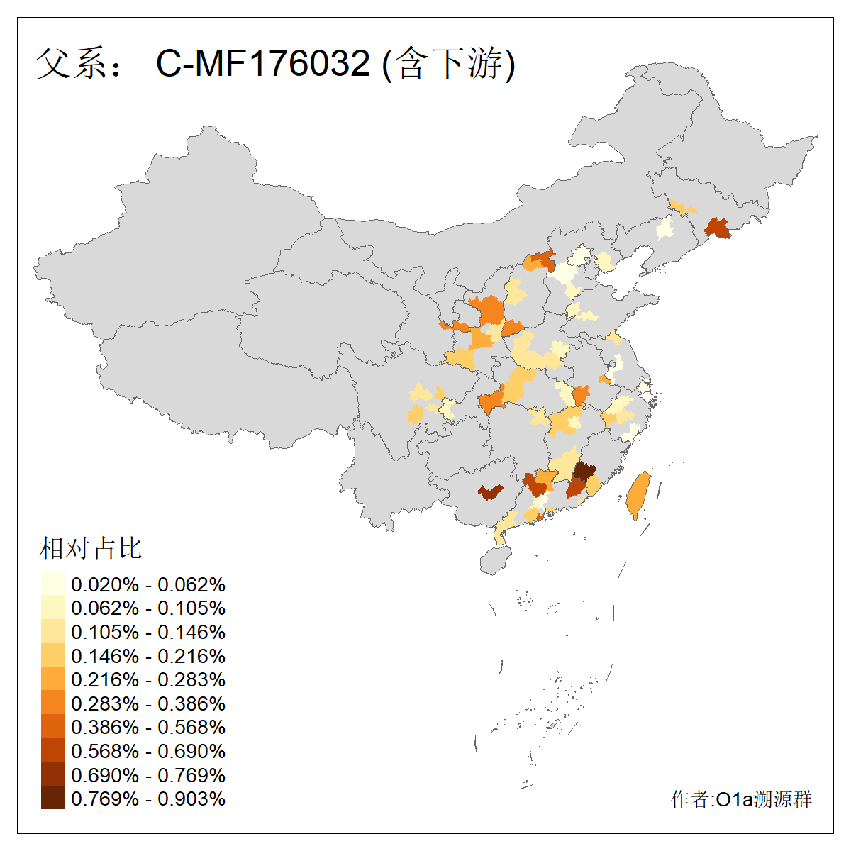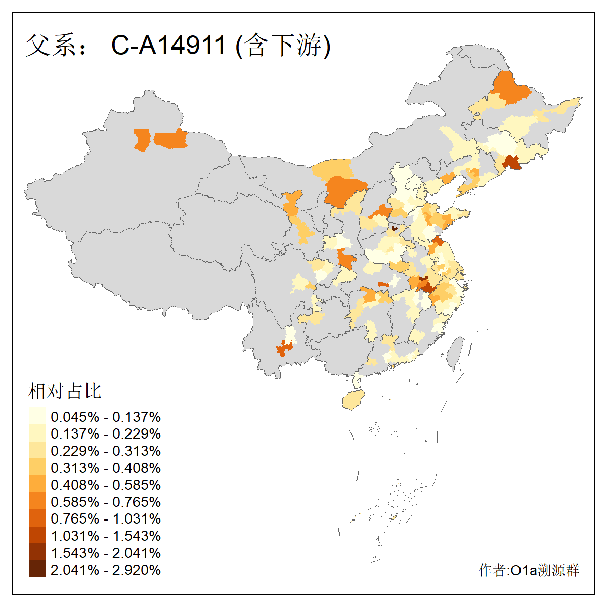 | C-M130_C-M217_C-F1067_C-CTS2_C-F978_C-F3895_C-CTS2657_C-A14901_C-A14909_C-A14908 | 7120 | 0.173% | 443人(含下游) 李:38 王:32 陈:28 张:25 刘:21 周:16 郑:16 杨:13 徐:12 吴:10 董:9 胡:8 袁:8 黄:8 ![]() | 21人(不含下游) 刘:4 周:2 高:2 严:1 凌:1 商:1 张:1 徐:1 李:1 梅:1 田:1 薛:1 贾:1 郭:1 ![]() |