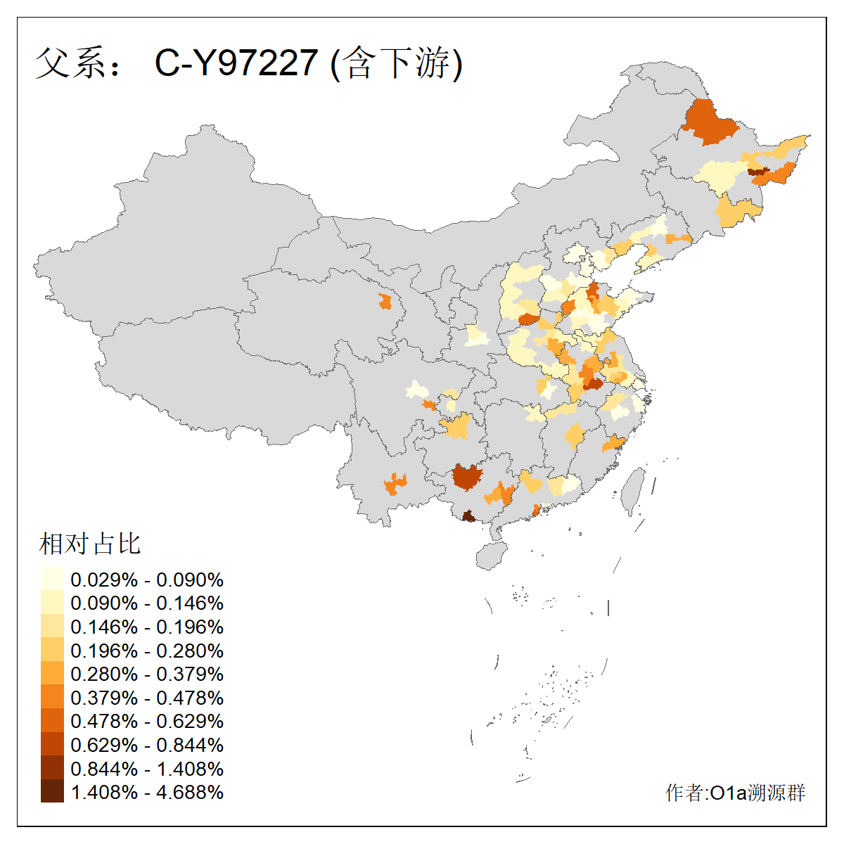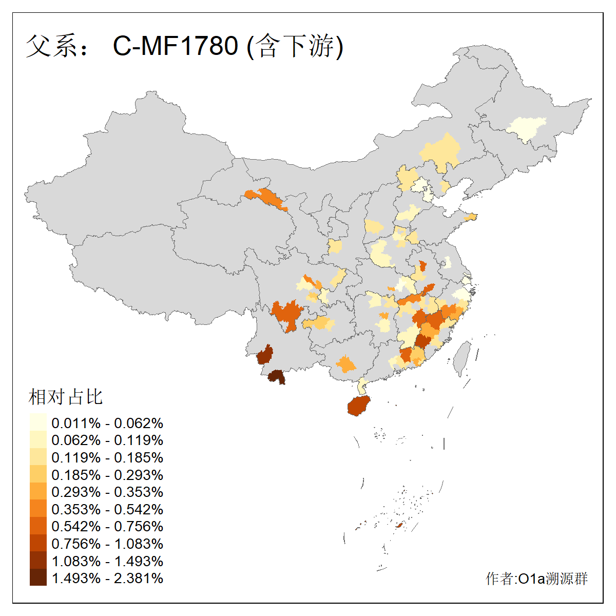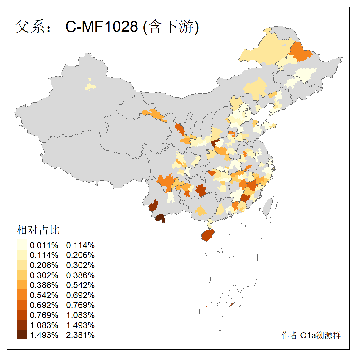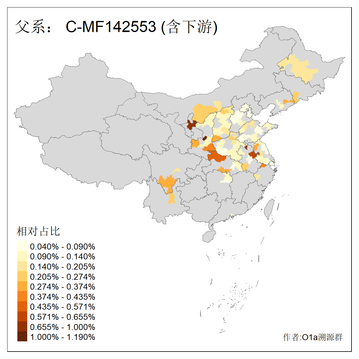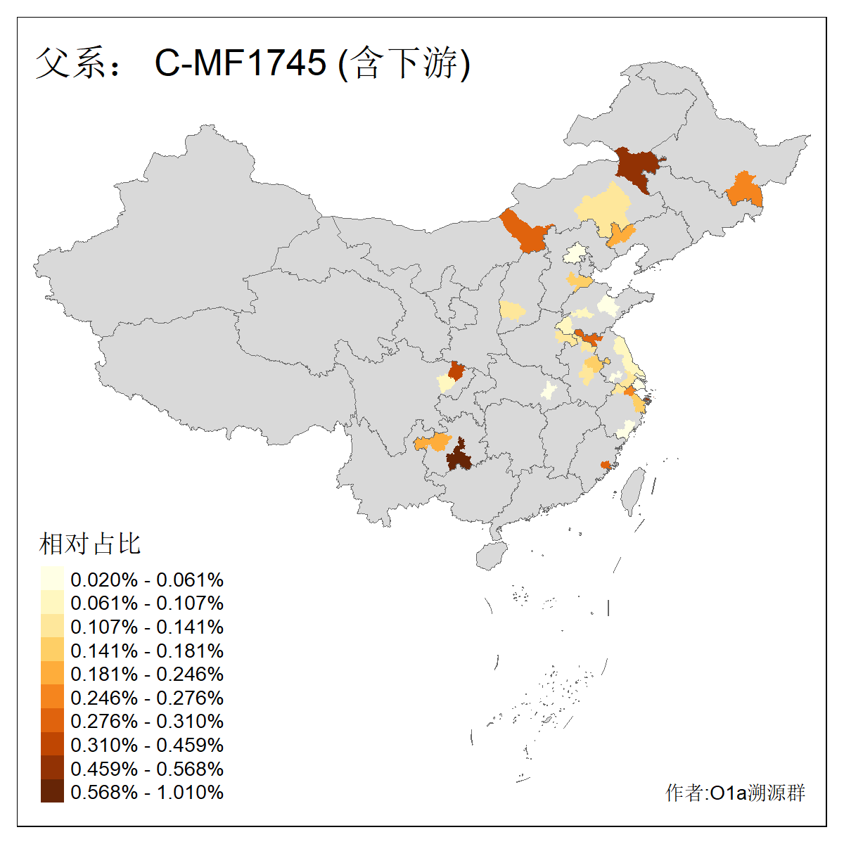 | C-M130_C-M217_C-F1067_C-CTS2_C-F978_C-F3895_C-CTS2657_C-A14901_C-A14909_C-A14908 | 7120 | 0.173% | 443人(含下游) 李:38 王:32 陈:28 张:25 刘:21 周:16 郑:16 杨:13 徐:12 吴:10 董:9 胡:8 袁:8 黄:8 ![]() | 21人(不含下游) 刘:4 周:2 高:2 严:1 凌:1 商:1 张:1 徐:1 李:1 梅:1 田:1 薛:1 贾:1 郭:1 ![]() |