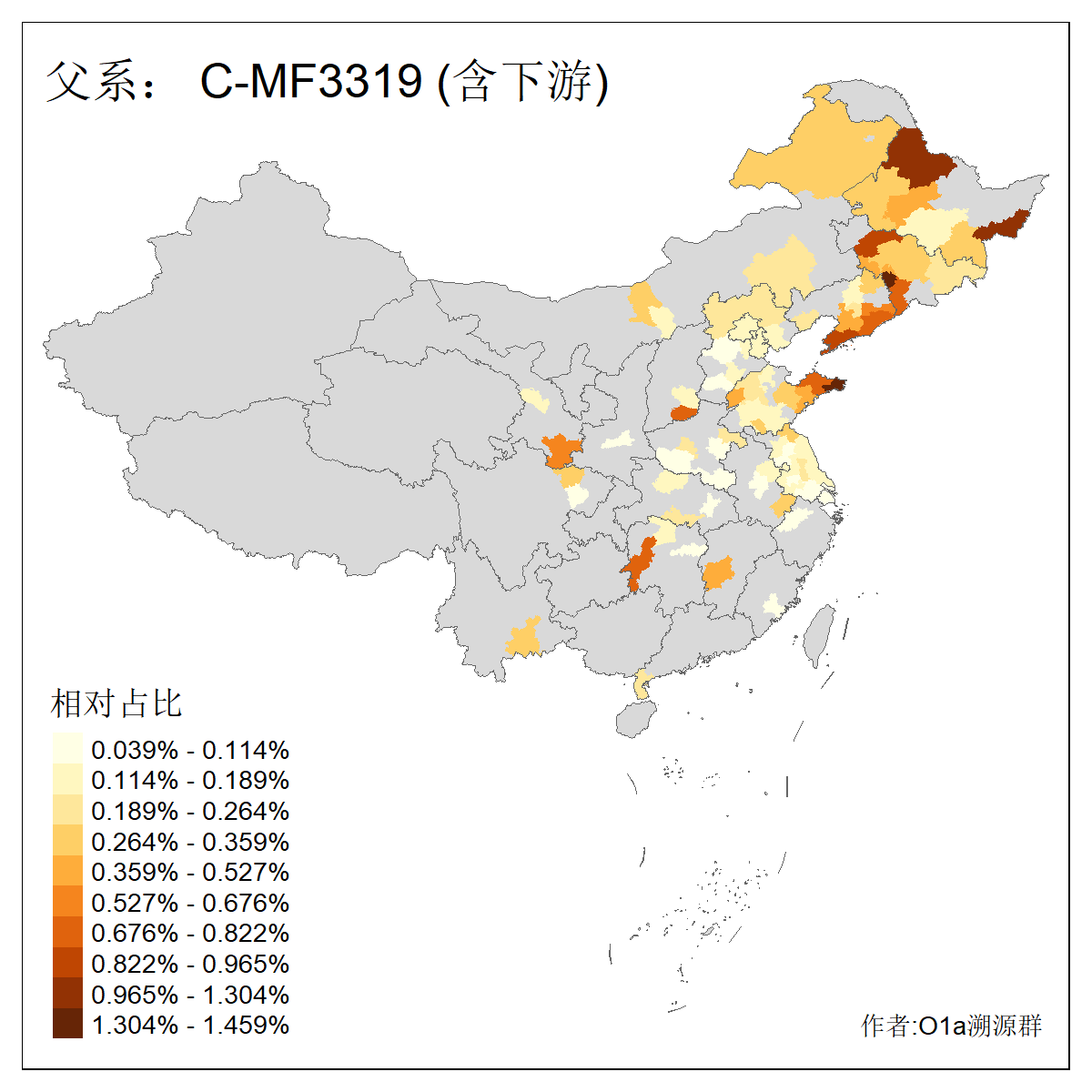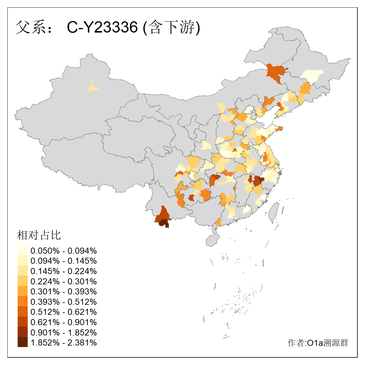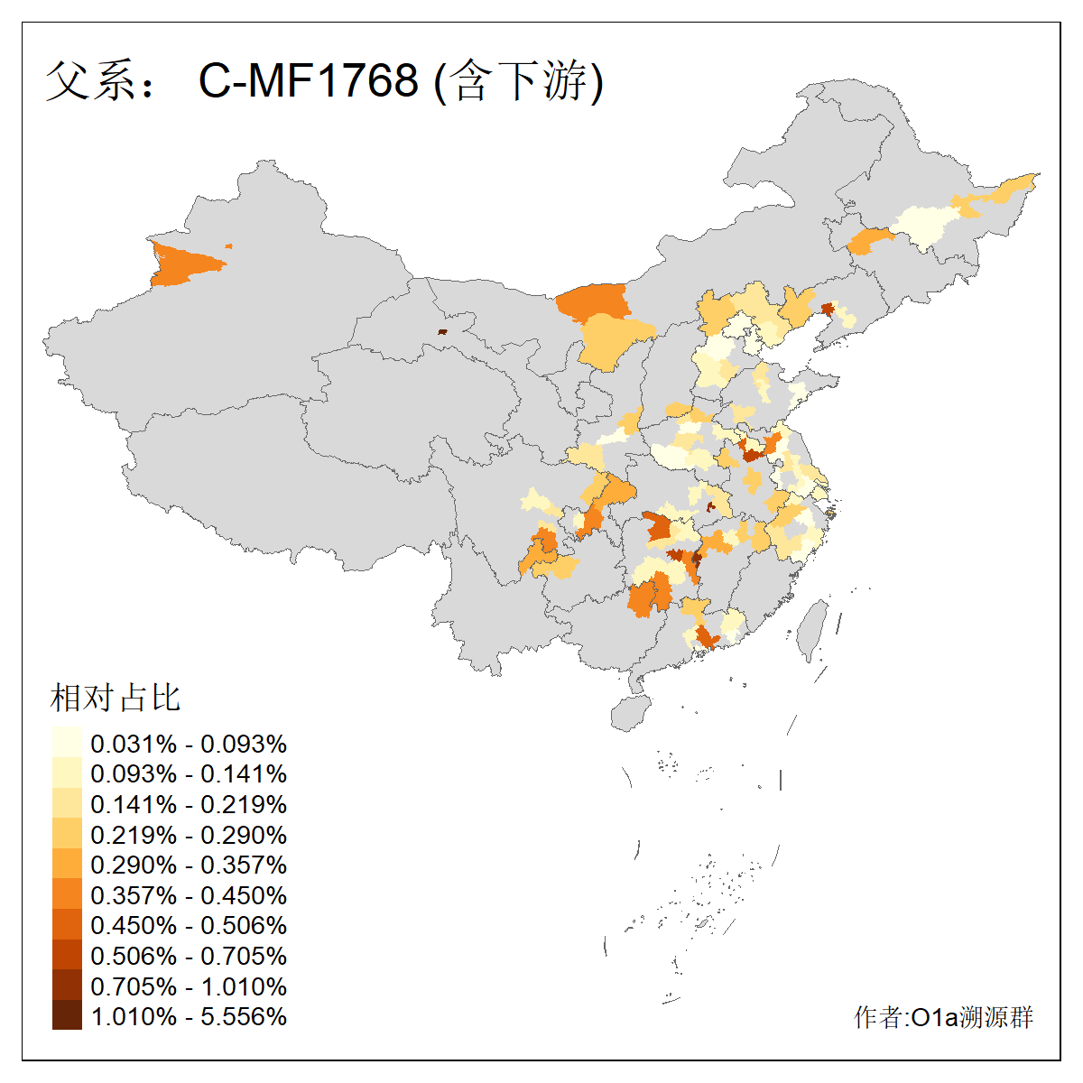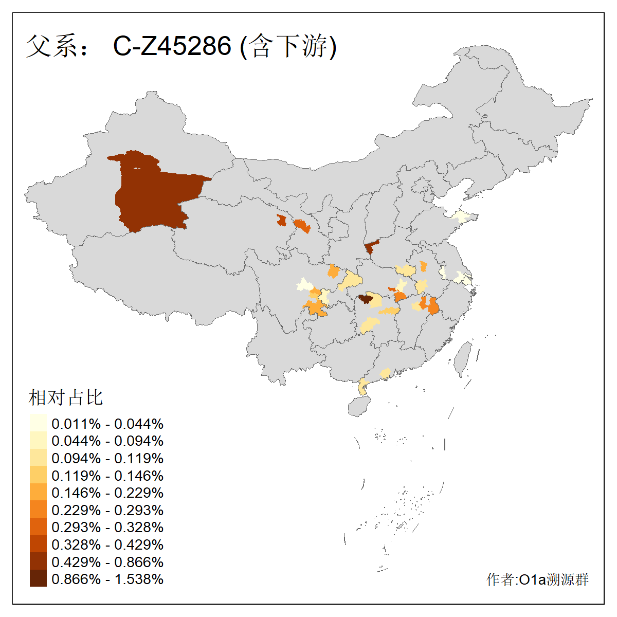 | C-M130_C-M217_C-F1067_C-CTS2_C-F978_C-F3895_C-CTS2657_C-A14901_C-A14909_C-A14908 | 7120 | 0.173% | 443人(含下游) 李:38 王:32 陈:28 张:25 刘:21 周:16 郑:16 杨:13 徐:12 吴:10 董:9 胡:8 袁:8 黄:8 ![]() | 21人(不含下游) 刘:4 周:2 高:2 严:1 凌:1 商:1 张:1 徐:1 李:1 梅:1 田:1 薛:1 贾:1 郭:1 ![]() |