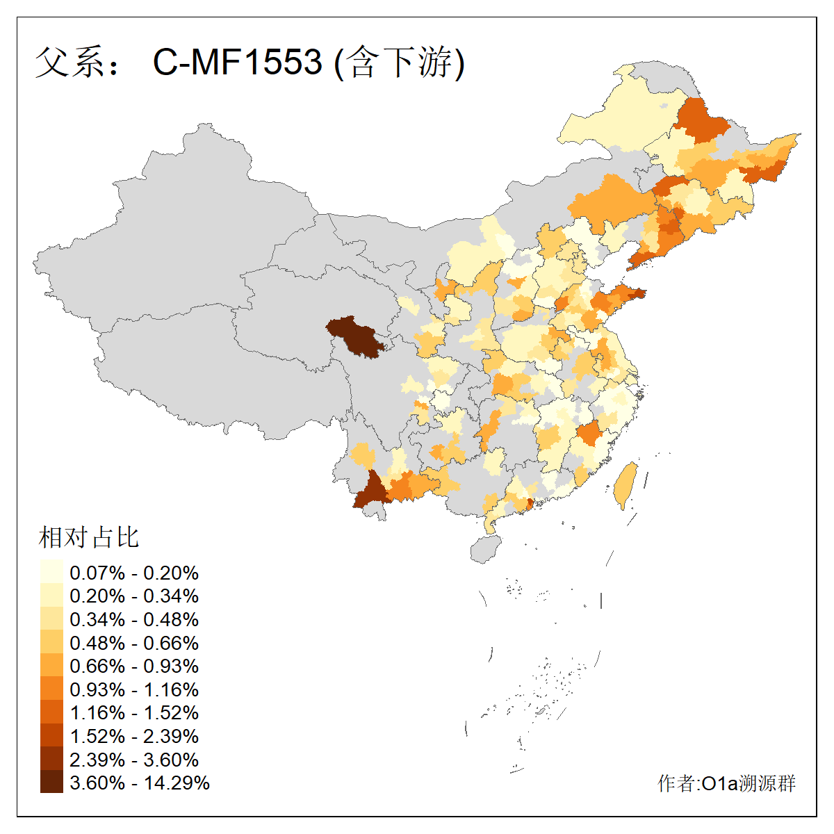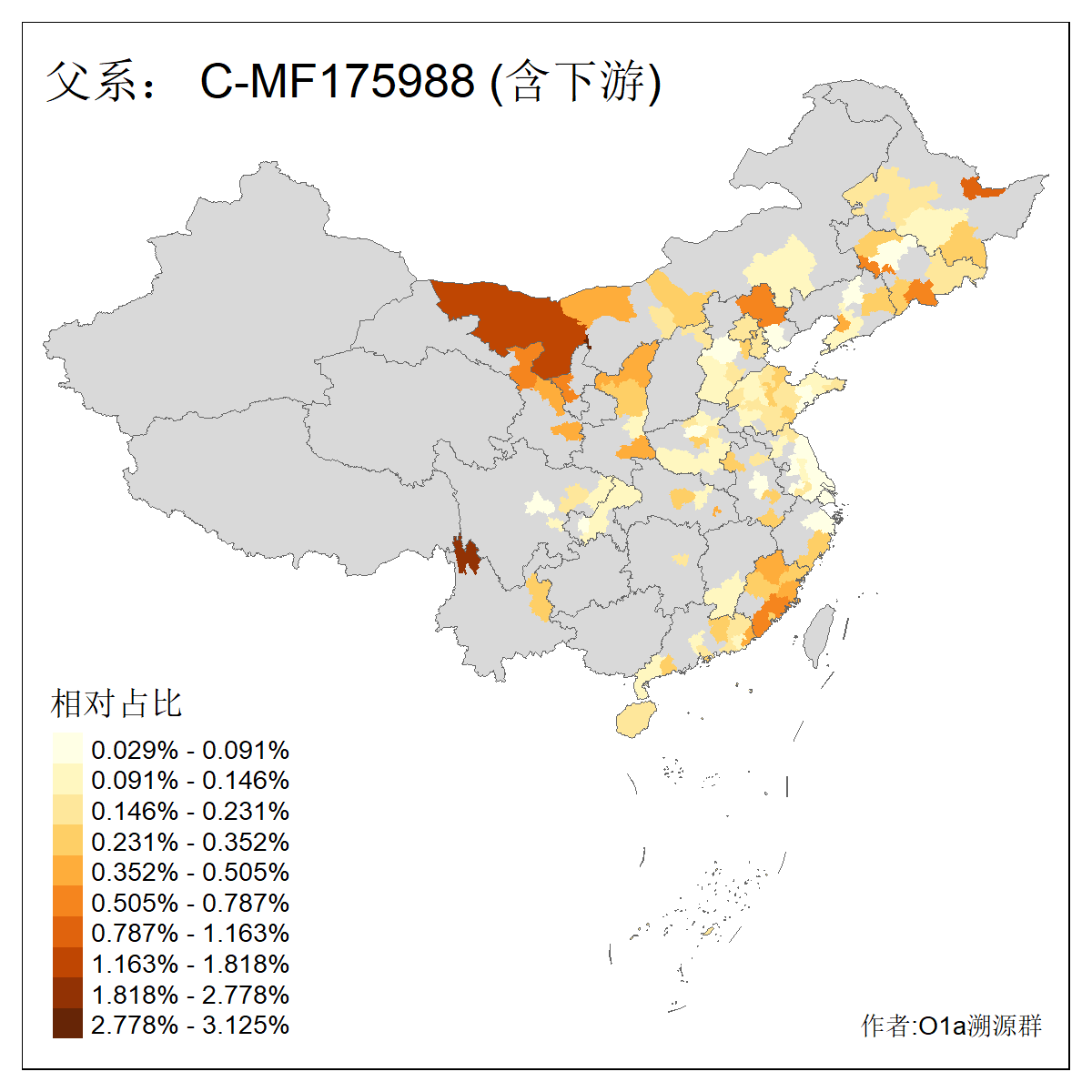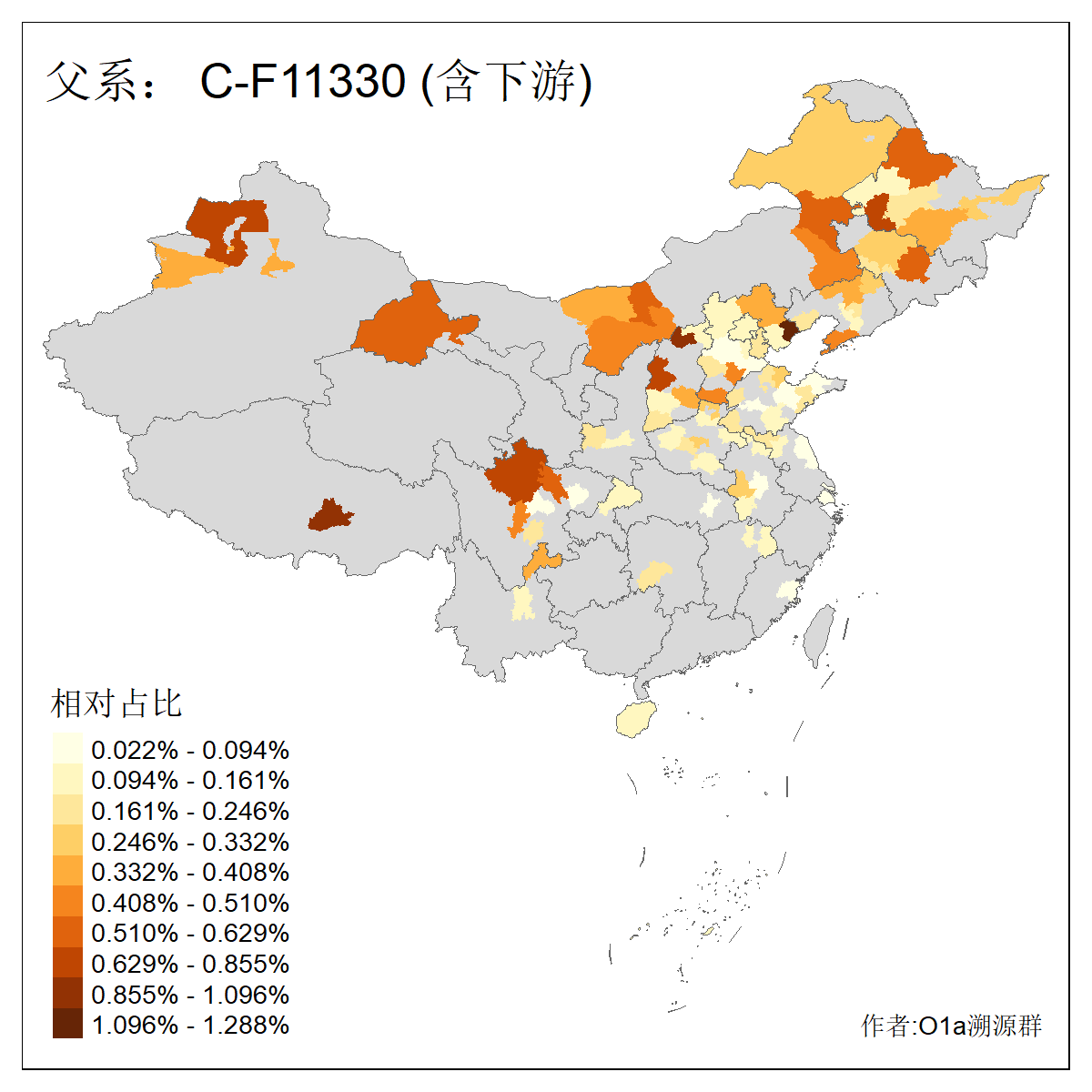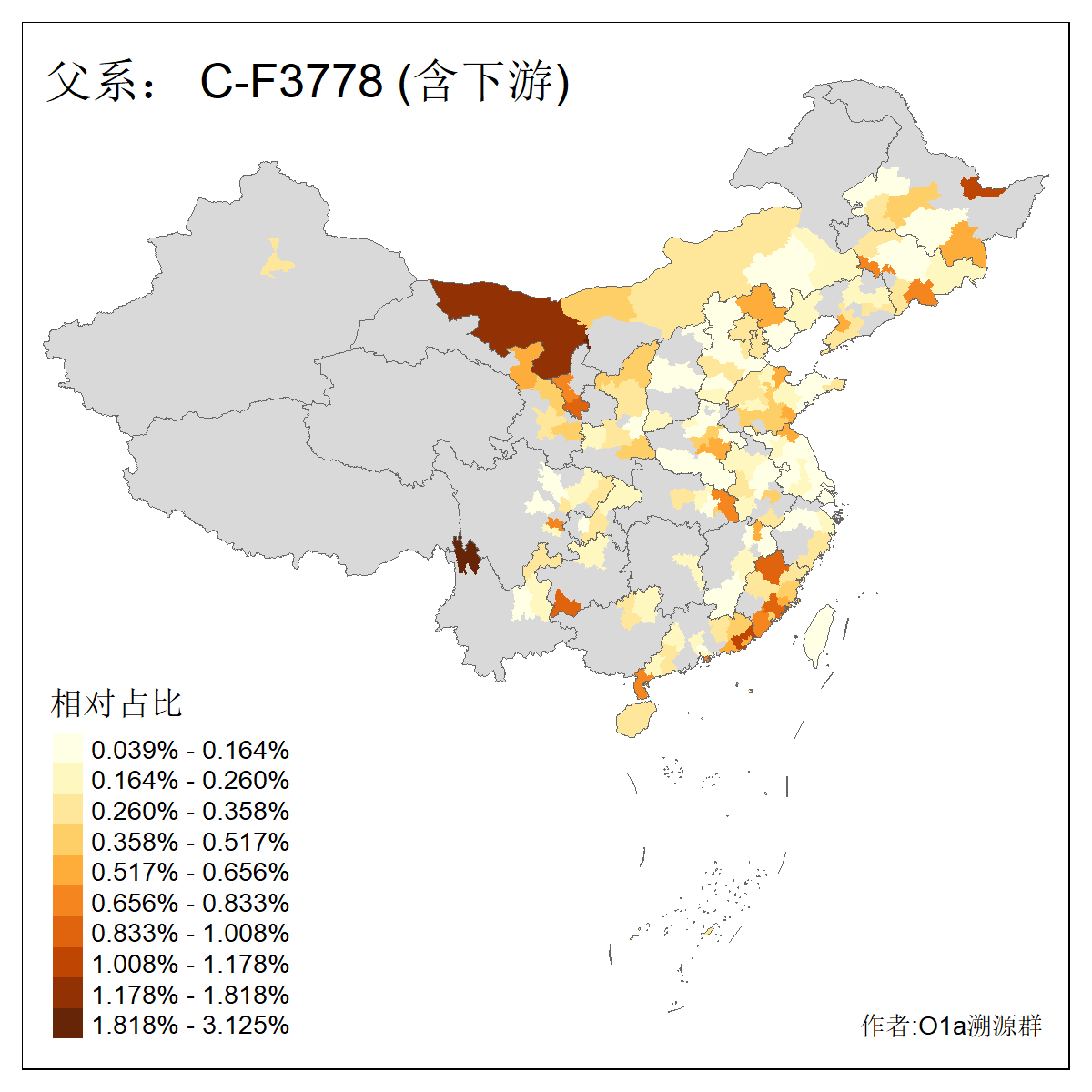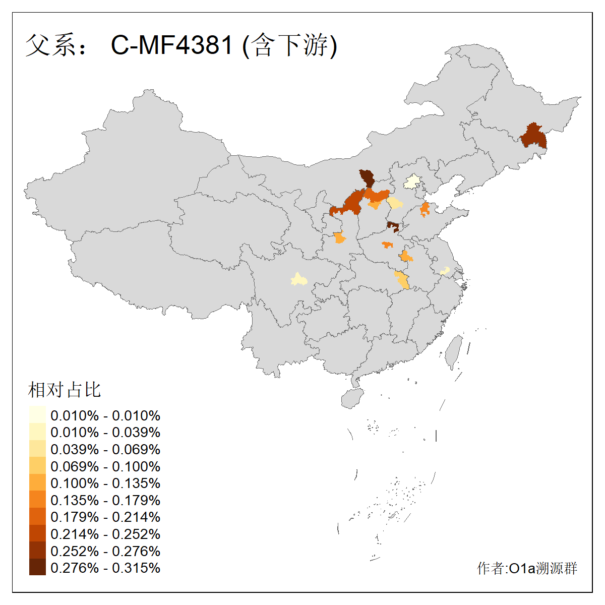 | C-M130_C-M217_C-F1067_C-CTS2_C-F978_C-F3895_C-CTS2657_C-A14901_C-A14909_C-A14908 | 7120 | 0.173% | 443人(含下游) 李:38 王:32 陈:28 张:25 刘:21 周:16 郑:16 杨:13 徐:12 吴:10 董:9 胡:8 袁:8 黄:8 ![]() | 21人(不含下游) 刘:4 周:2 高:2 严:1 凌:1 商:1 张:1 徐:1 李:1 梅:1 田:1 薛:1 贾:1 郭:1 ![]() |