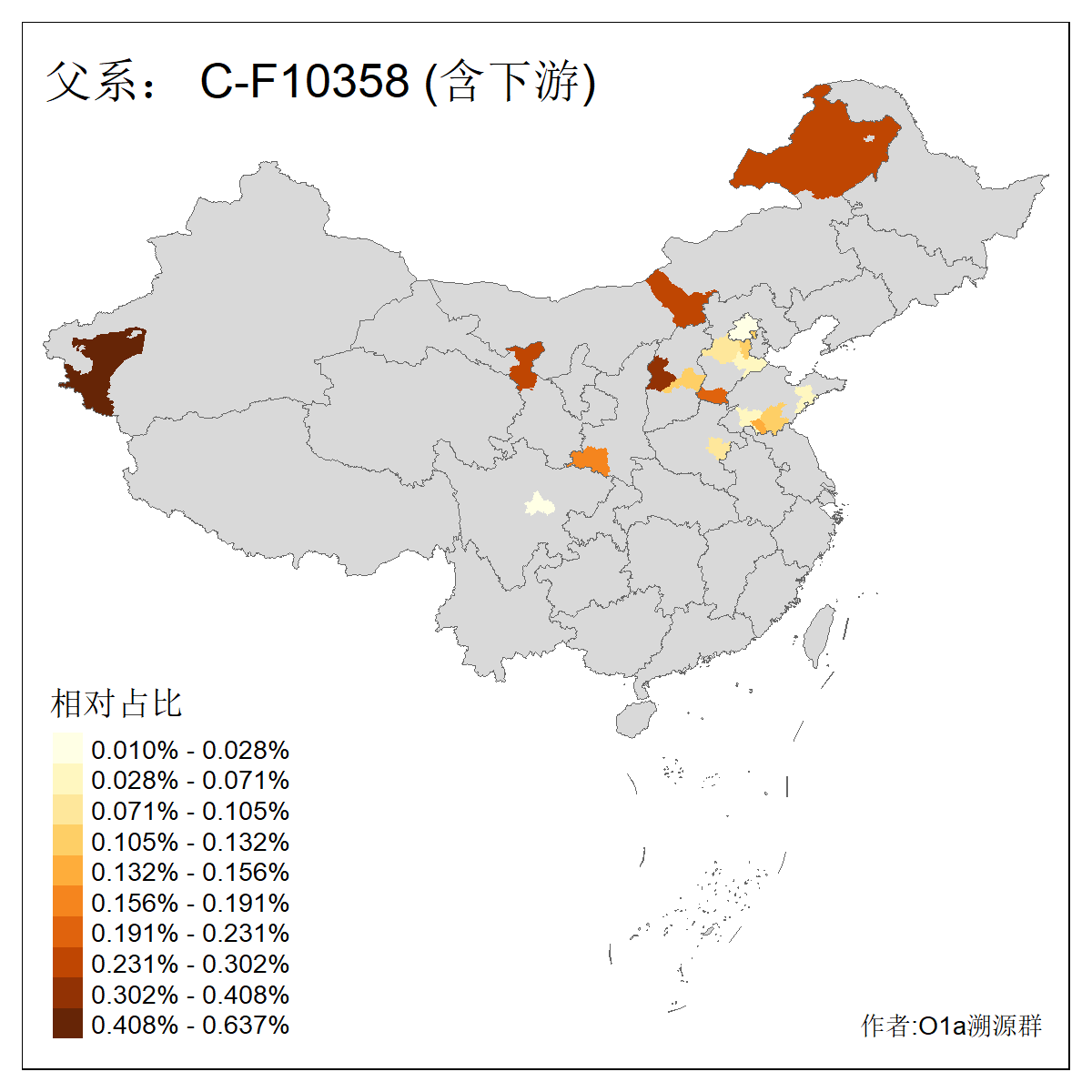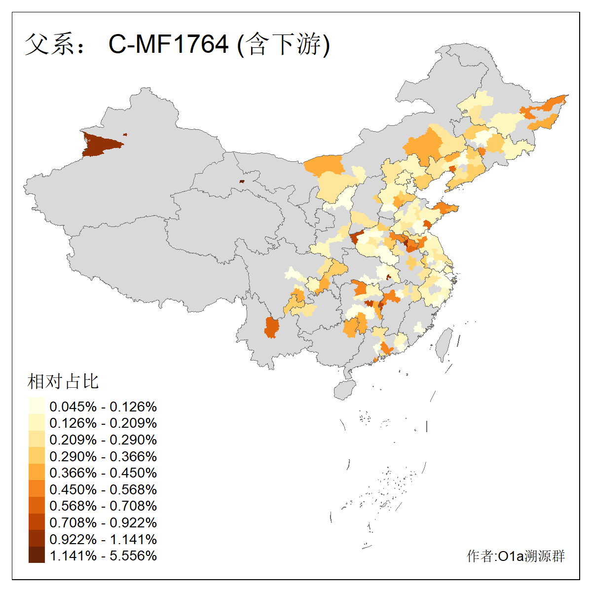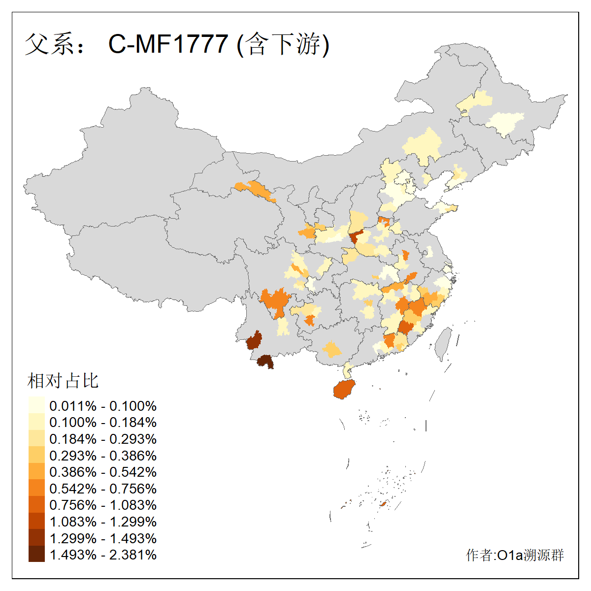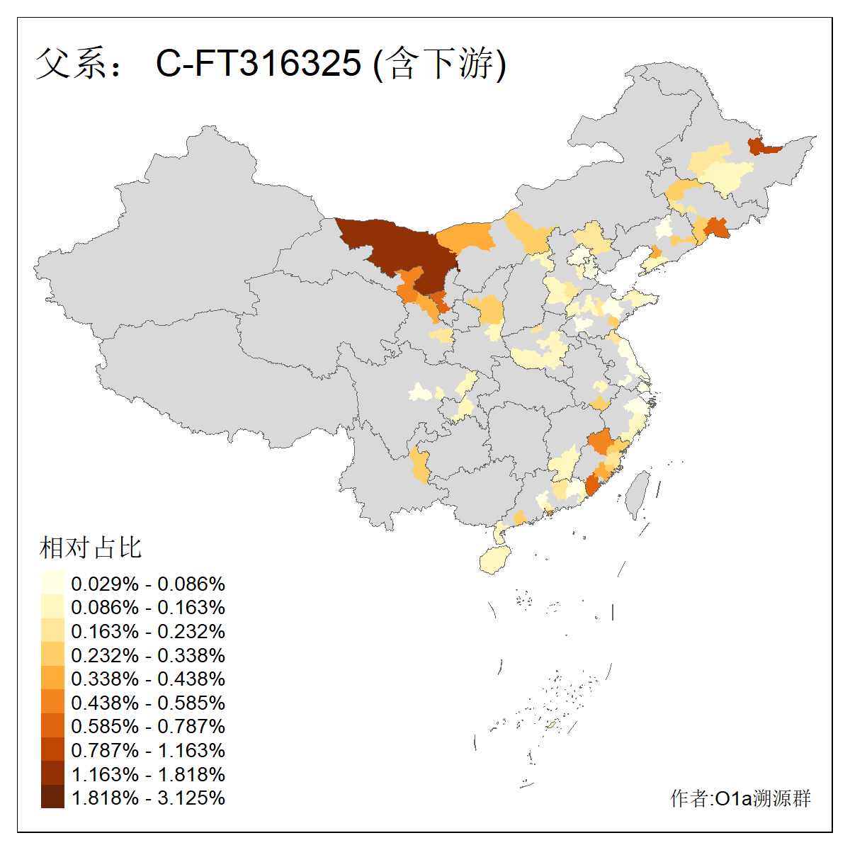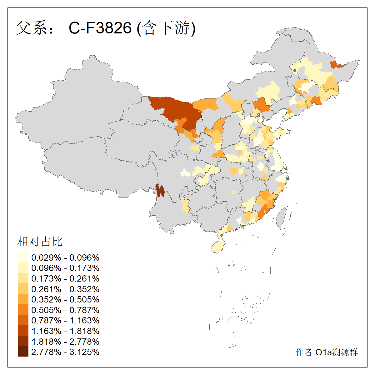 | C-M130_C-M217_C-F1067_C-CTS2_C-F978_C-F3895_C-CTS2657_C-A14901_C-A14909_C-A14908 | 7120 | 0.173% | 443人(含下游) 李:38 王:32 陈:28 张:25 刘:21 周:16 郑:16 杨:13 徐:12 吴:10 董:9 胡:8 袁:8 黄:8 ![]() | 21人(不含下游) 刘:4 周:2 高:2 严:1 凌:1 商:1 张:1 徐:1 李:1 梅:1 田:1 薛:1 贾:1 郭:1 ![]() |