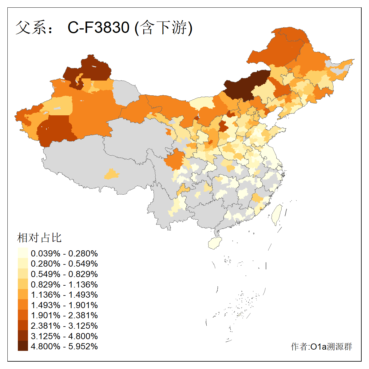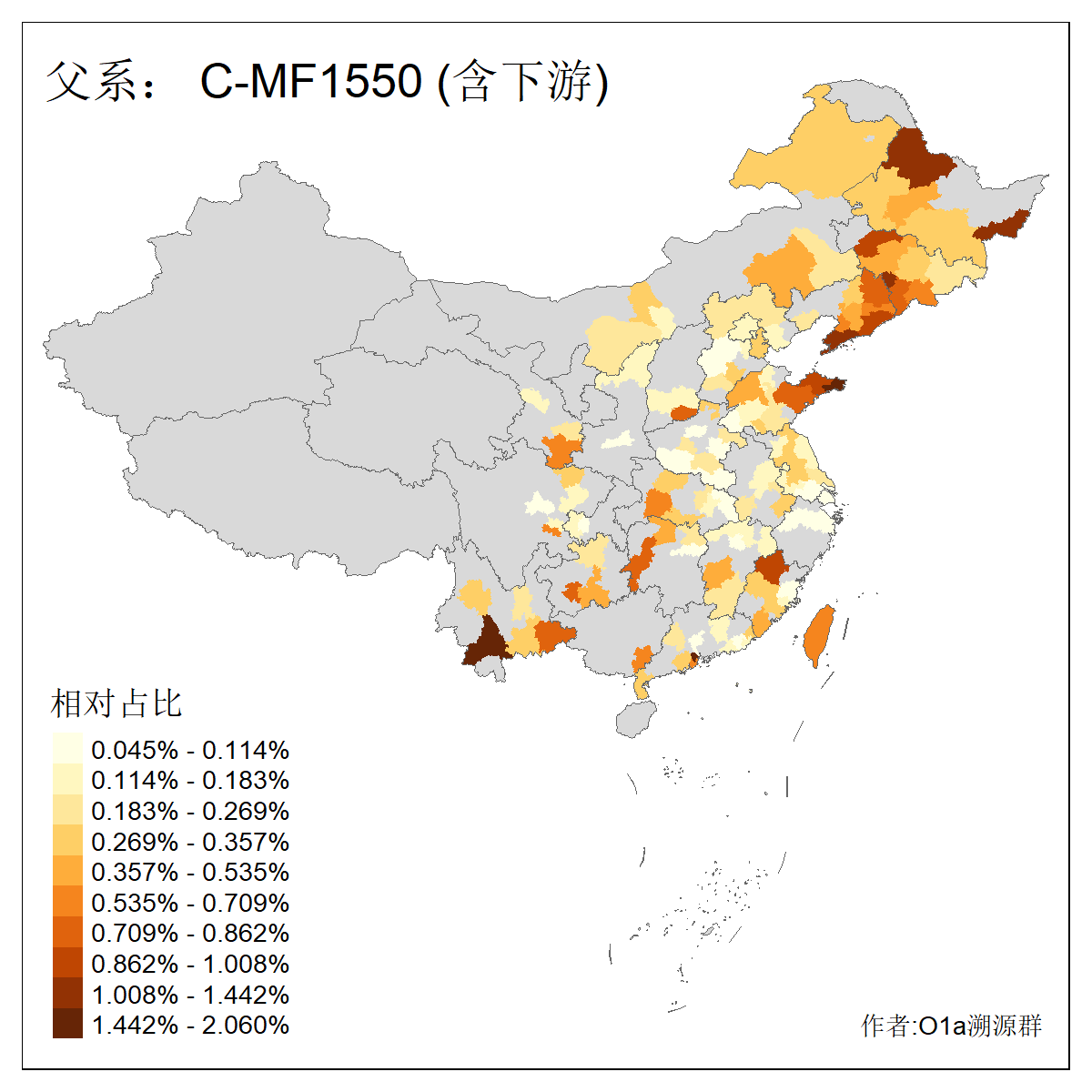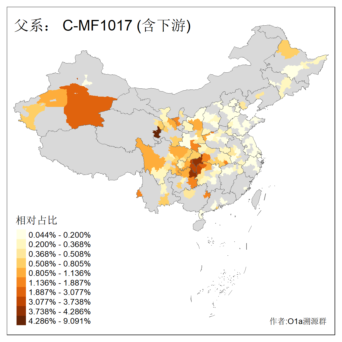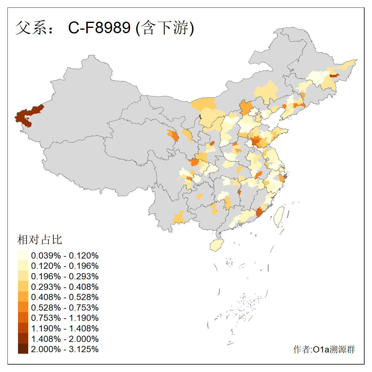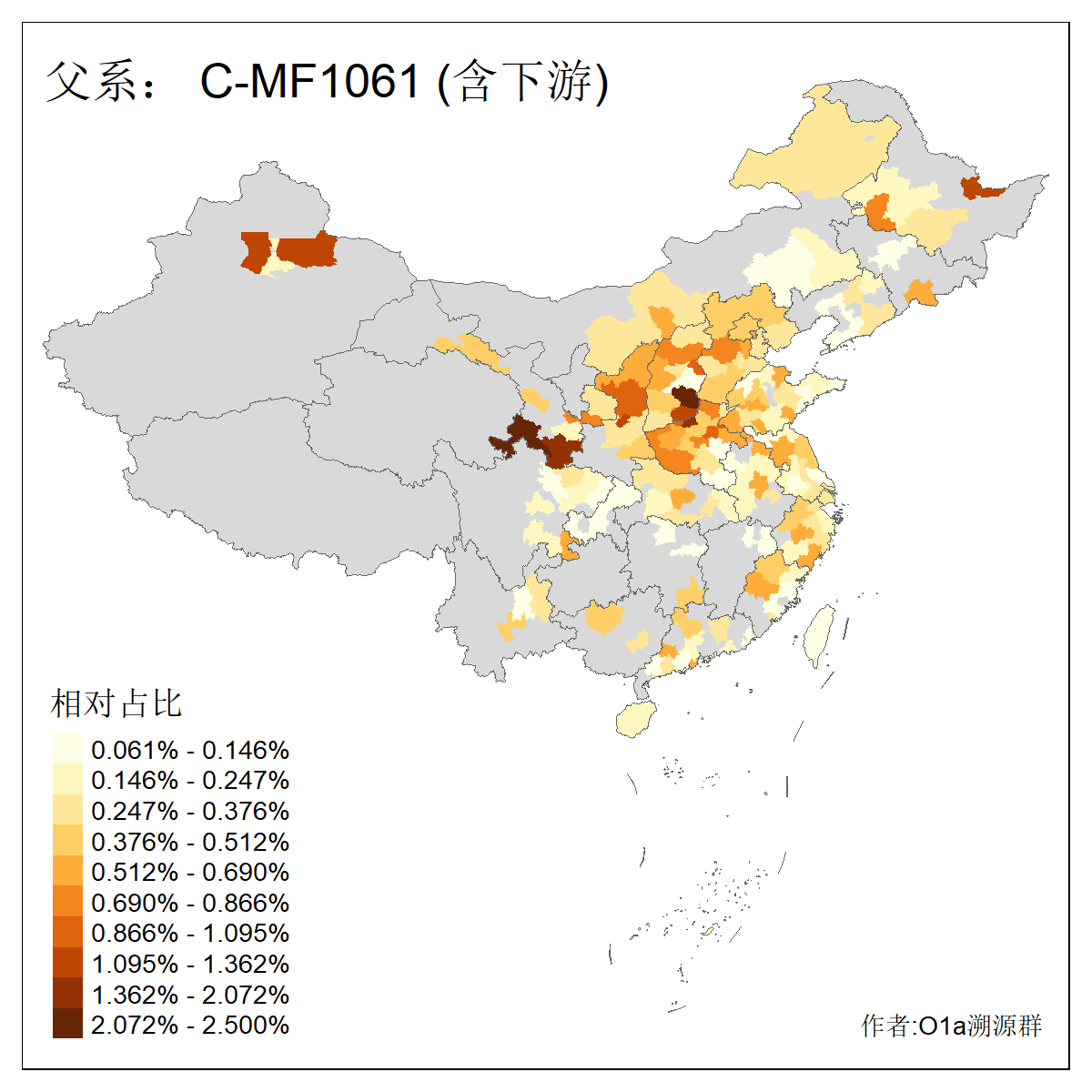 | C-M130_C-M217_C-F1067_C-CTS2_C-F978_C-F3895_C-CTS2657_C-A14901_C-A14909_C-A14908 | 7120 | 0.173% | 443人(含下游) 李:38 王:32 陈:28 张:25 刘:21 周:16 郑:16 杨:13 徐:12 吴:10 董:9 胡:8 袁:8 黄:8 ![]() | 21人(不含下游) 刘:4 周:2 高:2 严:1 凌:1 商:1 张:1 徐:1 李:1 梅:1 田:1 薛:1 贾:1 郭:1 ![]() |