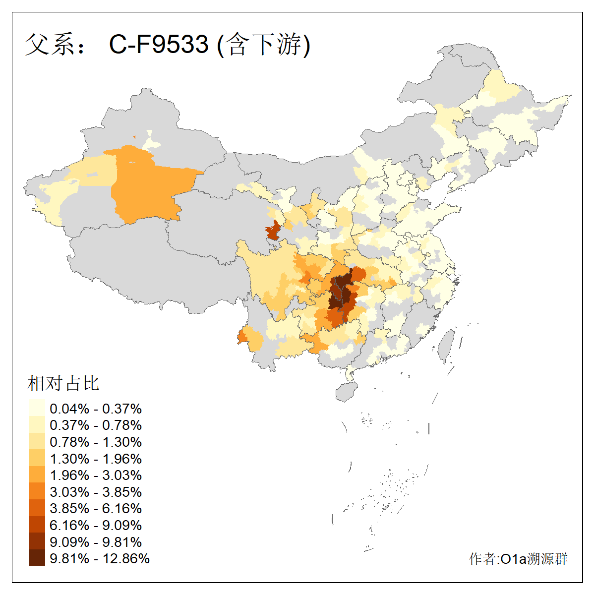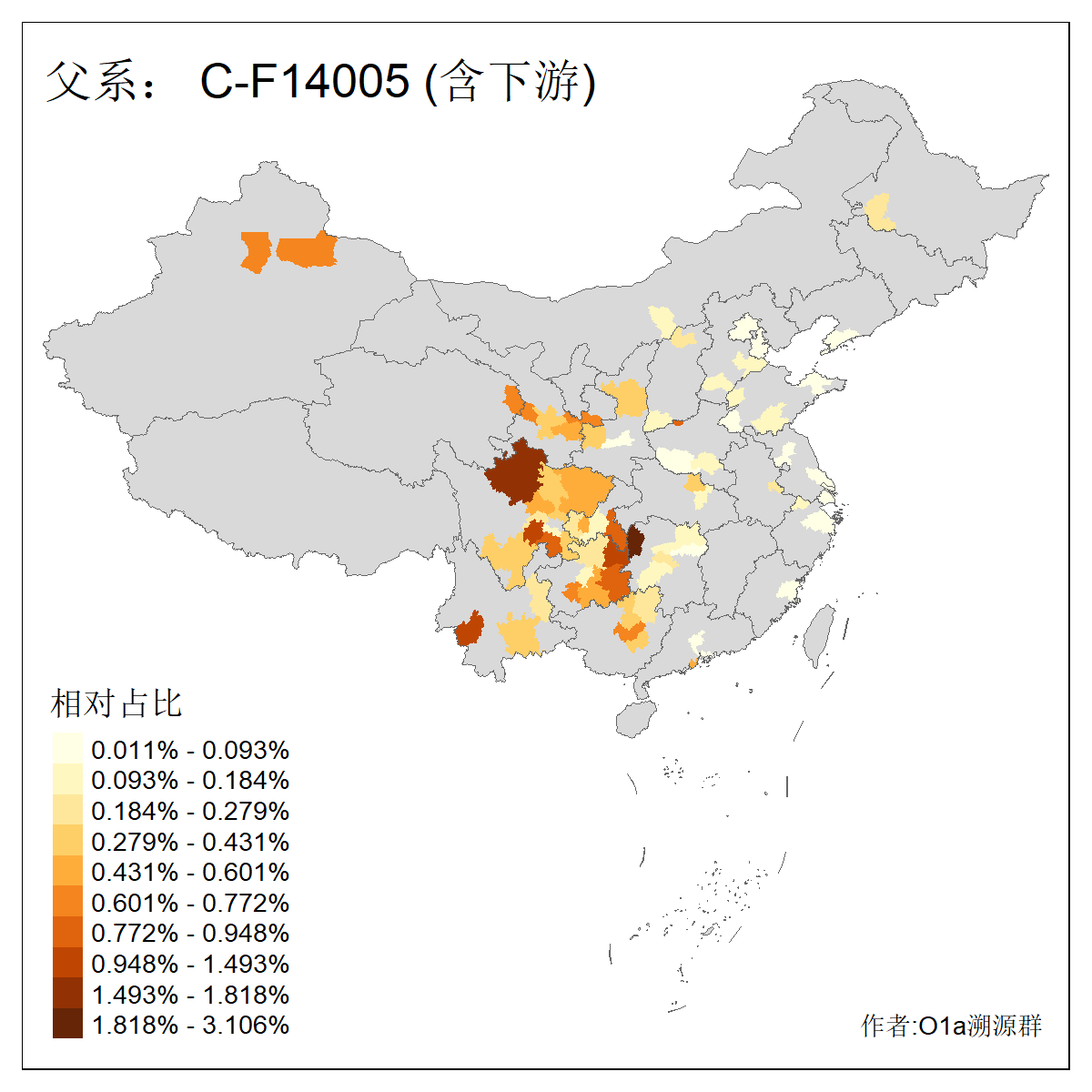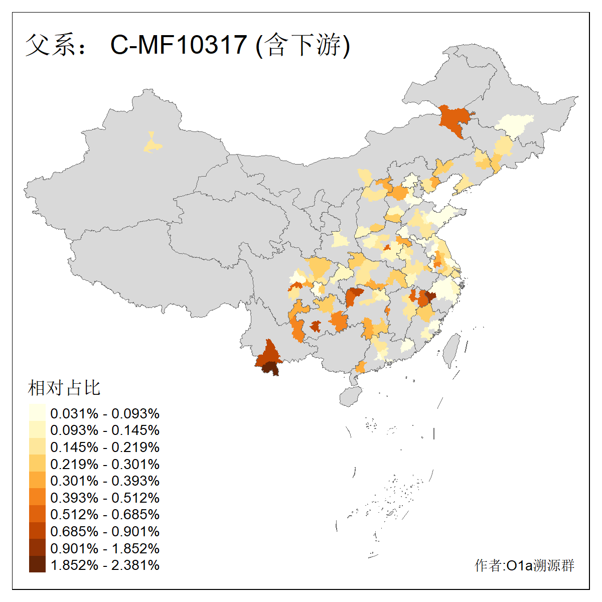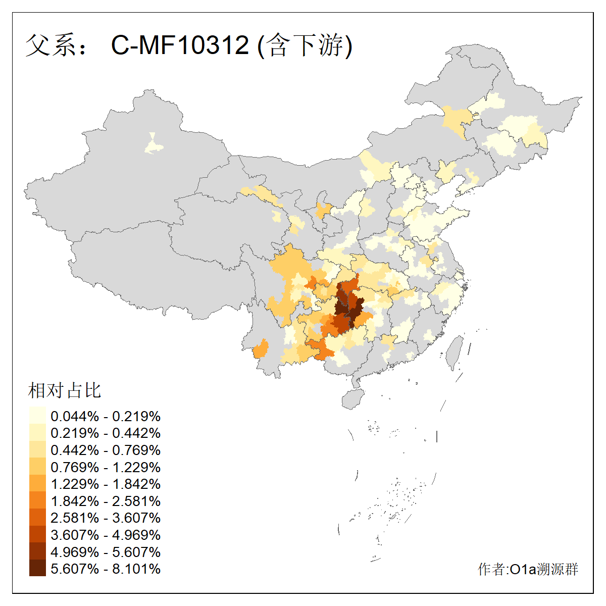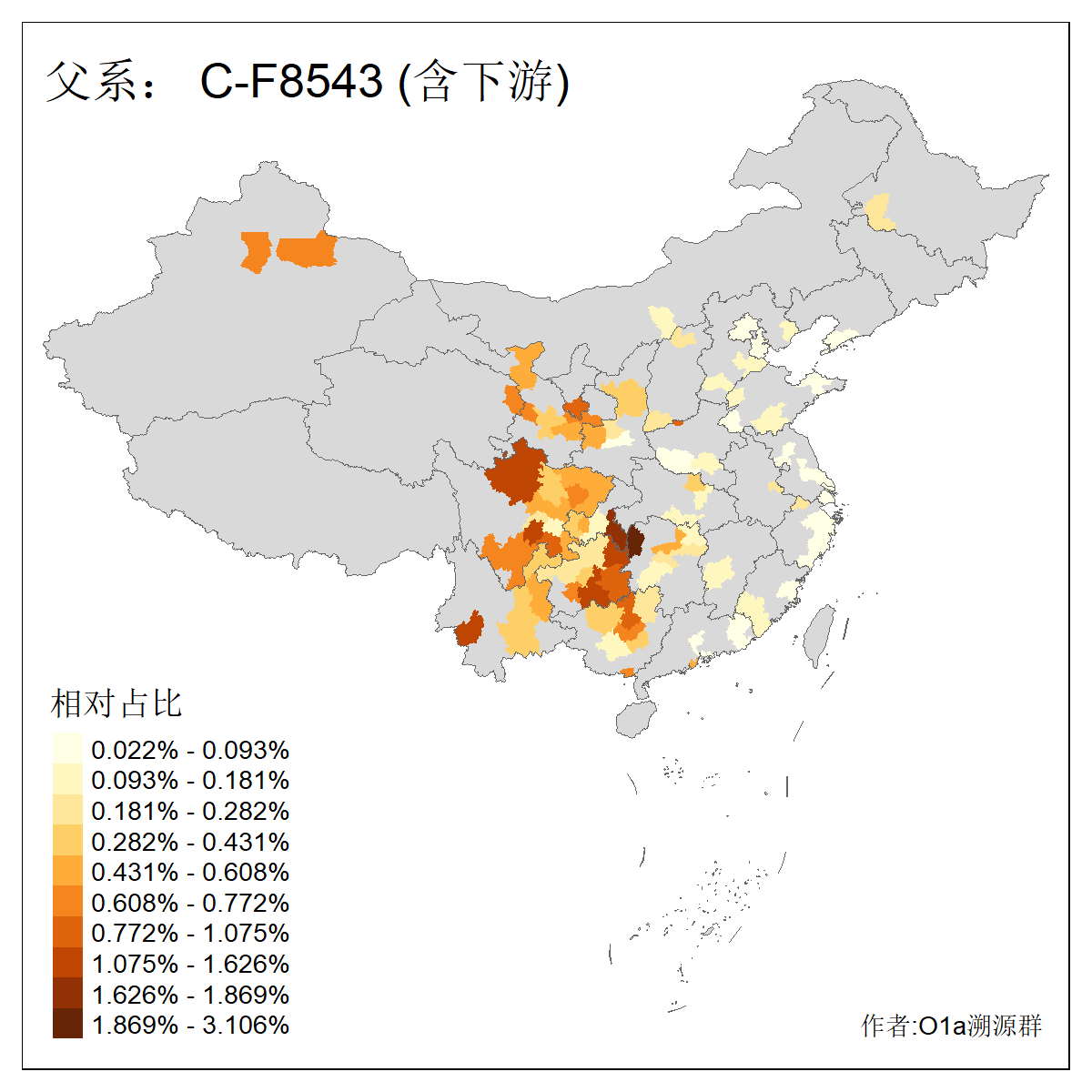 | C-M130_C-F3393_C-F1370_C-AM00694_C-AM00848 | 4310 | 0.198% | 293人(含下游) 李:26 张:17 陈:16 杨:13 梁:13 黄:13 刘:12 罗:12 王:11 赵:11 向:5 吴:5 邱:5 马:5 ![]() | 72人(不含下游) 李:10 梁:5 刘:4 陈:4 罗:3 蒙:3 马:3 高:3 张:2 潘:2 牟:2 陆:2 韦:2 余:1 ![]() |