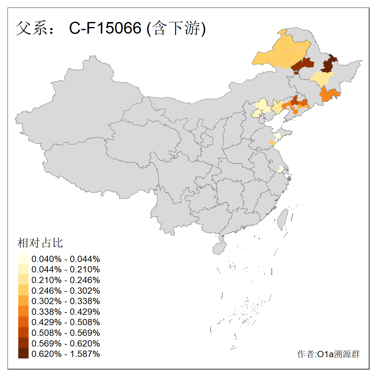 | C-M130_C-M217_C-F1067_C-CTS2_C-F978_C-F3895_C-CTS2657_C-CTS11990_C-BY59164_C-Z31664_C-Z40537_C-F20457 | 4060 | 0.022% | 51人(含下游) 李:5 高:4 关:3 张:3 王:3 佟:2 包:2 郭:2 金:2 任:1 余:1 全:1 刘:1 吴:1 ![]() | 29人(不含下游) 张:3 李:3 高:3 关:2 王:2 郭:2 余:1 刘:1 吴:1 周:1 孙:1 崔:1 朱:1 武:1 ![]() |