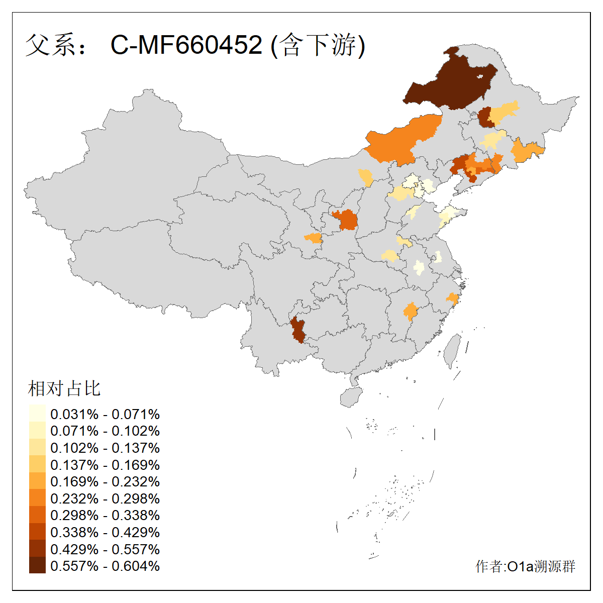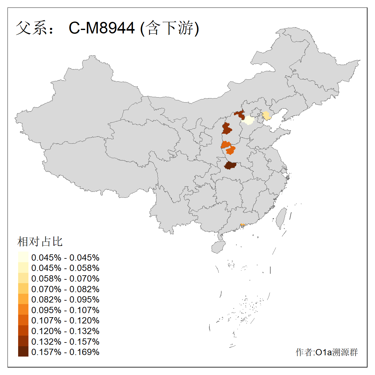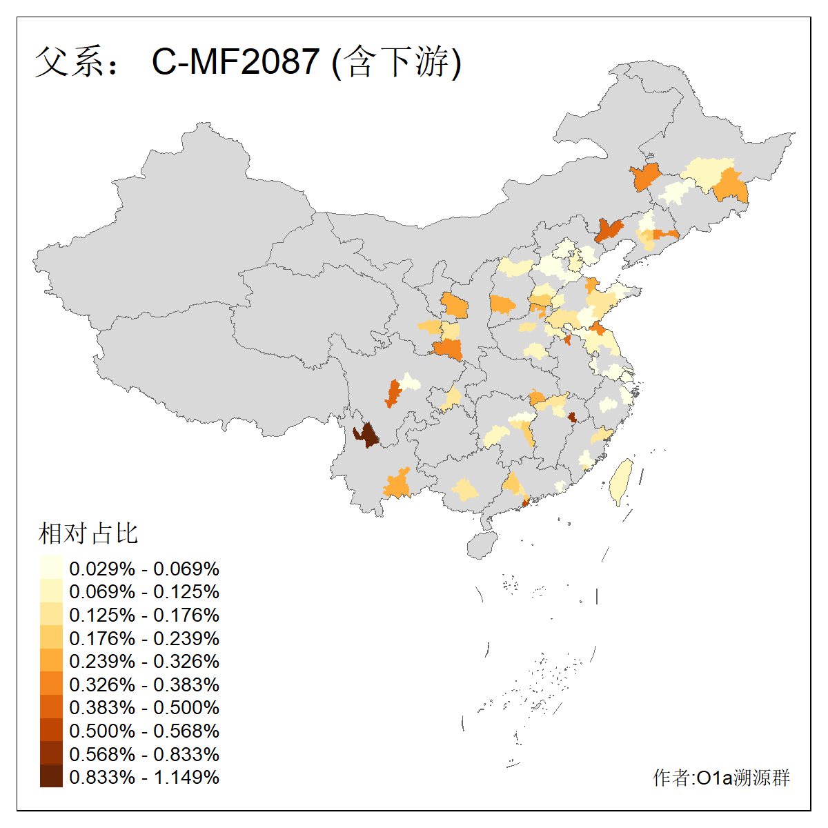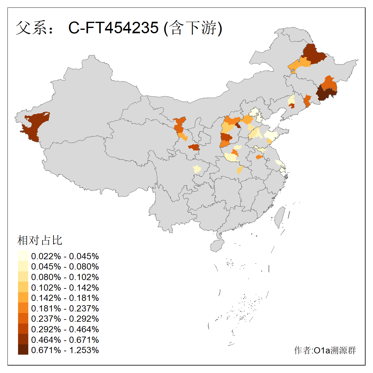 | C-M130_C-M217_C-L1373_C-F3447_C-F1699_C-Y6715_C-M504_C-Y4519 | 4040 | 0.332% | 711人(含下游) 赵:44 李:36 关:29 王:26 张:24 吴:20 阿:16 马:16 刘:14 白:14 艾:14 何:13 巴:12 哈:11 ![]() | 40人(不含下游) 赵:6 董:5 王:4 童:3 恒:2 白:2 佟:1 傅:1 呼:1 奥:1 崔:1 张:1 李:1 焦:1 ![]() |