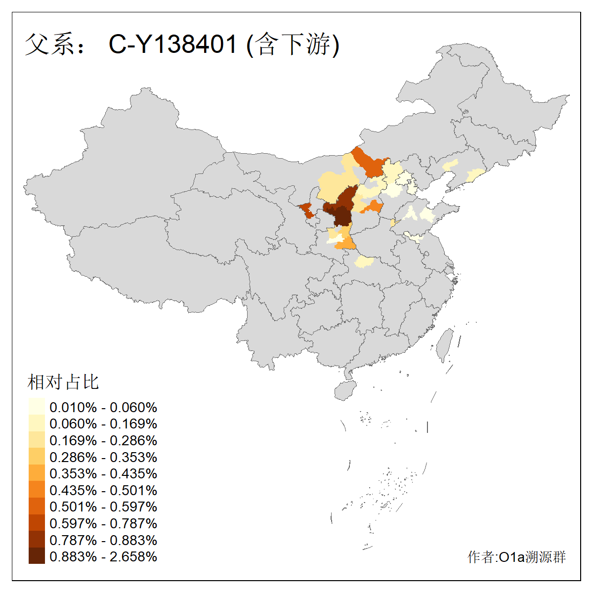 | C-M130_C-M217_C-L1373_C-F3447_C-F1699_C-Y6715_C-Y10418_C-FGC28903_C-F1756 | 7860 | 0.577% | 1413人(含下游) 王:136 刘:118 张:98 李:93 赵:40 白:36 关:30 杨:30 马:28 吴:26 陈:24 曹:22 高:22 孙:17 ![]() | 21人(不含下游) 王:4 吴:3 刘:2 焦:2 孔:1 张:1 杨:1 田:1 许:1 赵:1 鄂:1 高:1 魏:1 ![]() |