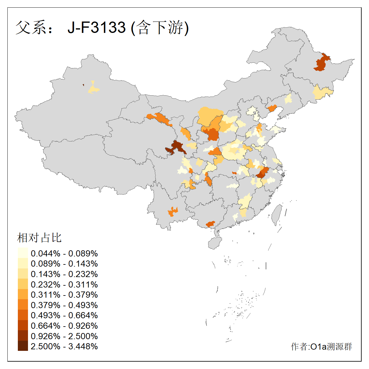 | J-M304_J-M172_J-M410_J-PF4610_J-F4326_J-PF5087_J-AM01359_J-L24_J-Z400_J-L25_J-F3133 | 8140 | 0.146% | 104人(含下游) 张:10 程:9 陈:7 刘:6 王:6 杨:5 李:4 崔:3 钟:3 马:3 何:2 吴:2 姚:2 安:2 ![]() | 43人(不含下游) 刘:4 张:4 杨:4 何:2 安:2 李:2 王:2 程:2 马:2 魏:2 丛:1 余:1 包:1 向:1 ![]() |