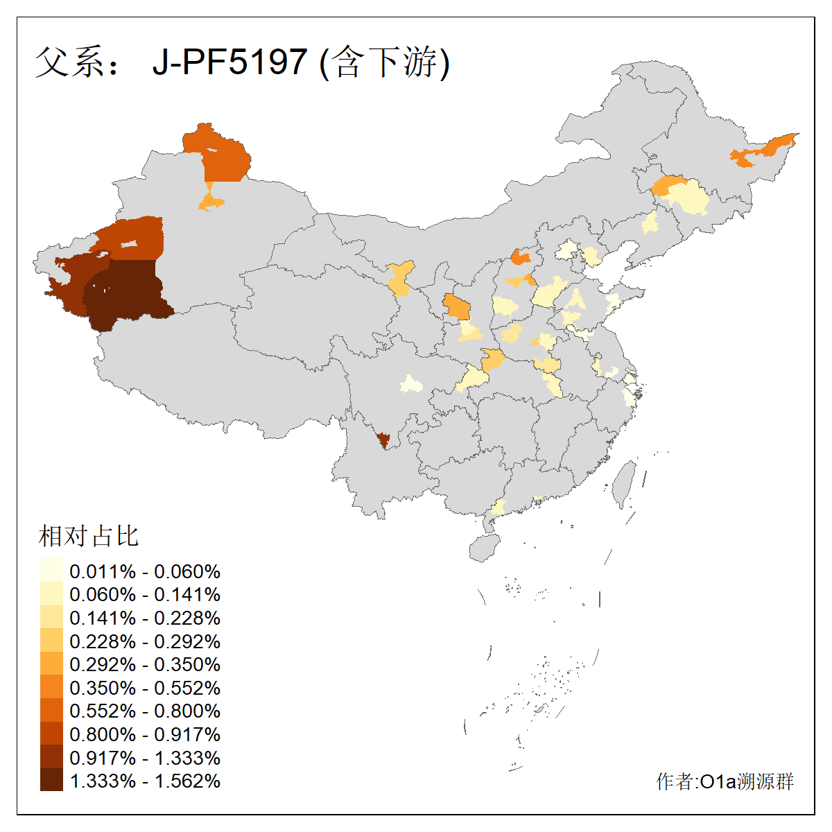 | J-M304_J-M172_J-M410_J-PF4610_J-F4326_J-PF5087_J-AM01359_J-L24_J-Z400_J-L25 | 8580 | 0.179% | 164人(含下游) 张:16 王:11 刘:9 程:9 杨:8 陈:8 李:6 马:6 何:5 吴:3 崔:3 杜:3 赵:3 钟:3 ![]() | 30人(不含下游) 张:3 杨:3 马:3 李:2 邱:2 仰:1 任:1 何:1 刘:1 吴:1 孤:1 庄:1 杜:1 熊:1 ![]() |