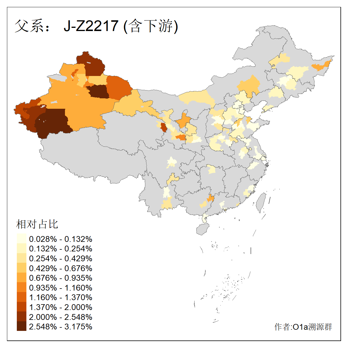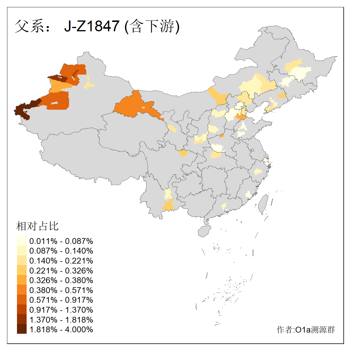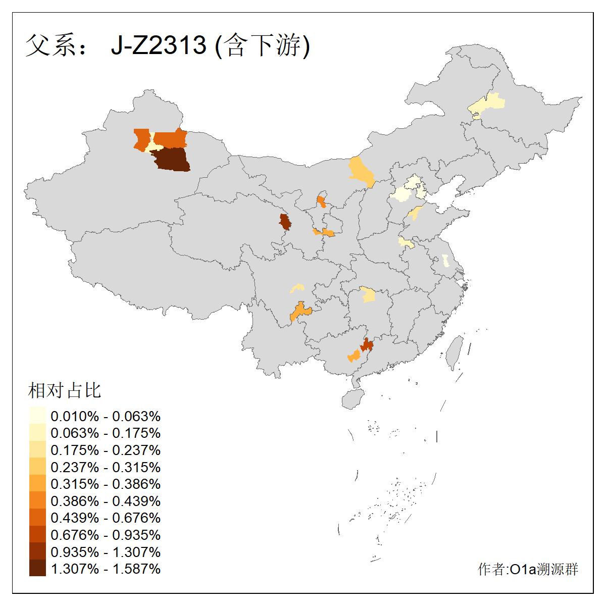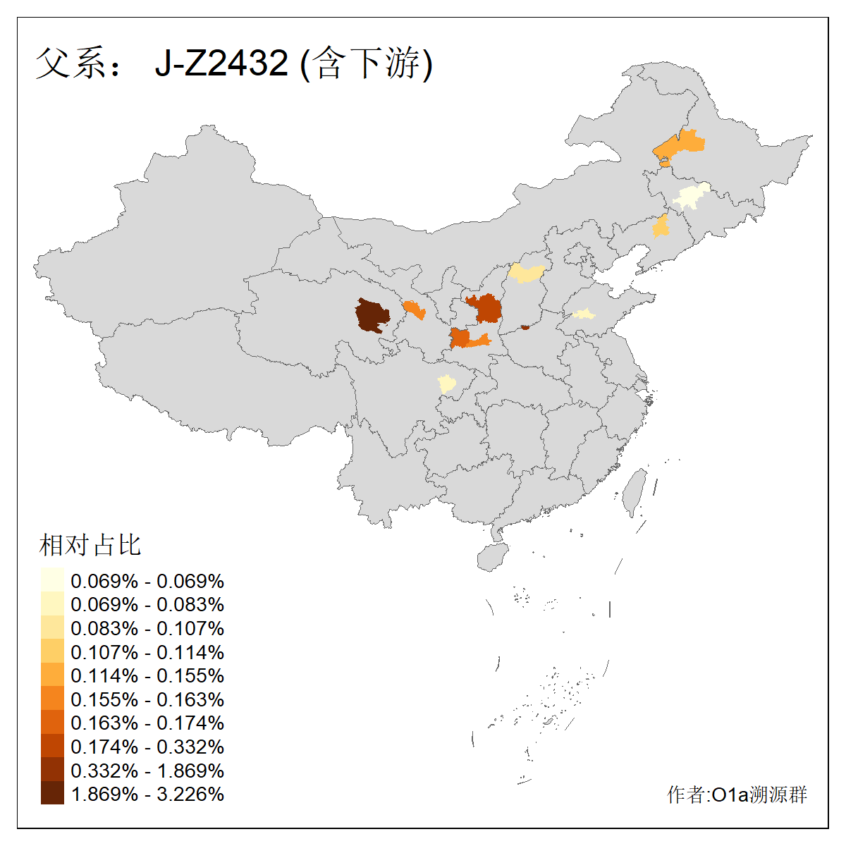 | J-M304_J-M172_J-M410_J-PF4610_J-F4326_J-PF5087_J-AM01359_J-L24_J-Z400 | 10330 | 0.138% | 241人(含下游) 张:25 王:18 刘:14 李:11 杨:10 程:10 马:10 陈:9 何:7 贺:5 吴:4 田:4 石:4 赵:4 ![]() | 77人(不含下游) 张:9 王:7 刘:5 李:5 贺:4 马:4 何:2 曹:2 杨:2 田:2 石:2 胡:2 迪:2 于:1 ![]() |