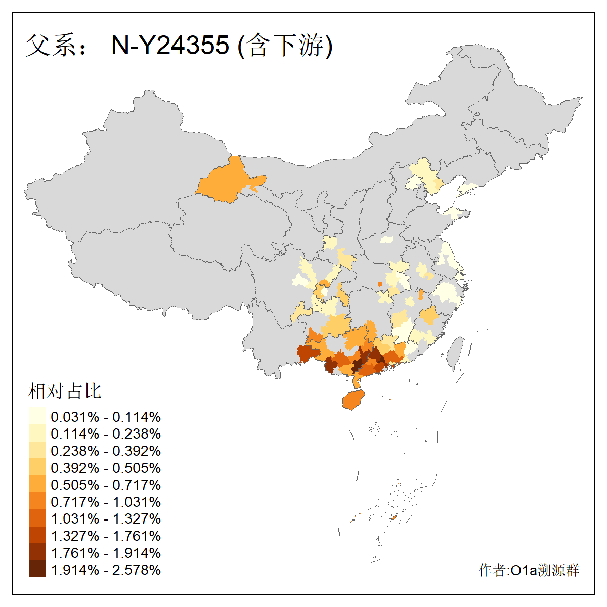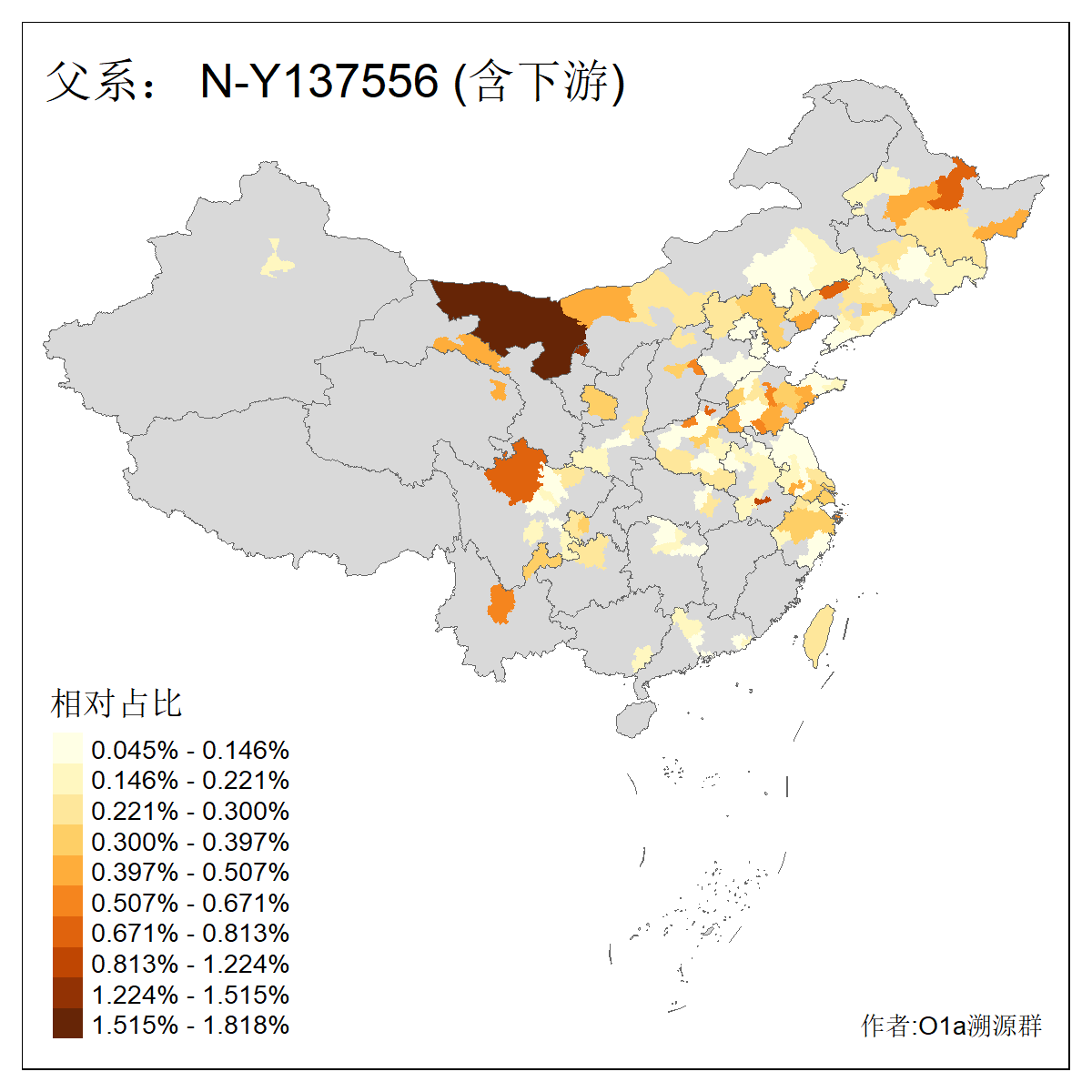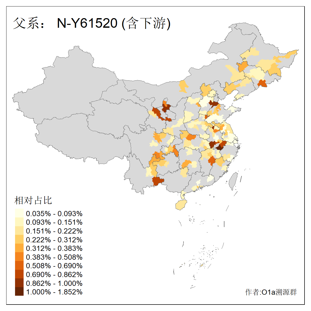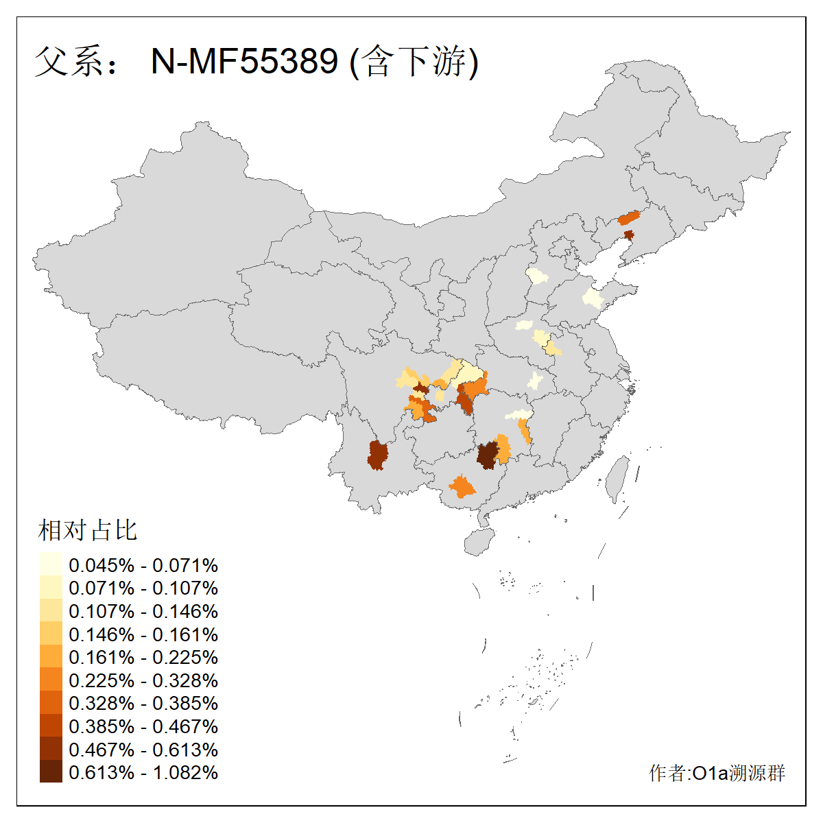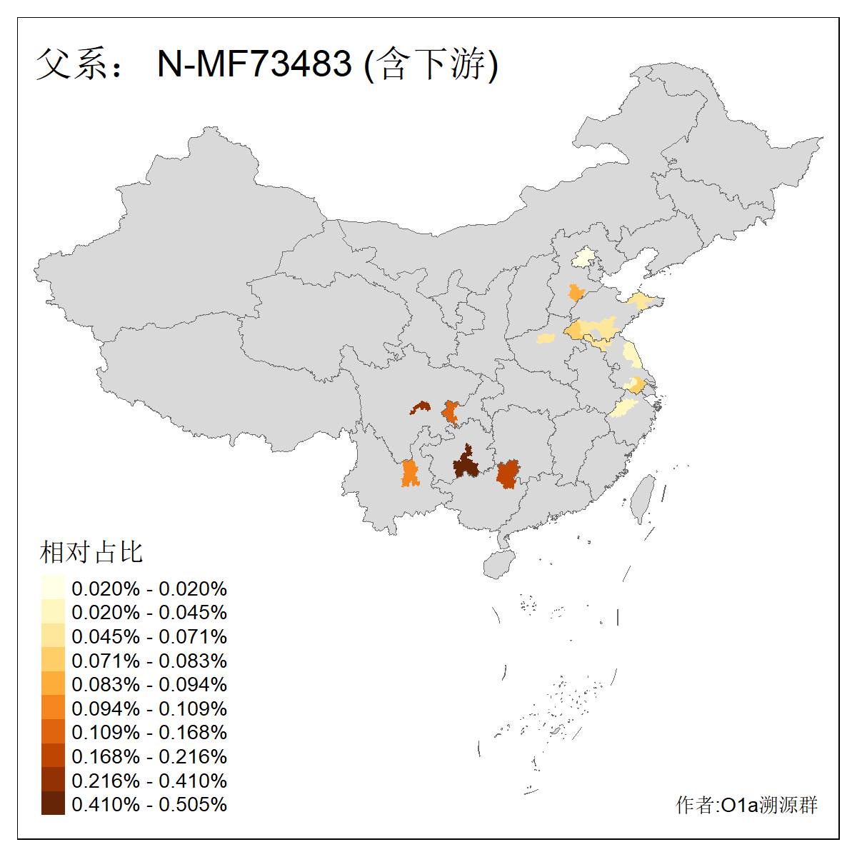 | N-M231_N-CTS833_N-F963_N-F2930_N-M1819_N-F1020_N-M1928_N-Y125475_N-MF170242_N-Y61520_N-MF159068_N-MF435971_N-Y62585 | 3250 | 0.096% | 190人(含下游) 李:15 王:15 何:10 杨:10 张:9 庞:8 苏:8 刘:7 程:7 陈:6 黄:6 戴:5 胡:4 夏:3 ![]() | 105人(不含下游) 王:13 何:8 李:8 杨:6 刘:5 苏:5 程:4 胡:4 陈:4 张:3 伏:2 夏:2 孙:2 徐:2 ![]() |