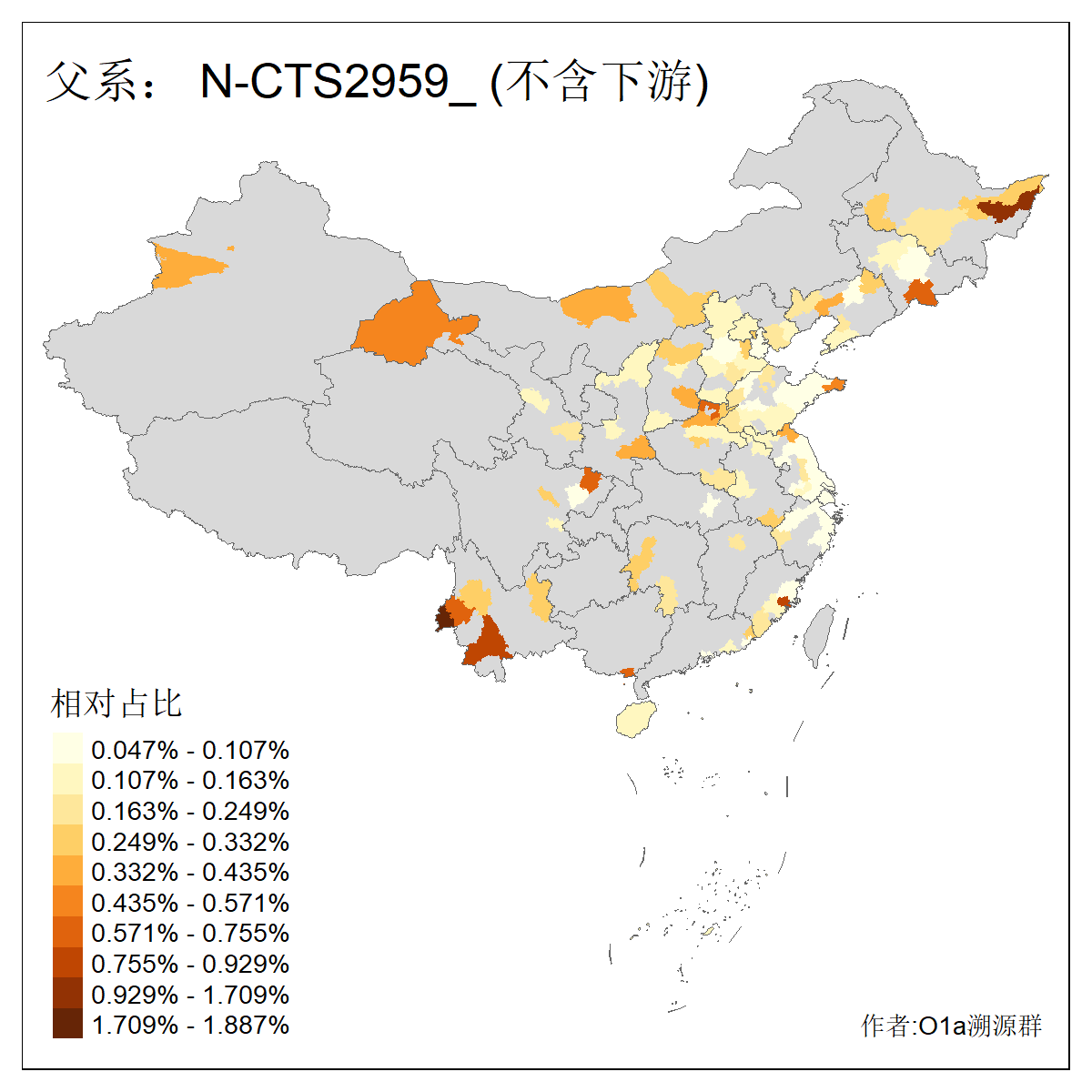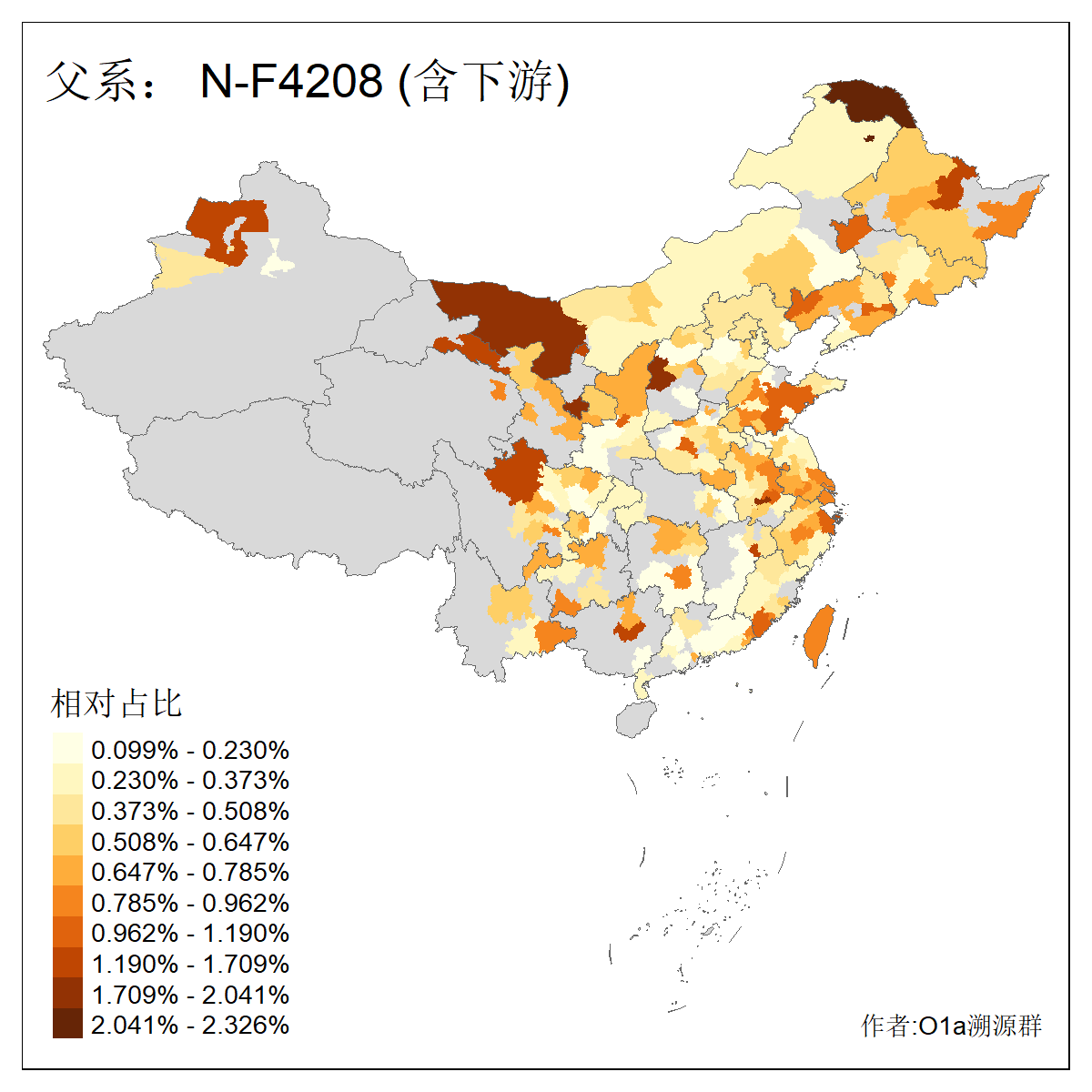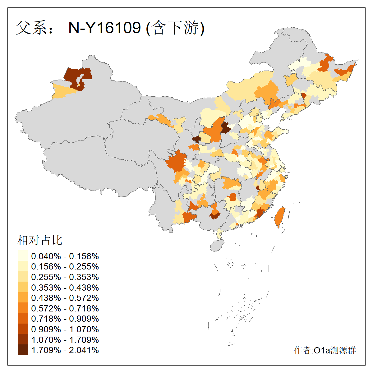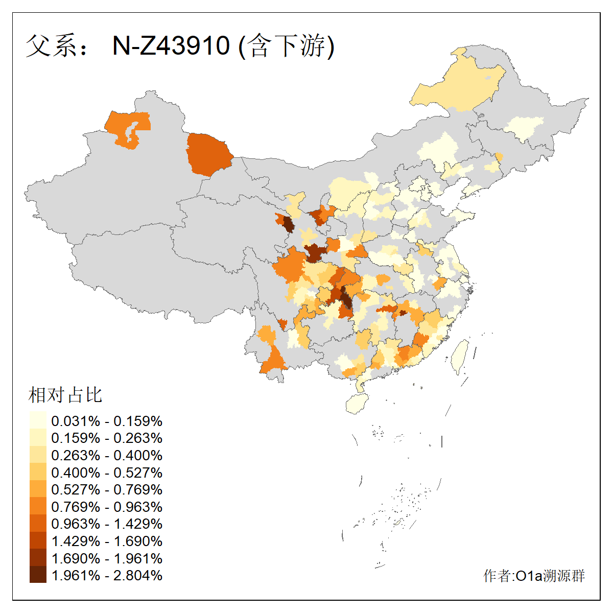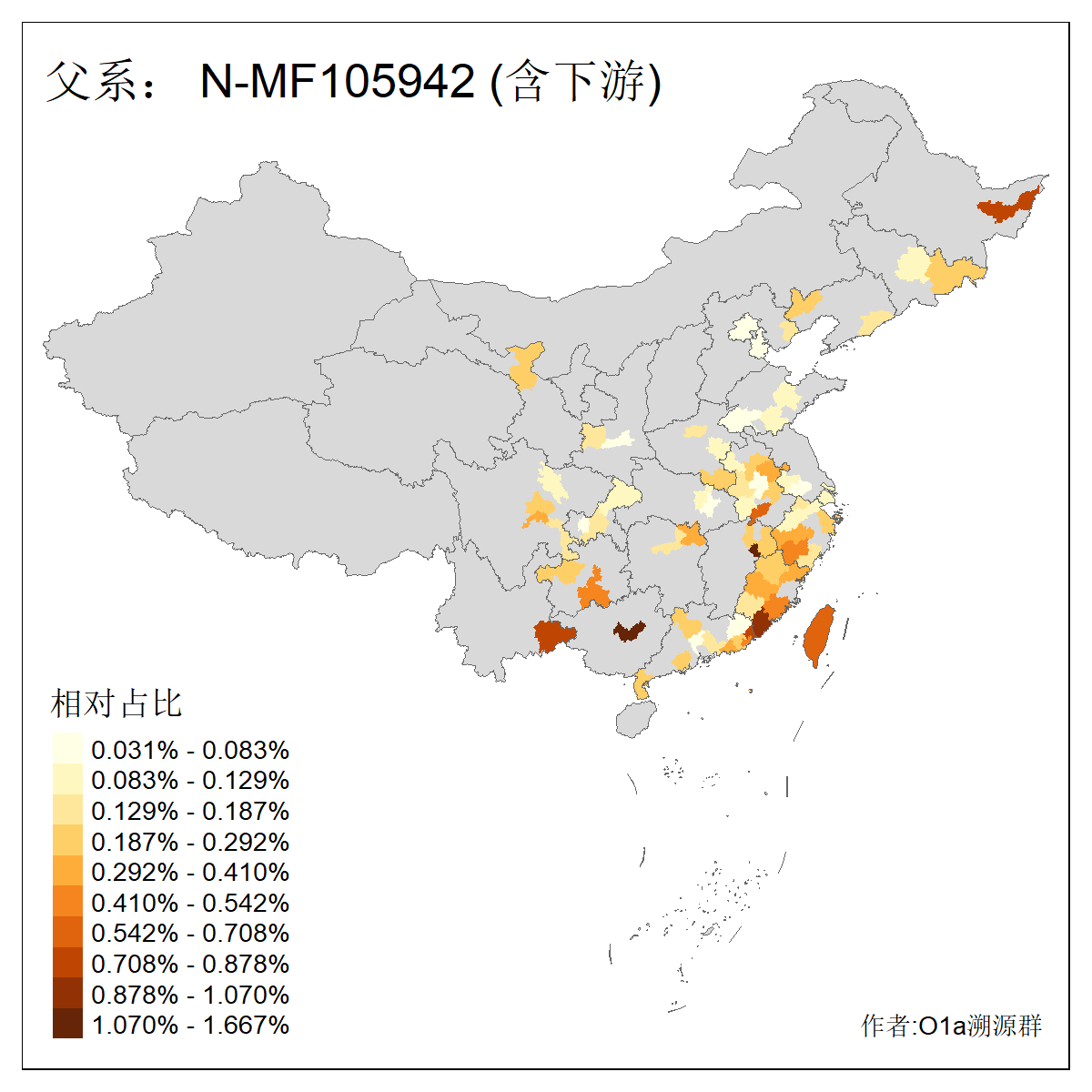 | N-M231_N-CTS833_N-F963_N-F2930_N-M1819_N-F1020_N-M1928_N-Y125475_N-MF170242_N-Y61520_N-MF159068_N-MF435971_N-Y62585 | 3250 | 0.096% | 190人(含下游) 李:15 王:15 何:10 杨:10 张:9 庞:8 苏:8 刘:7 程:7 陈:6 黄:6 戴:5 胡:4 夏:3 ![]() | 105人(不含下游) 王:13 何:8 李:8 杨:6 刘:5 苏:5 程:4 胡:4 陈:4 张:3 伏:2 夏:2 孙:2 徐:2 ![]() |