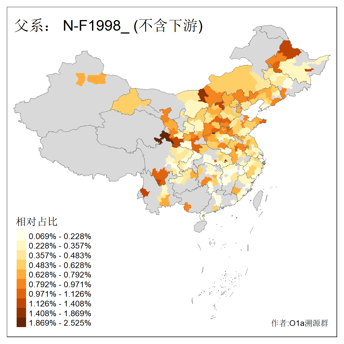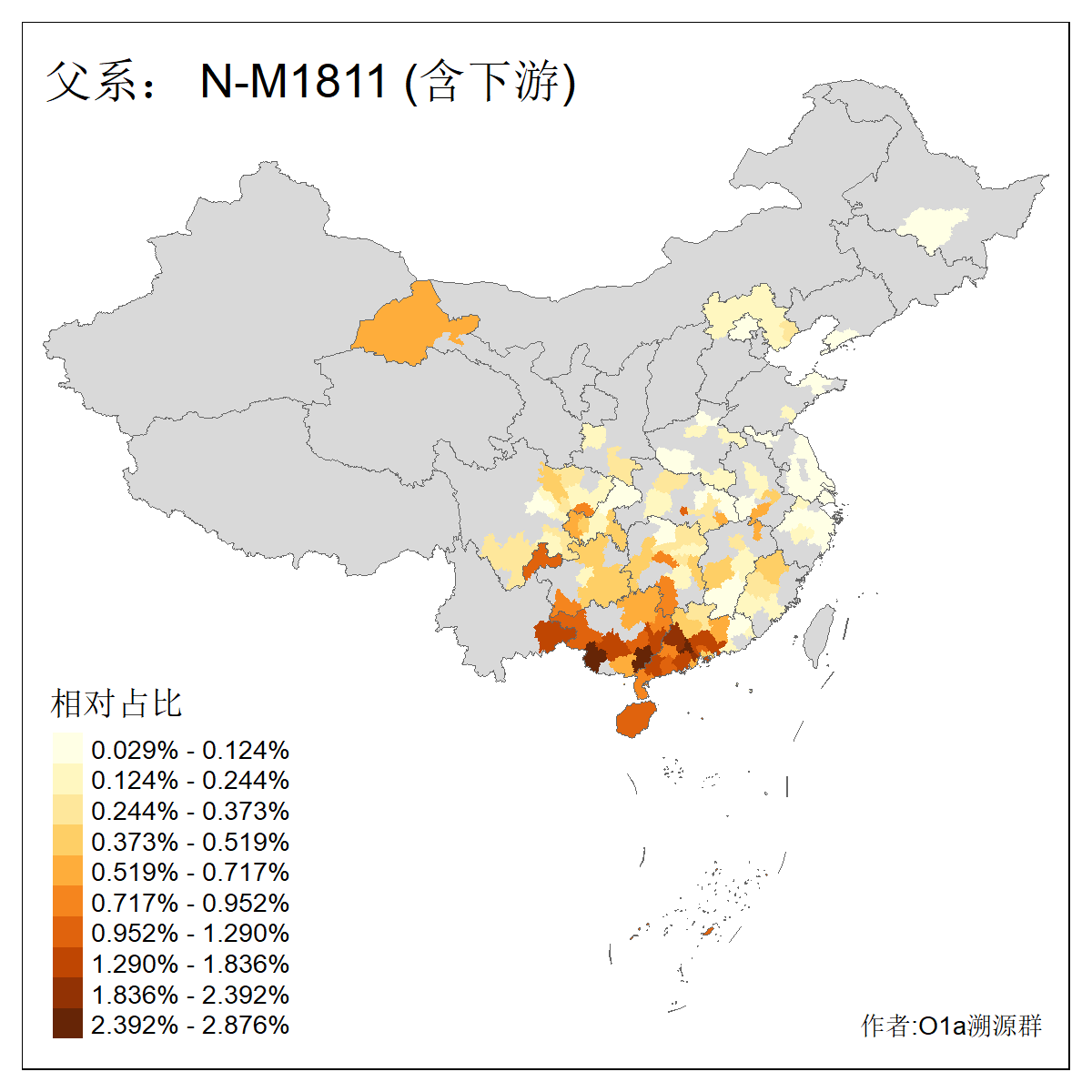 | #父系分布图 作者:咸宁华 2024年8月29日 注意:某些支系不含下游人数过少统计仅供参,仅统计含下游大于等于8人的支系 | ||||
