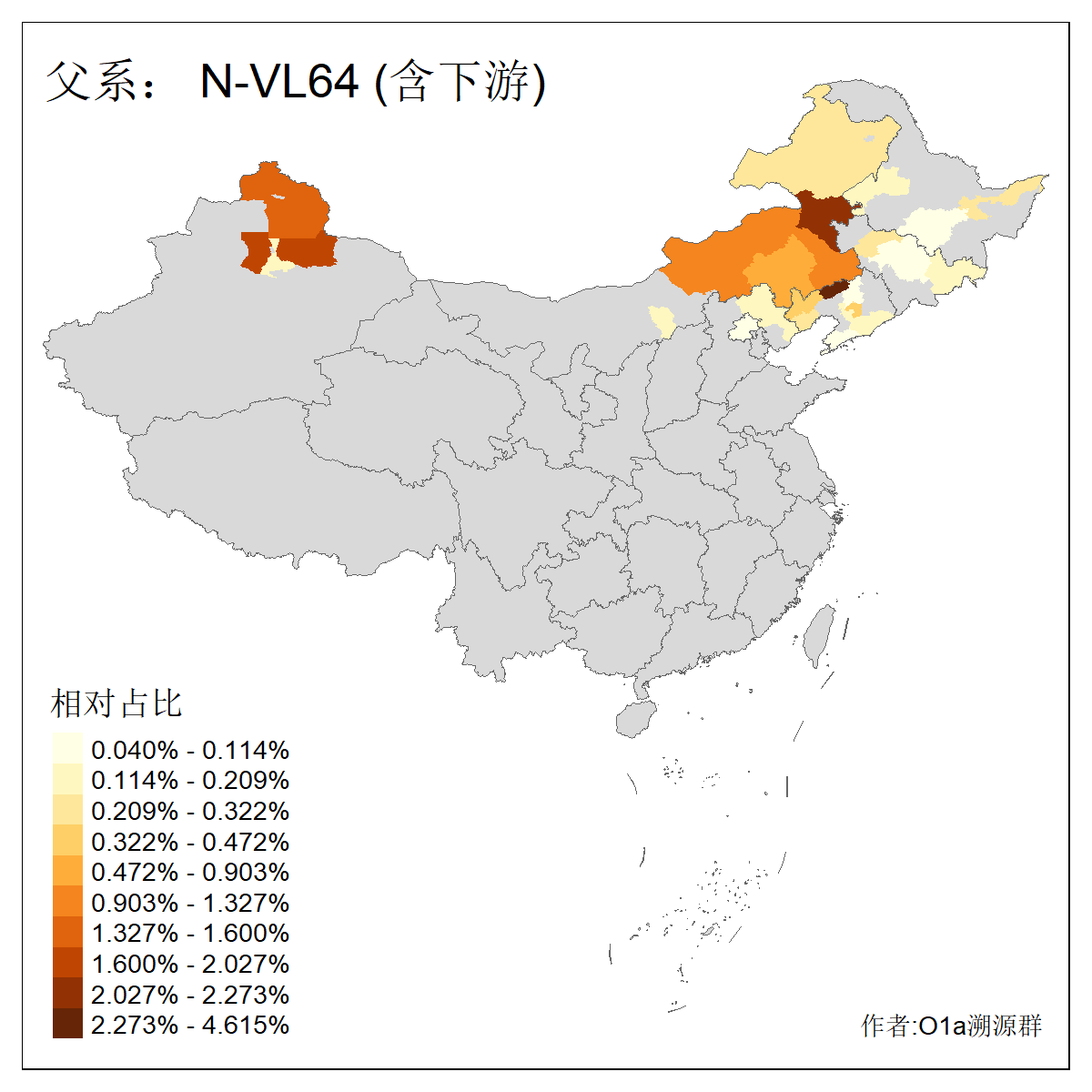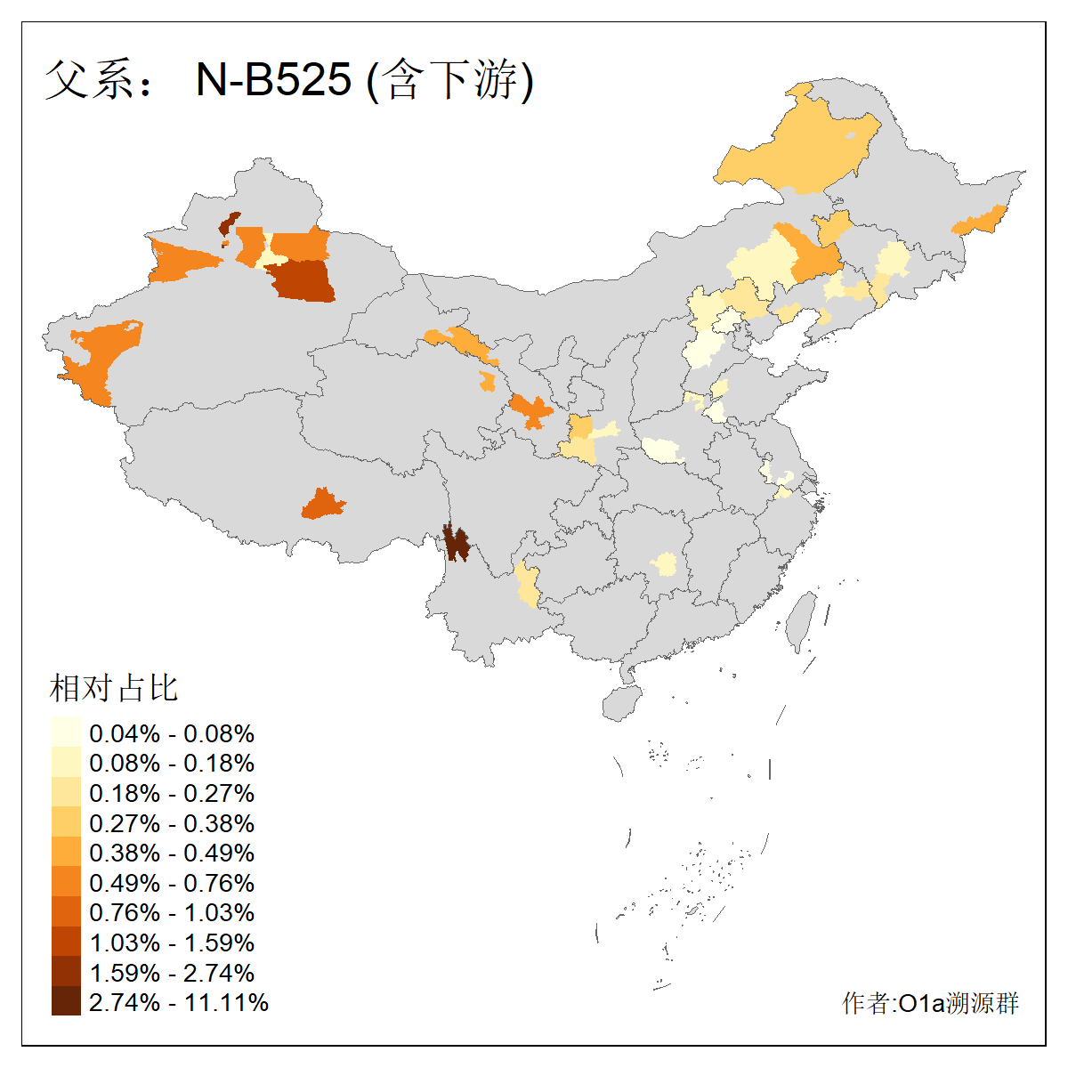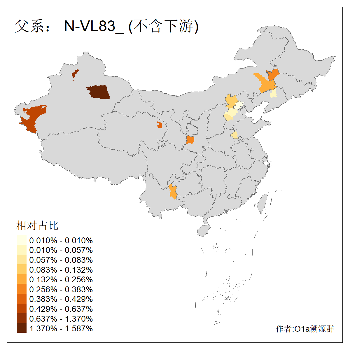 | N-M231_N-CTS833_N-F963_N-F1206_N-F2584_N-M46_N-CTS6128_N-Z1957_N-M2126_N-M2019_N-M2058 | 4170 | 0.205% | 446人(含下游) 王:64 张:53 李:35 刘:27 赵:13 贺:12 许:11 冯:10 杨:10 马:10 宋:9 陈:9 孙:8 郭:8 ![]() | 33人(不含下游) 张:5 赵:5 王:4 刘:3 李:2 董:2 马:2 云:1 包:1 吴:1 梁:1 罗:1 翟:1 艾:1 ![]() |