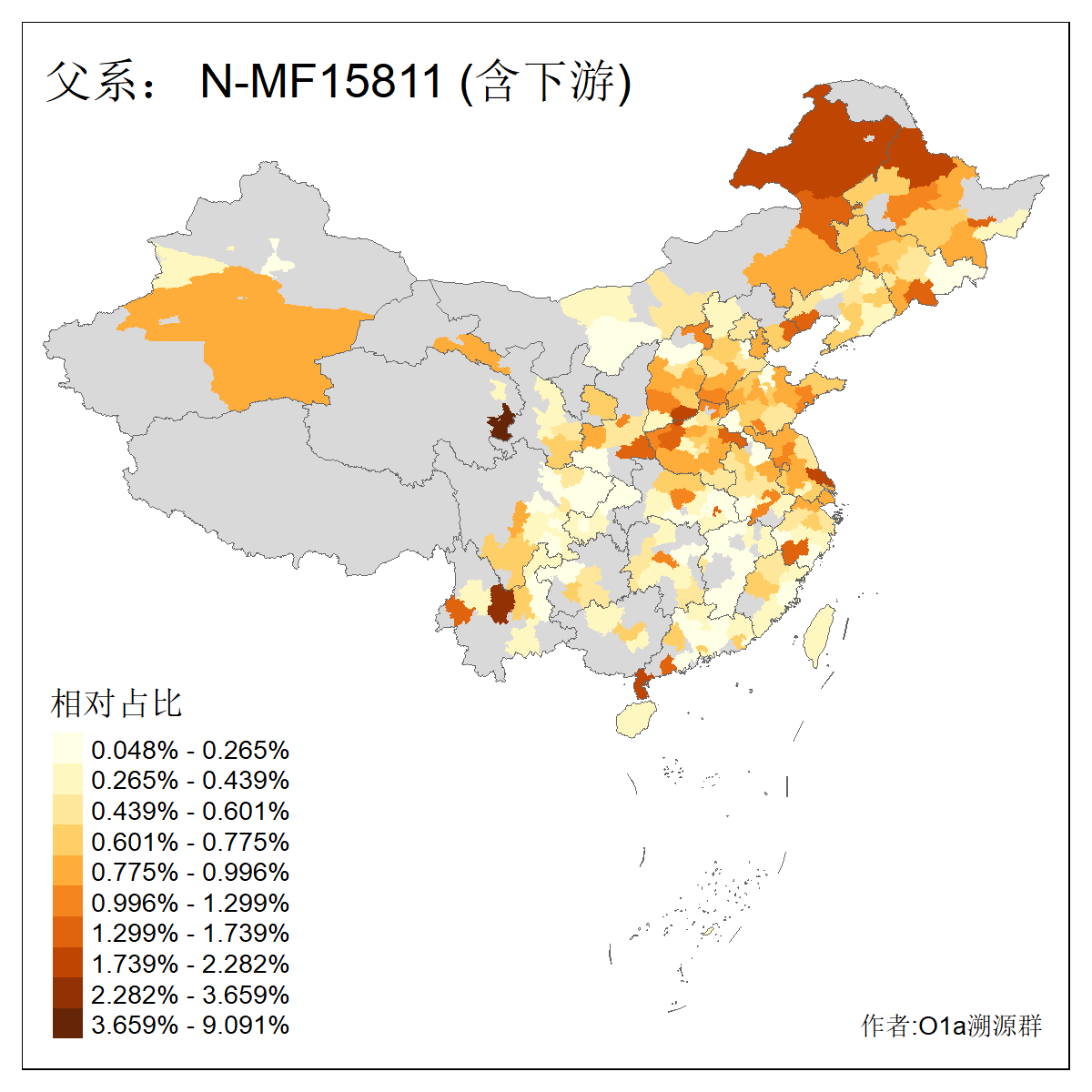 | N-M231_N-CTS833_N-F963_N-F1206_N-F2584_N-M46_N-CTS6128 | 10970 | 0.336% | 676人(含下游) 张:74 王:73 李:44 刘:41 杨:19 赵:18 许:14 陈:14 马:13 高:13 白:12 贺:12 郭:11 冯:10 ![]() | 1人(不含下游) 张:1 ![]() |
