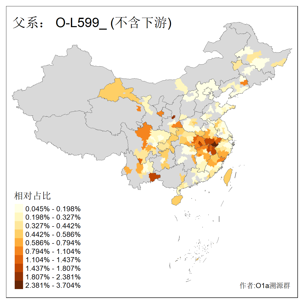 | O-F1876_O-F2159_O-F1867_O-F852_O-F2266_O-F16011 | 6010 | 0.080% | 176人(含下游) 李:21 张:10 刘:9 陈:8 夏:7 陆:7 朱:6 谢:6 徐:5 杨:5 钟:5 吴:4 熊:4 王:4 ![]() | 18人(不含下游) 李:3 陆:3 范:2 黄:2 刘:1 杨:1 楚:1 王:1 田:1 许:1 赵:1 陈:1 ![]() |