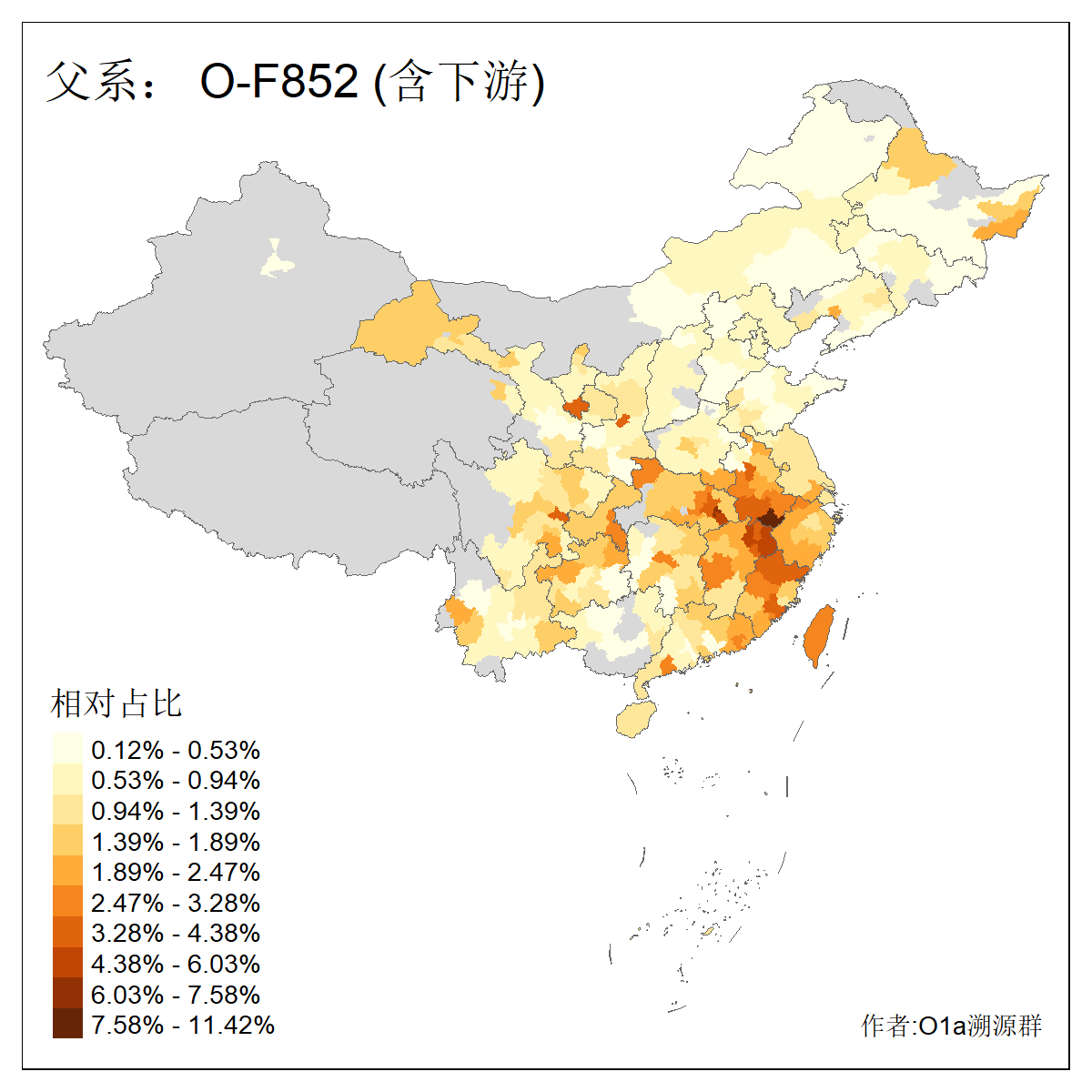 | O-F1876_O-F2159_O-F1867_O-F852_O-F2266_O-L599_O-Z24958_O-Z43961_O-FGC58664_O-MF21767_O-MF136518 | 1860 | 0.017% | 8人(含下游) 占:1 尹:1 杨:1 毛:1 许:1 路:1 邹:1 陈:1 ![]() | 2人(不含下游) 毛:1 路:1 ![]() |