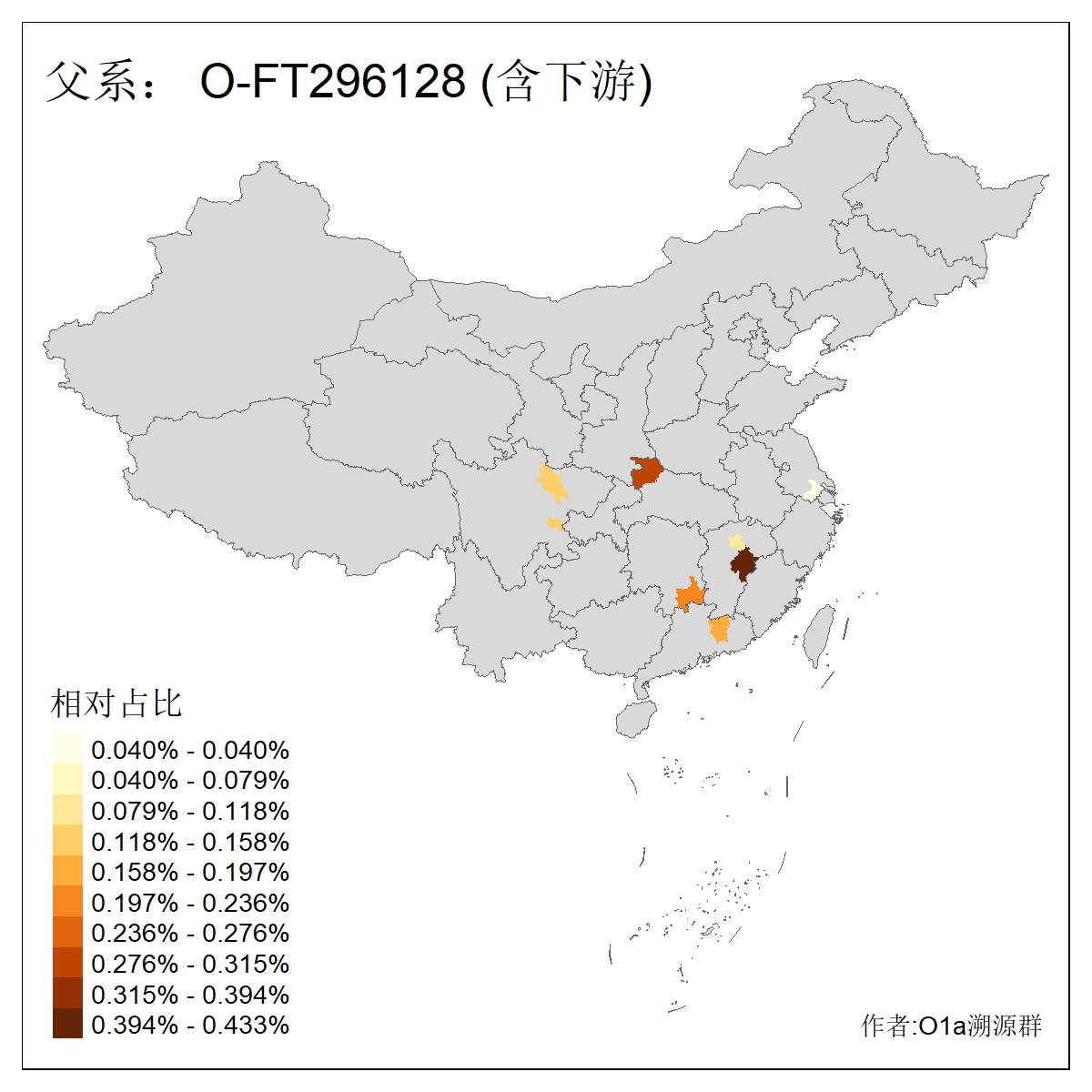 | O-F1876_O-F2159_O-F1867_O-F852_O-F2266_O-L599_O-Z24958_O-CTS5919 | 2390 | 0.013% | 25人(含下游) 黄:6 范:4 李:3 朱:2 万:1 何:1 宋:1 幸:1 张:1 林:1 熊:1 王:1 程:1 陈:1 ![]() | 3人(不含下游) 李:2 朱:1 ![]() |