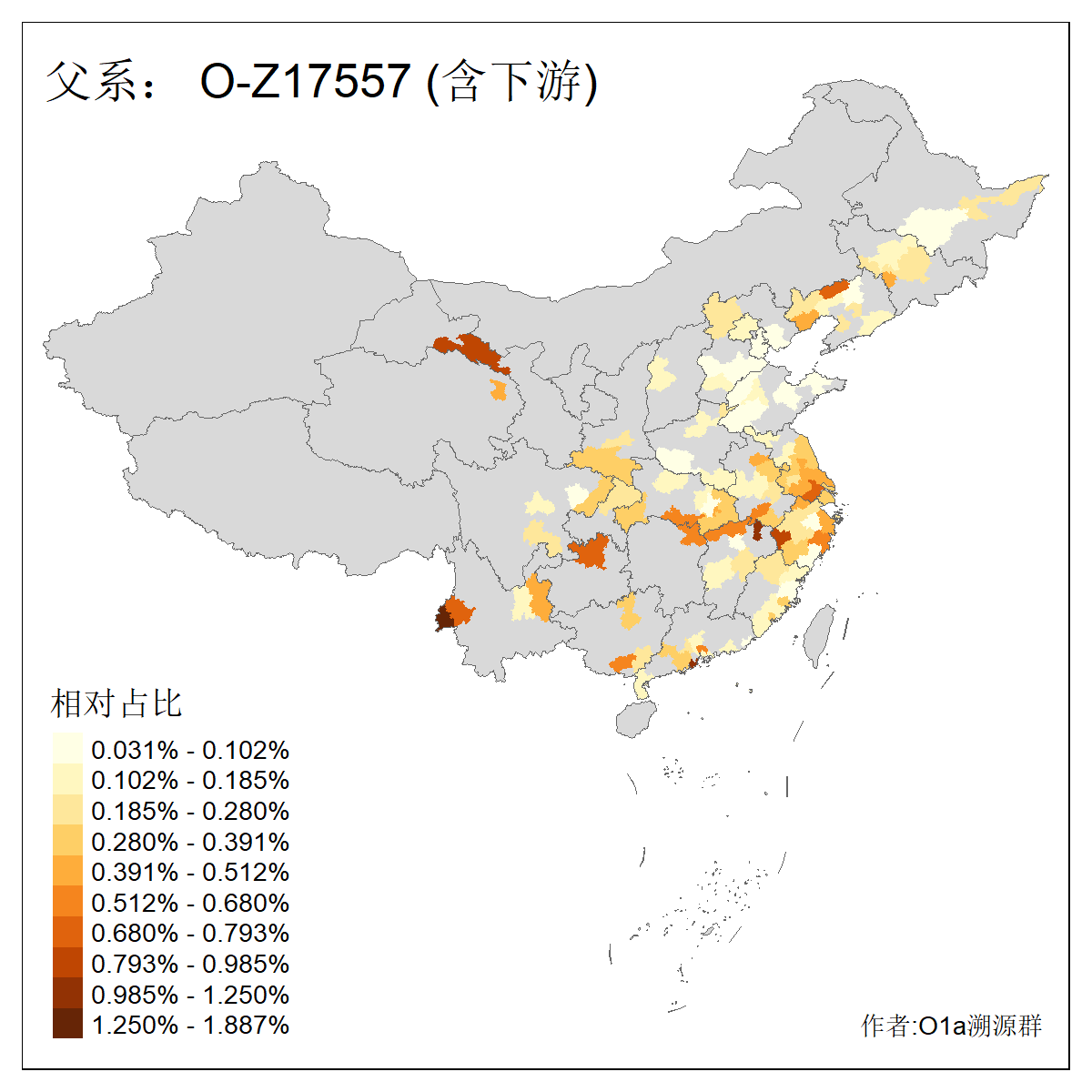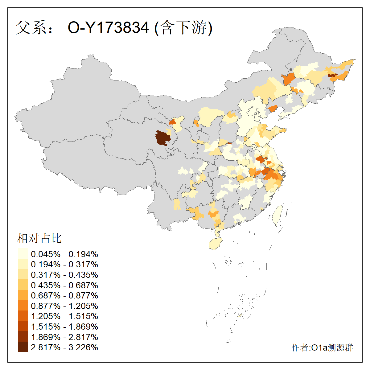 | O-F742_O-F1150_O-F2310_O-F837_O-Y29783_O-CTS2334_O-MF14167_O-Y29792_O-Y173835_O-Y173834 | 3660 | 0.169% | 483人(含下游) 刘:40 孙:34 张:28 于:26 王:26 陈:22 李:20 丁:15 章:12 周:10 徐:8 黄:8 赵:7 吴:6 ![]() | 80人(不含下游) 王:13 张:8 于:5 刘:5 李:5 戴:3 徐:2 林:2 解:2 金:2 陈:2 隋:2 黄:2 任:1 ![]() |