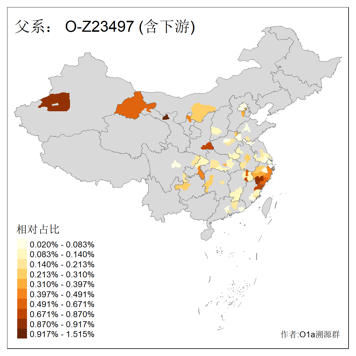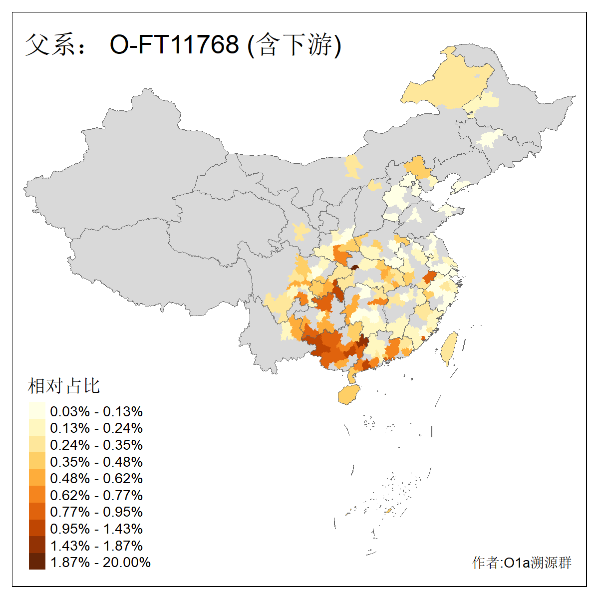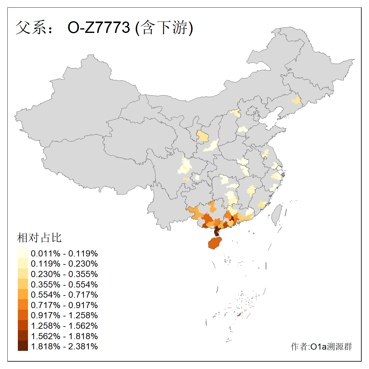 | O-M119_O-F1_O-Z23193_O-M307_O-F446_O-Z23448_O-F140_O-K611_O-F206_O-F78_O-F81_O-CTS2458_O-MF6080 | 4450 | 0.258% | 502人(含下游) 张:31 王:29 刘:26 陈:26 李:21 黄:21 郑:20 周:17 姚:13 杨:13 朱:12 万:9 胡:9 何:8 ![]() | 65人(不含下游) 郑:11 陈:5 王:4 张:3 林:3 黄:3 刘:2 叶:2 周:2 程:2 胡:2 袁:2 许:2 余:1 ![]() |