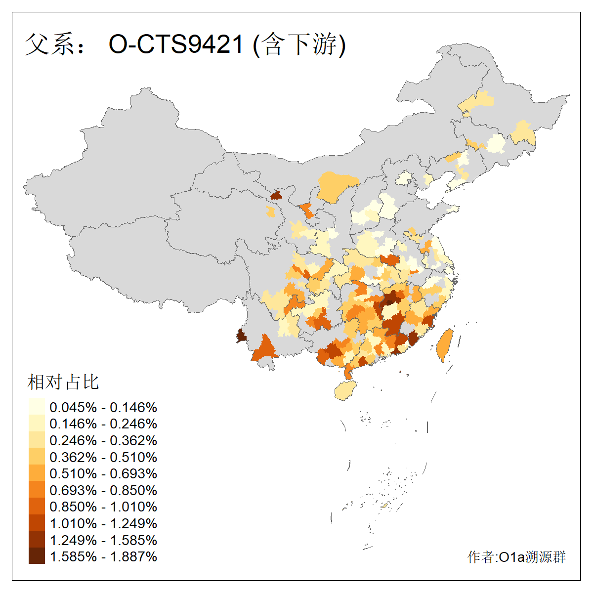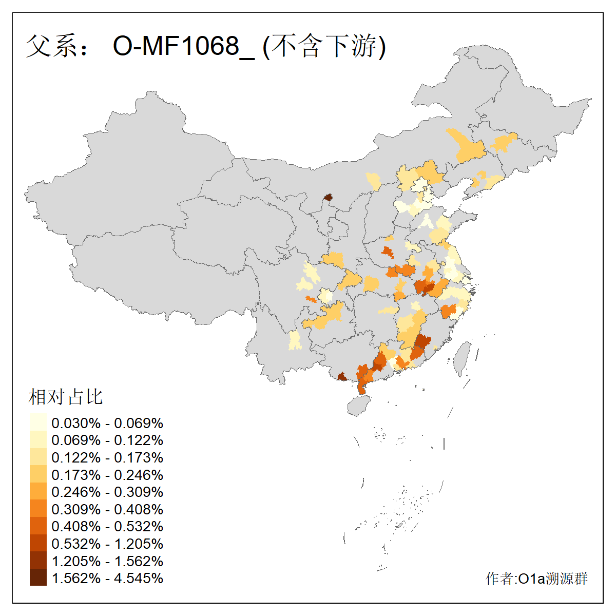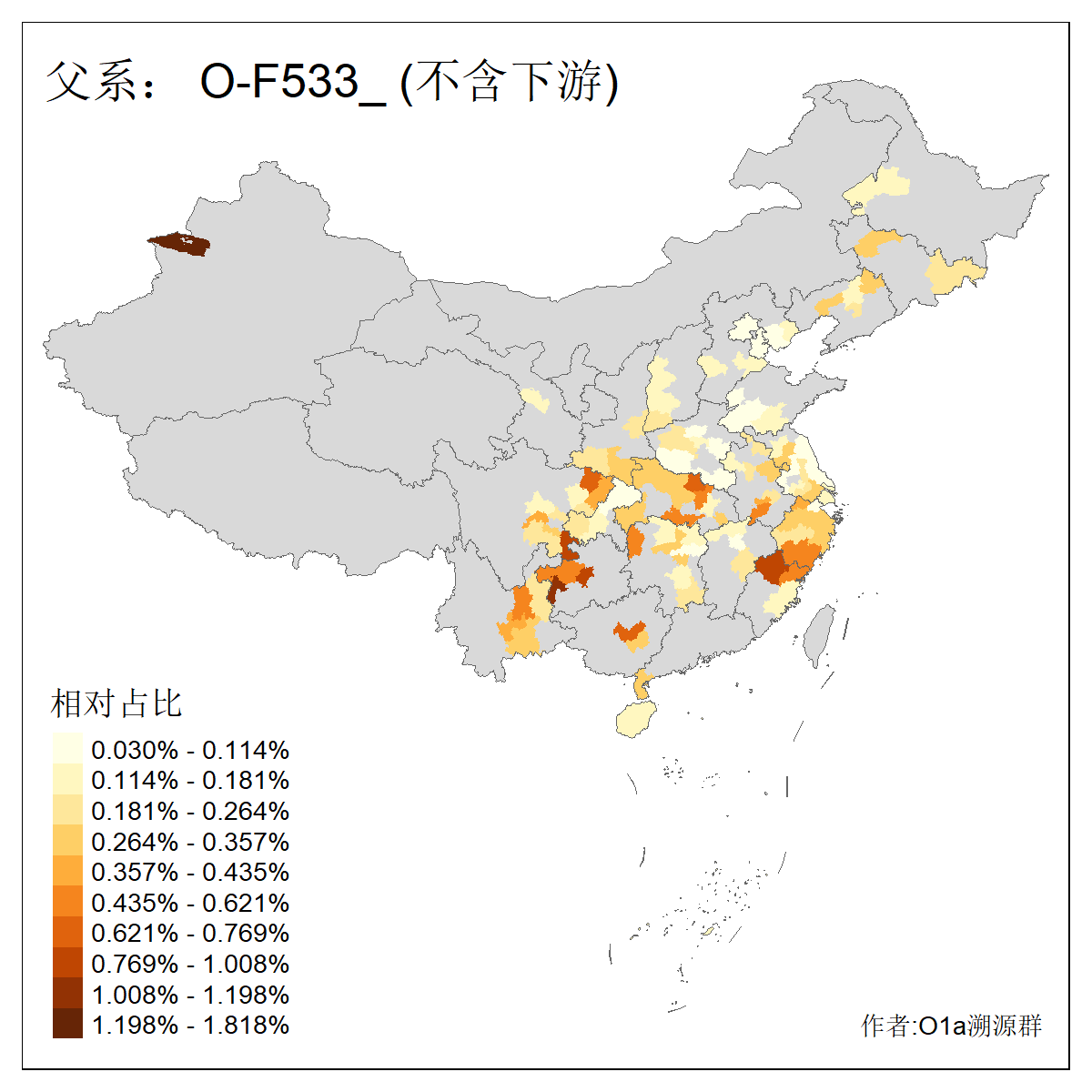 | O-M119_O-F1_O-Z23193_O-M307_O-F446_O-Z23448_O-F140_O-K611_O-F206_O-F78_O-F81_O-CTS2458_O-MF6080 | 4450 | 0.258% | 502人(含下游) 张:31 王:29 刘:26 陈:26 李:21 黄:21 郑:20 周:17 姚:13 杨:13 朱:12 万:9 胡:9 何:8 ![]() | 65人(不含下游) 郑:11 陈:5 王:4 张:3 林:3 黄:3 刘:2 叶:2 周:2 程:2 胡:2 袁:2 许:2 余:1 ![]() |