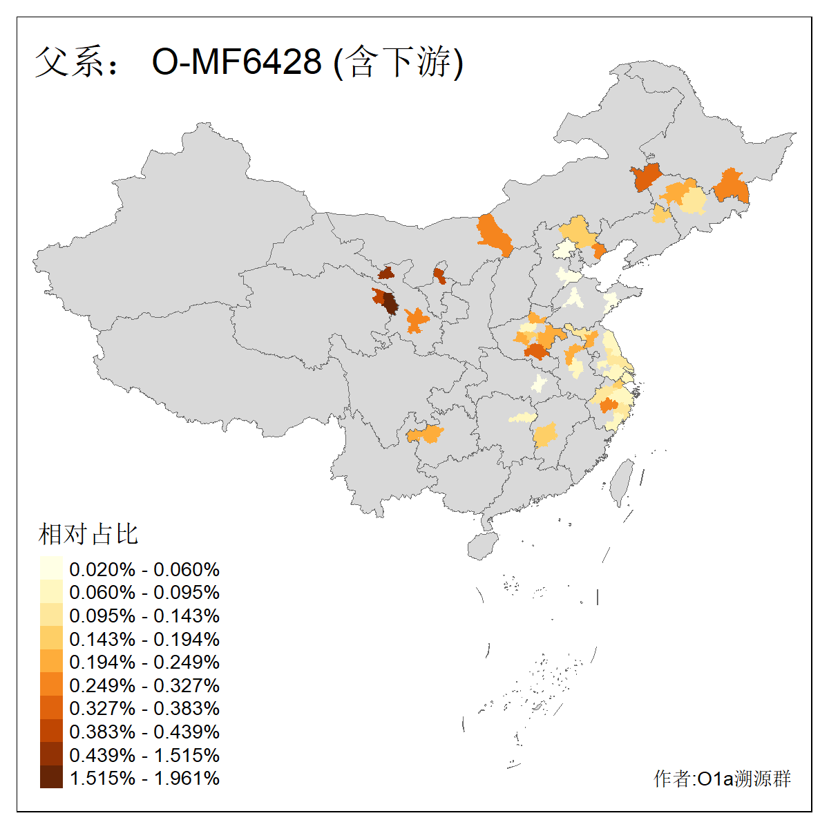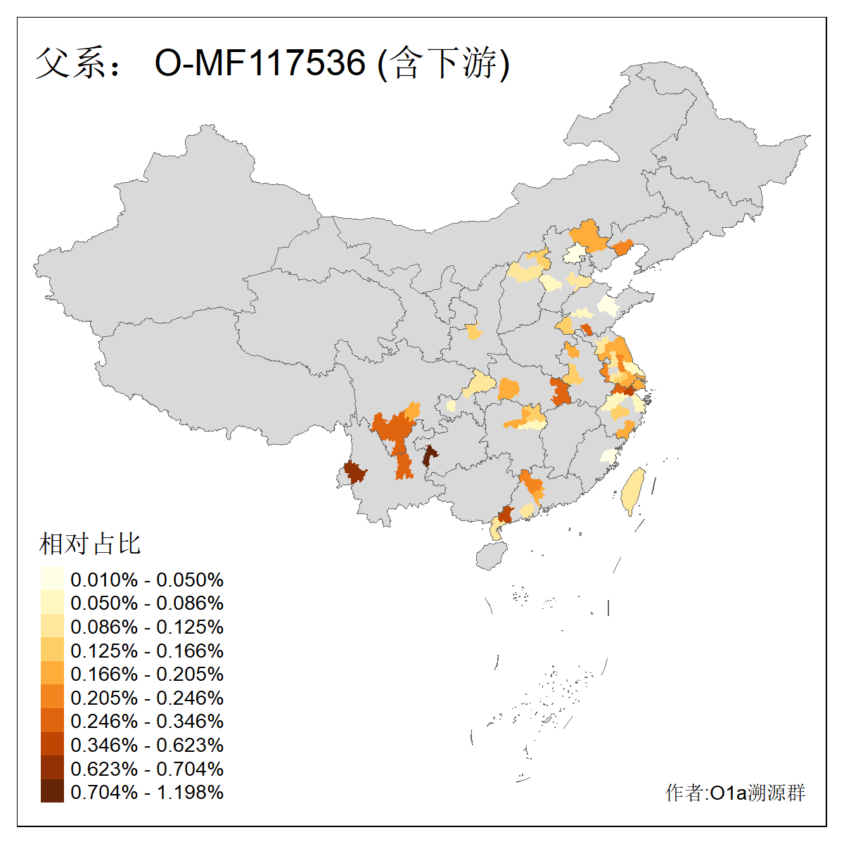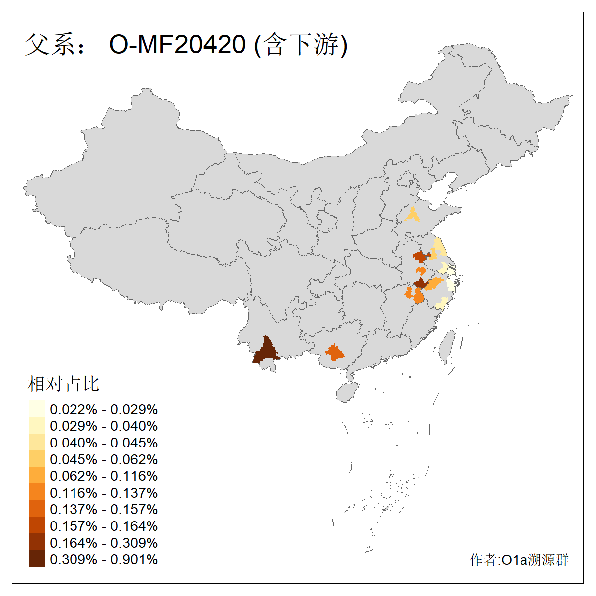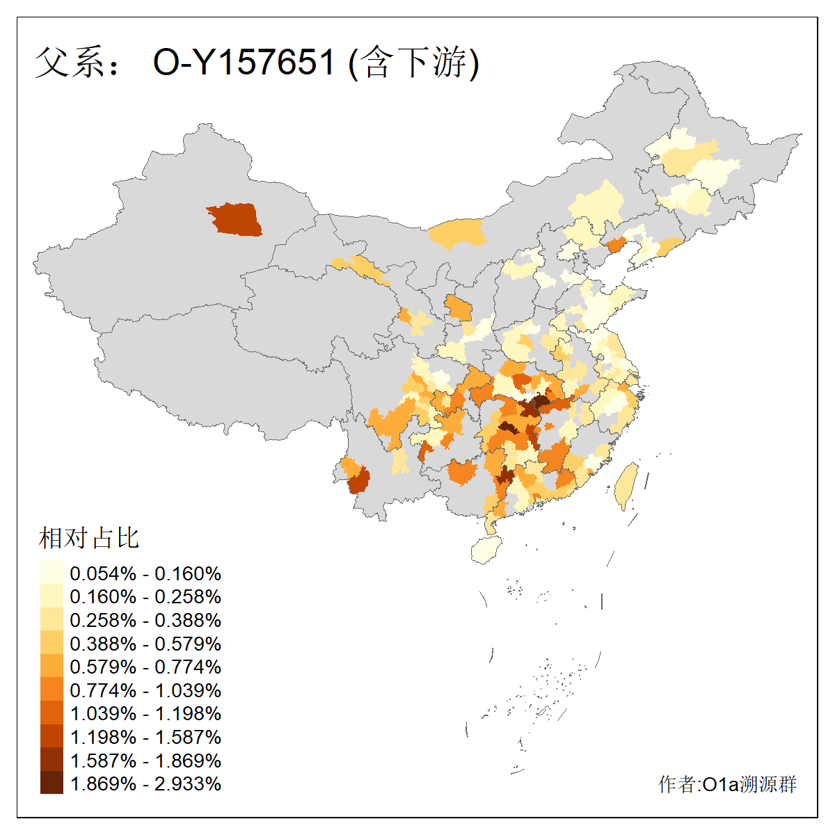 | O-M119_O-F1_O-Z23193_O-M307_O-F446_O-Z23448_O-F140_O-K611_O-F206_O-F78_O-F81_O-MF1075_O-MF1081_O-MF36656 | 1570 | 0.026% | 9人(含下游) 杨:2 刘:1 李:1 缪:1 袁:1 贡:1 赵:1 陶:1 ![]() | 4人(不含下游) 刘:1 李:1 杨:1 缪:1 ![]() |