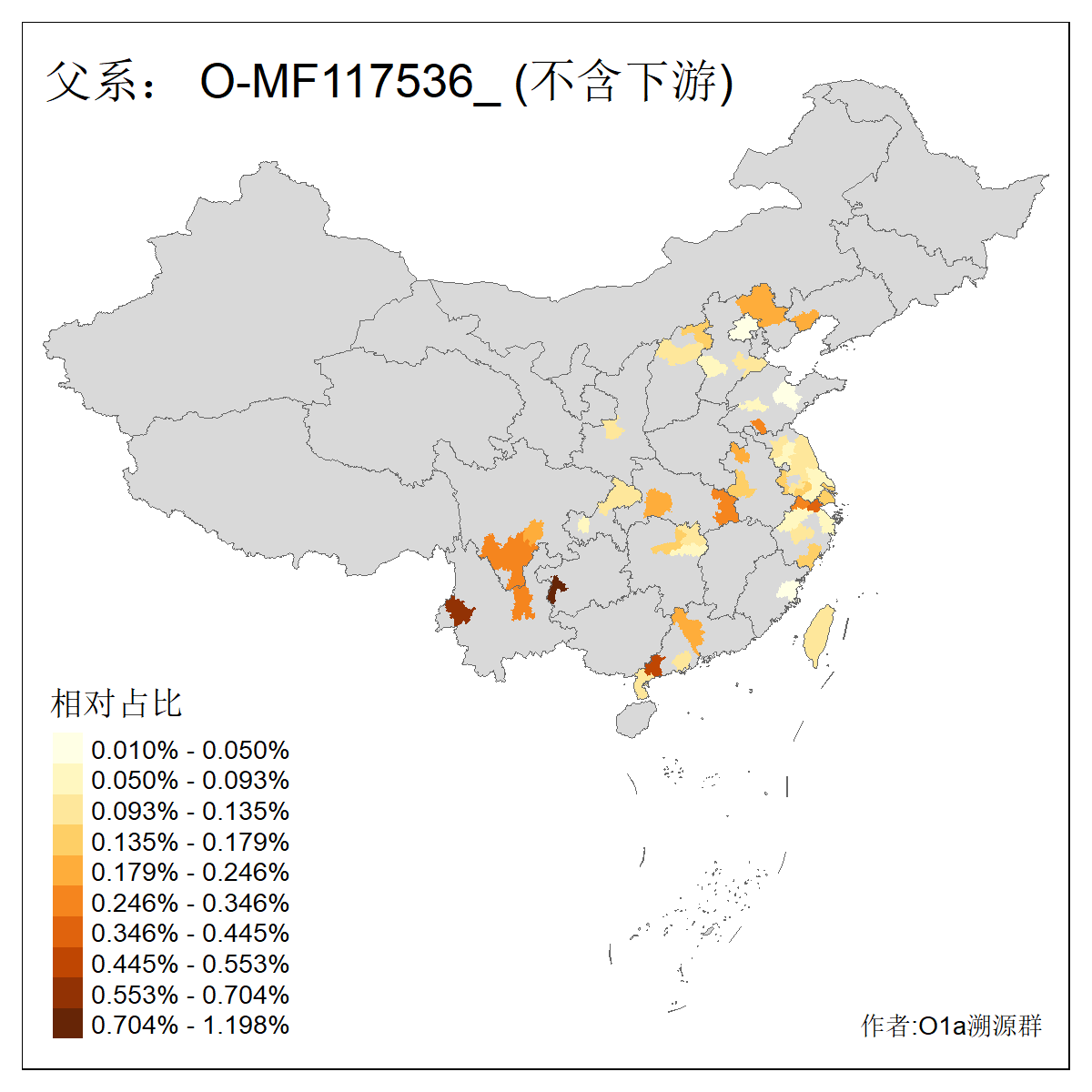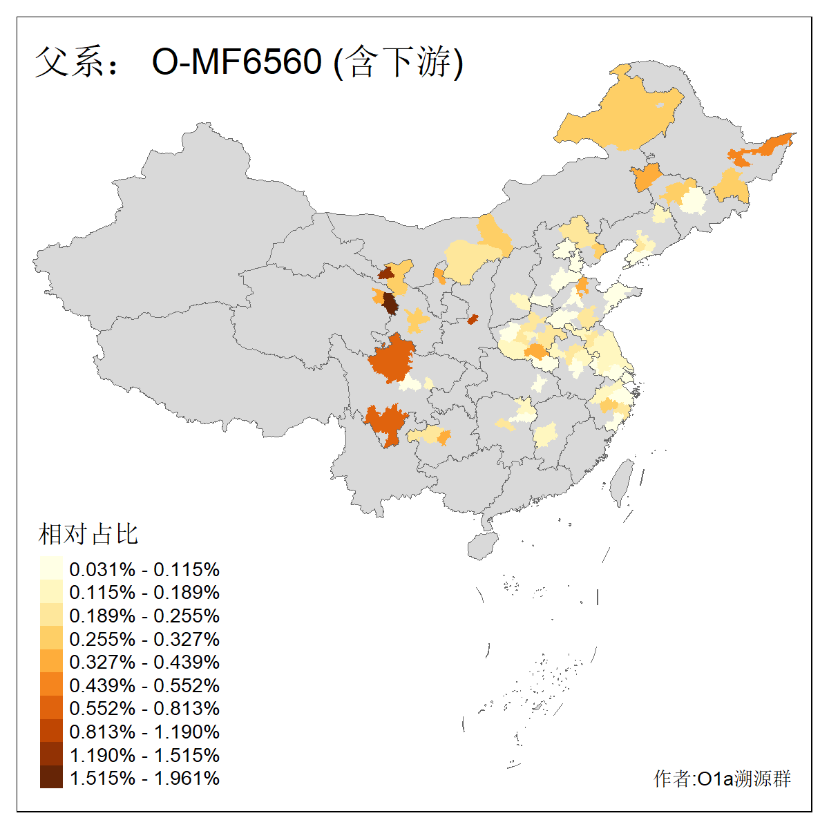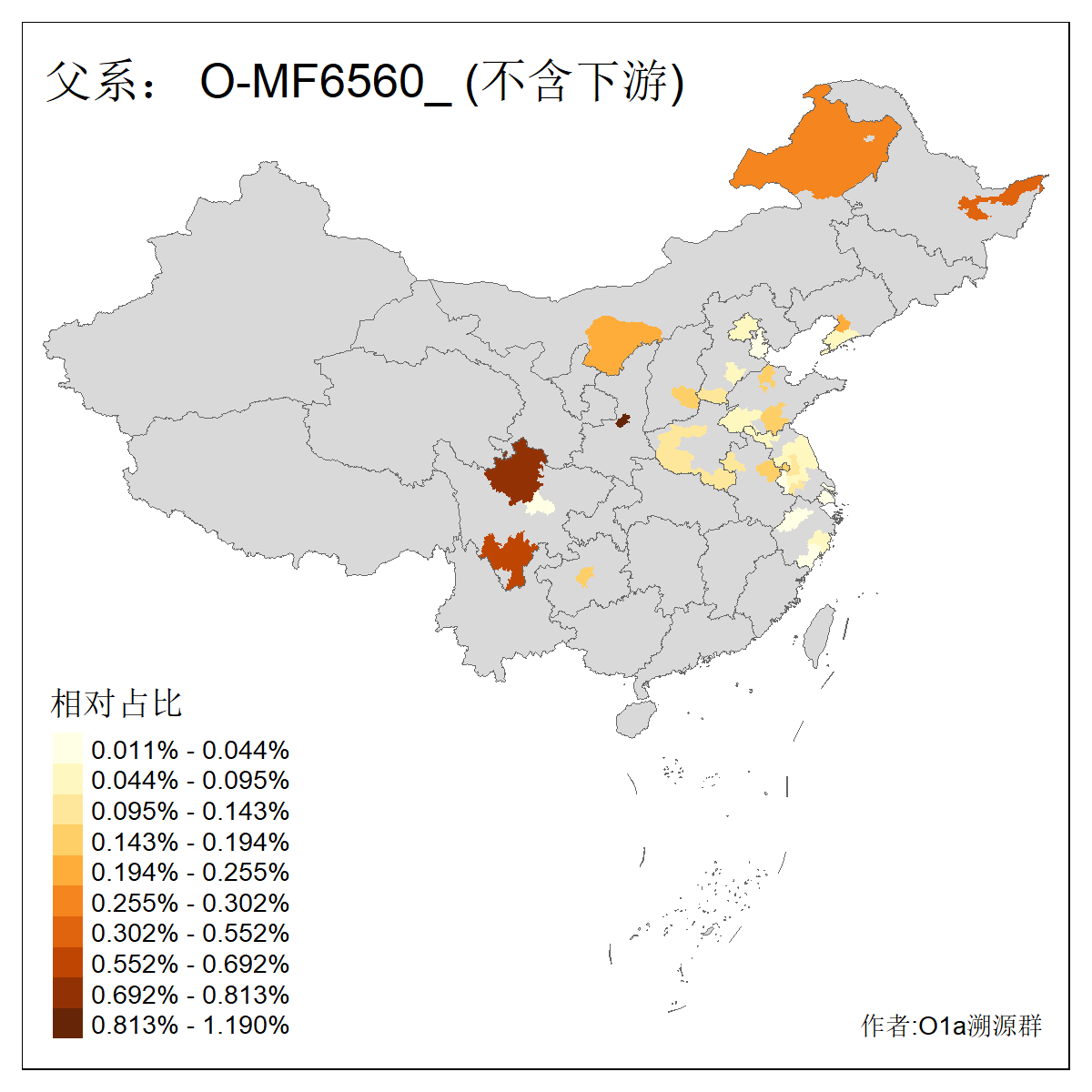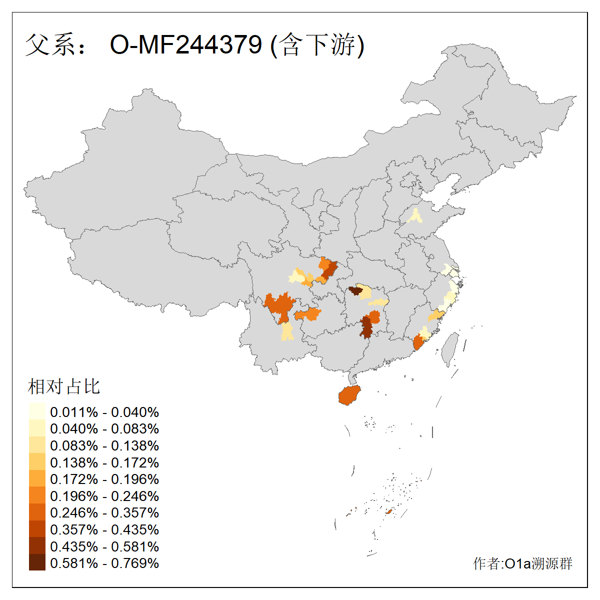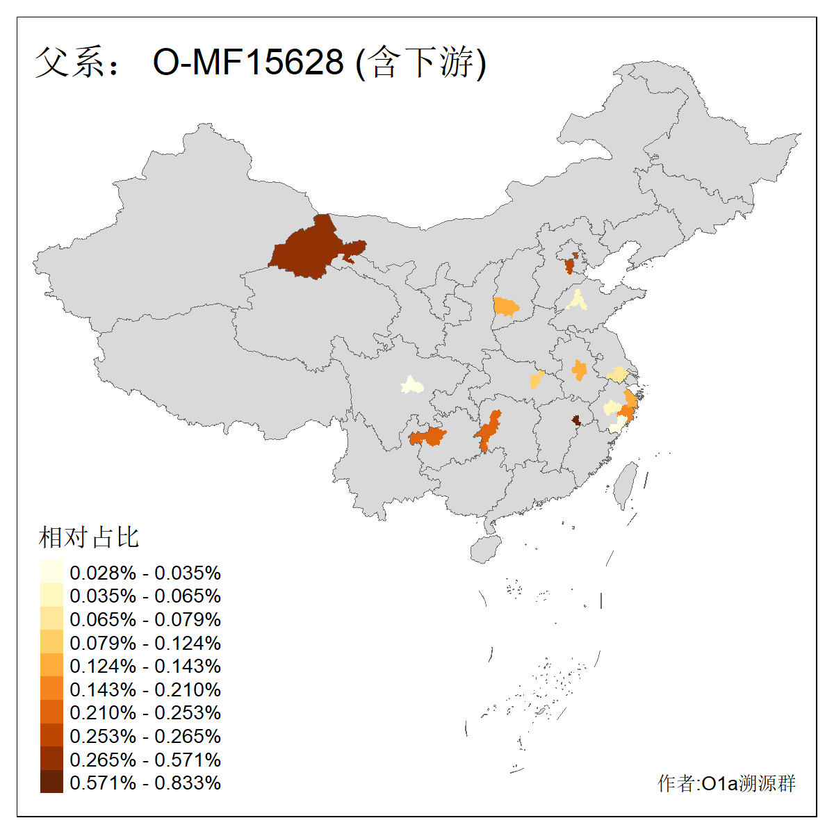 | O-M119_O-F1_O-Z23193_O-M307_O-F446_O-Z23448_O-F140_O-K611_O-F206_O-F78_O-F81_O-MF1075_O-MF1081_O-MF36656 | 1570 | 0.026% | 9人(含下游) 杨:2 刘:1 李:1 缪:1 袁:1 贡:1 赵:1 陶:1 ![]() | 4人(不含下游) 刘:1 李:1 杨:1 缪:1 ![]() |