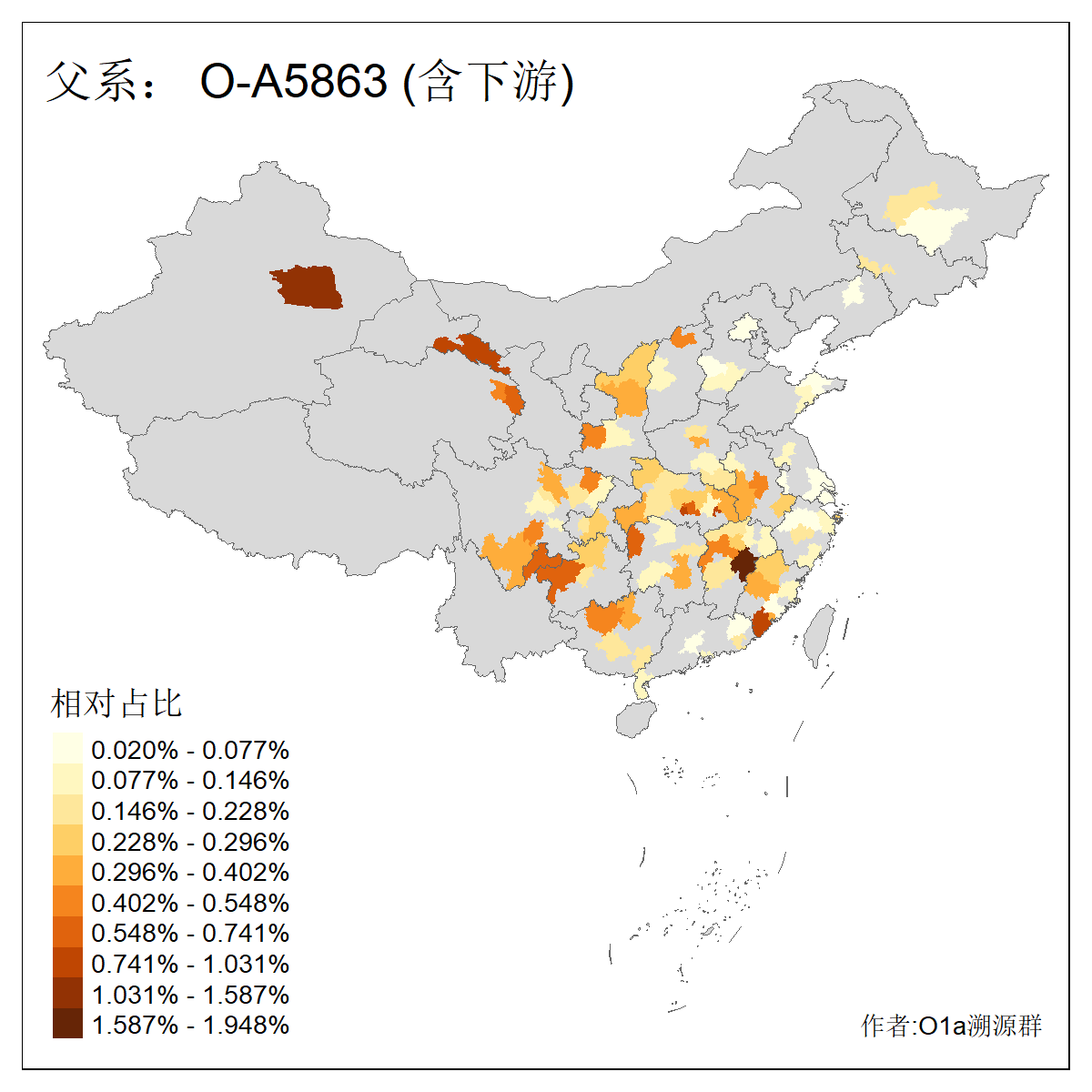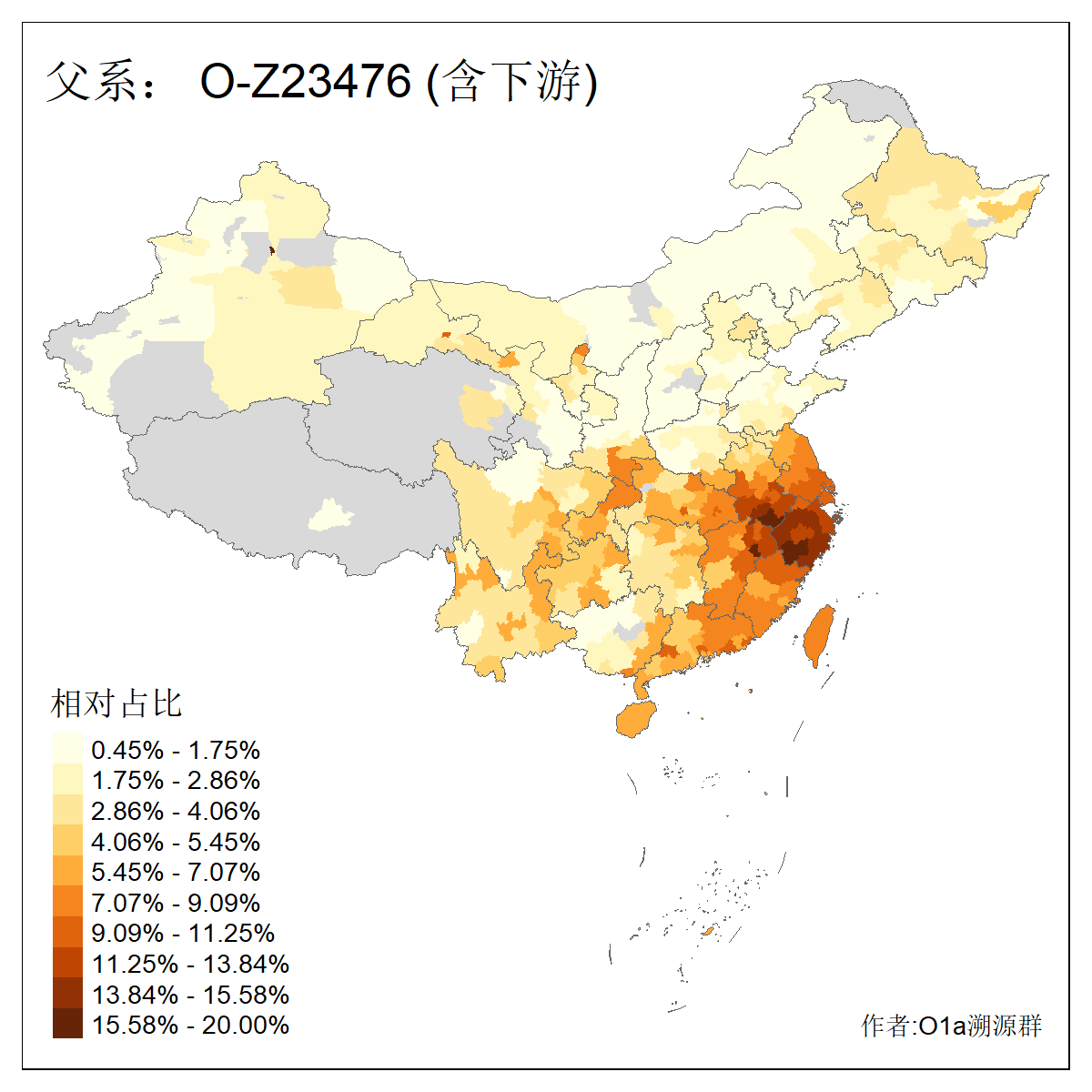 | O-M119_O-F1_O-Z23193_O-CTS5726_O-SK1590 | 9680 | 0.126% | 270人(含下游) 王:21 陈:21 胡:20 吴:17 刘:14 张:14 杨:12 宋:9 姚:8 崔:8 周:7 赵:7 黄:7 朱:6 ![]() | 1人(不含下游) 张:1 ![]() |