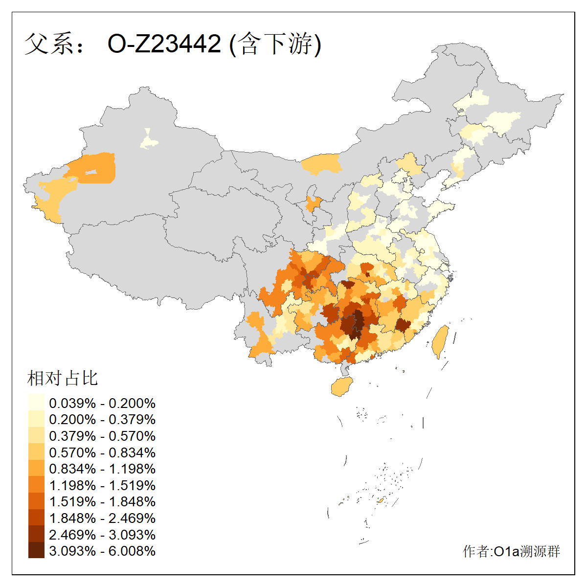 | O-M119_O-F1_O-Z23193_O-M307_O-CTS8423_O-CTS52 | 7280 | 2.192% | 4782人(含下游) 李:322 陈:254 张:251 王:249 徐:192 刘:191 罗:177 杨:140 何:130 黄:129 吴:103 周:96 林:71 朱:70 ![]() | 447人(不含下游) 李:28 张:26 王:25 刘:22 徐:20 孙:17 朱:12 陈:12 吴:11 杨:9 丁:8 黄:8 周:7 沈:6 ![]() |