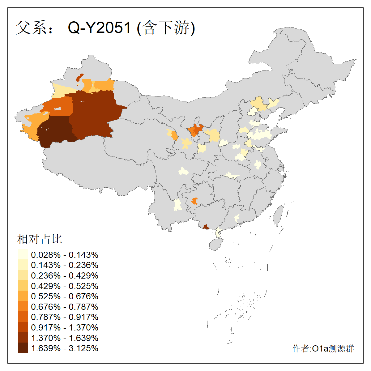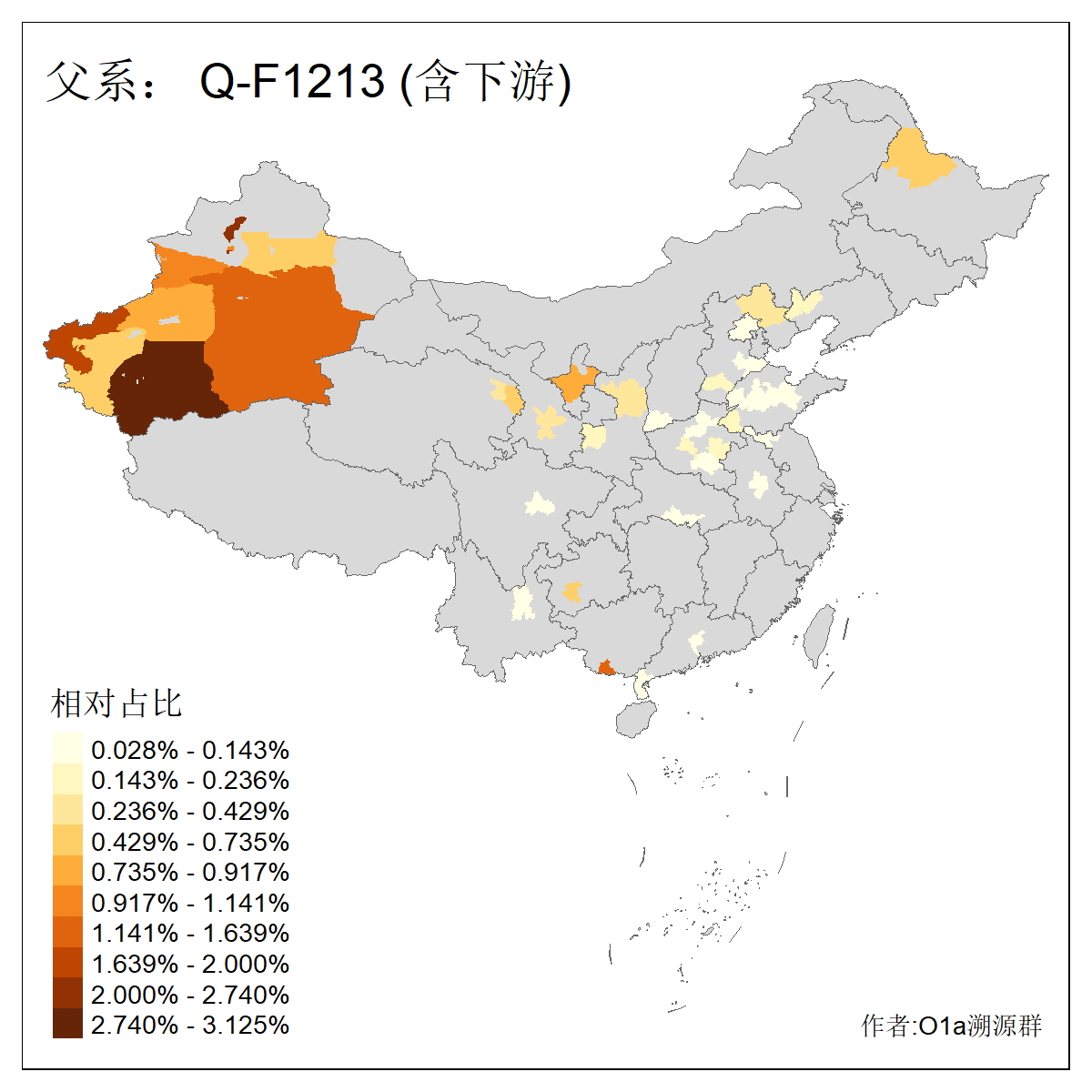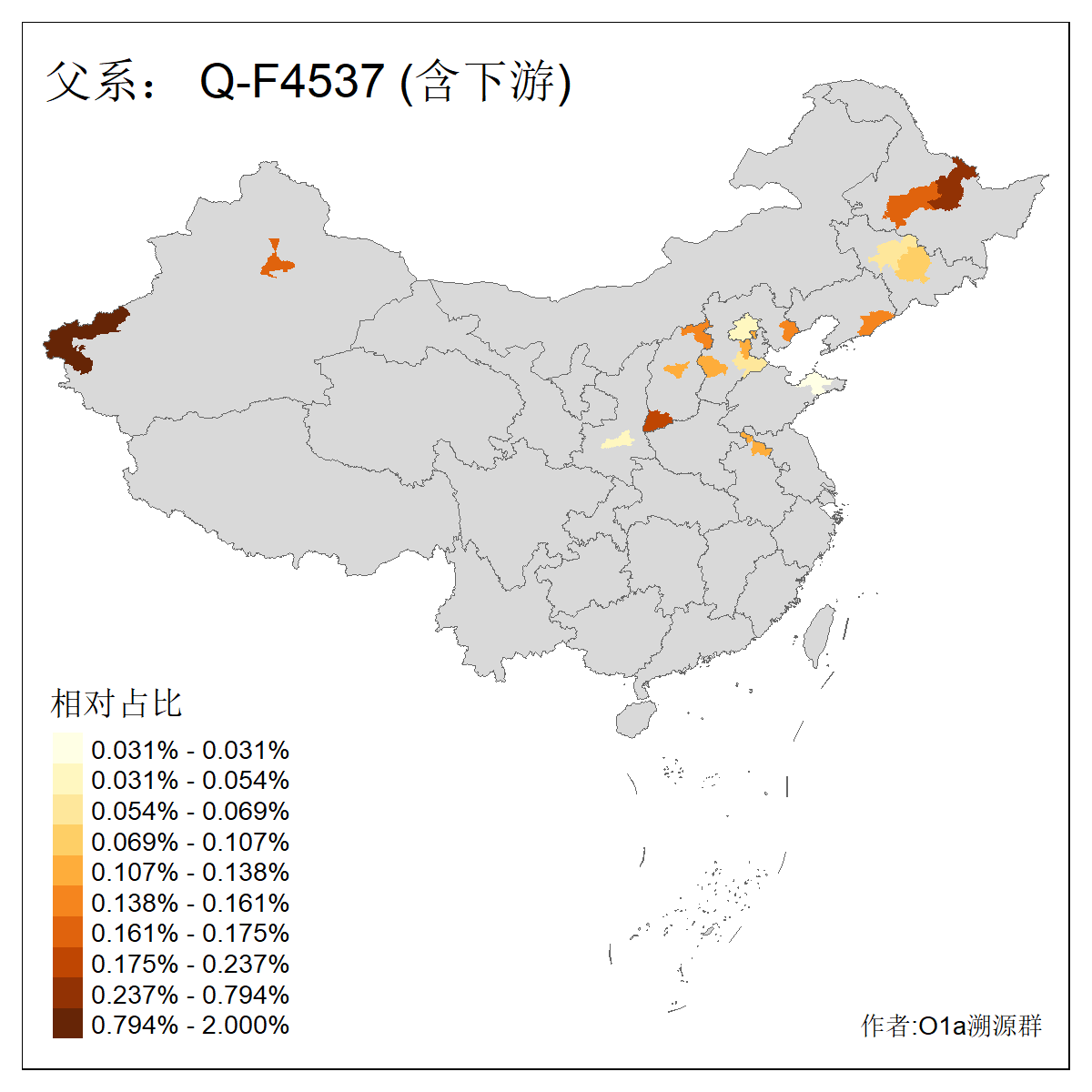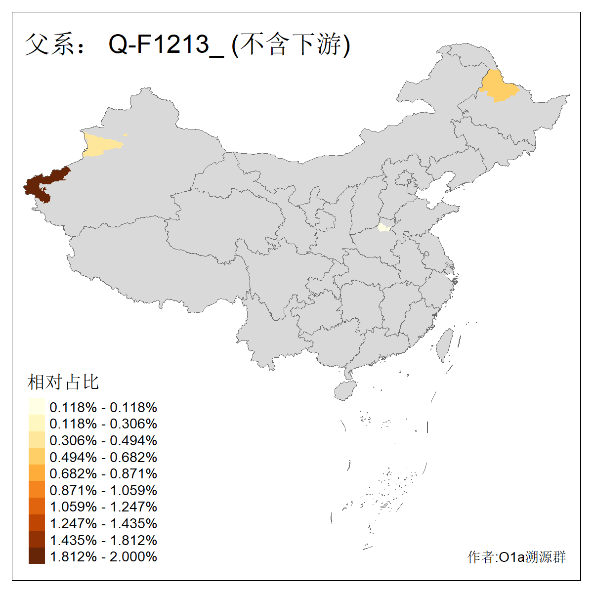 | Q_Q-L275_Q-F1213 | 9730 | 0.042% | 62人(含下游) 李:10 马:6 杨:4 高:3 余:2 努:2 康:2 张:2 艾:2 金:2 阿:2 陈:2 任:1 傅:1 ![]() | 4人(不含下游) 努:1 吾:1 李:1 马:1 ![]() |