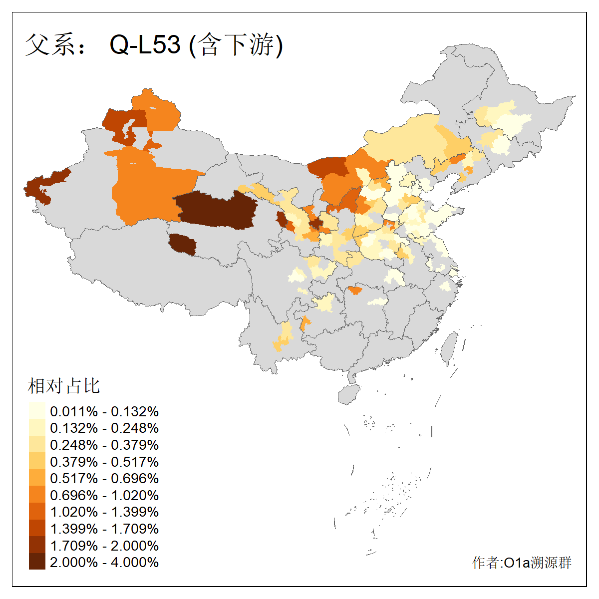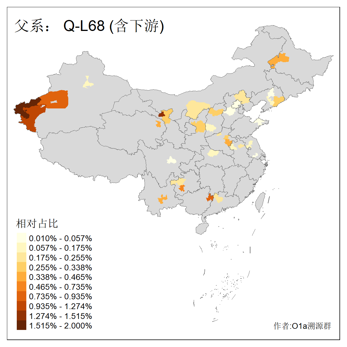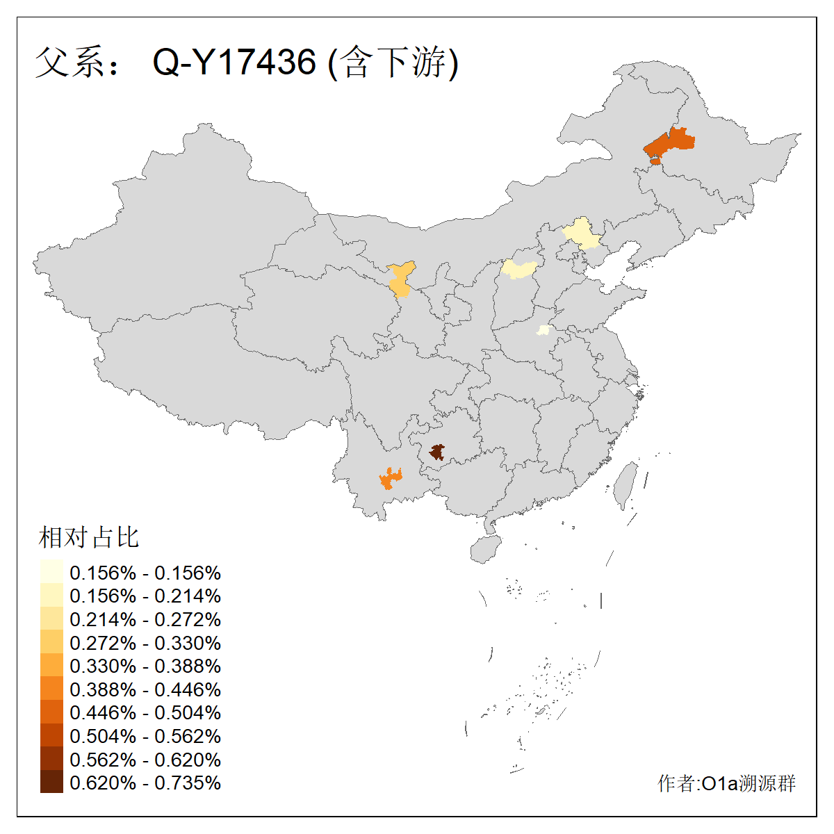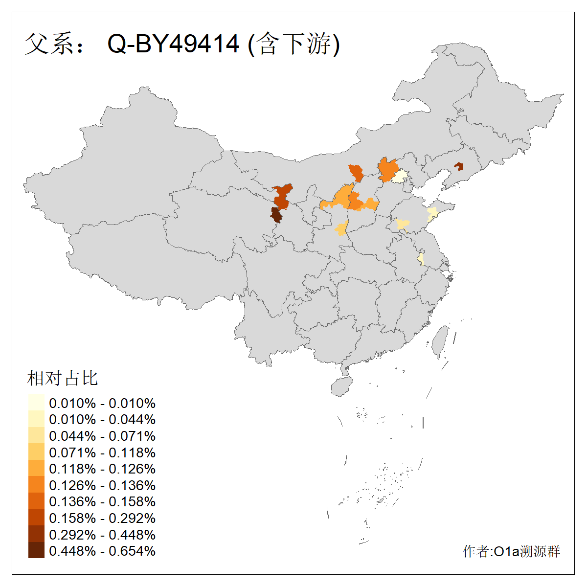 | Q_Q-L472_Q-M346_Q-L53_Q-L54 | 15700 | 0.095% | 223人(含下游) 刘:20 王:20 张:16 李:16 贺:9 马:8 白:7 陈:7 高:6 杨:5 贾:4 郭:4 于:3 周:3 ![]() | 2人(不含下游) 左:1 蔡:1 ![]() |