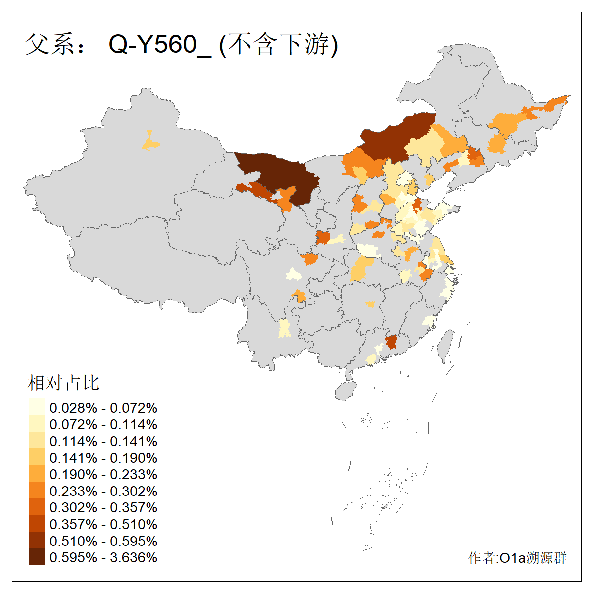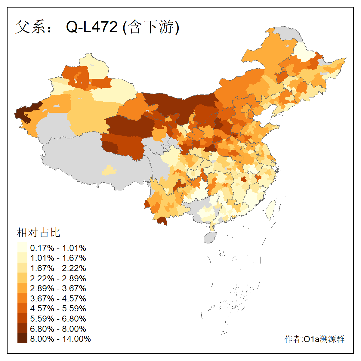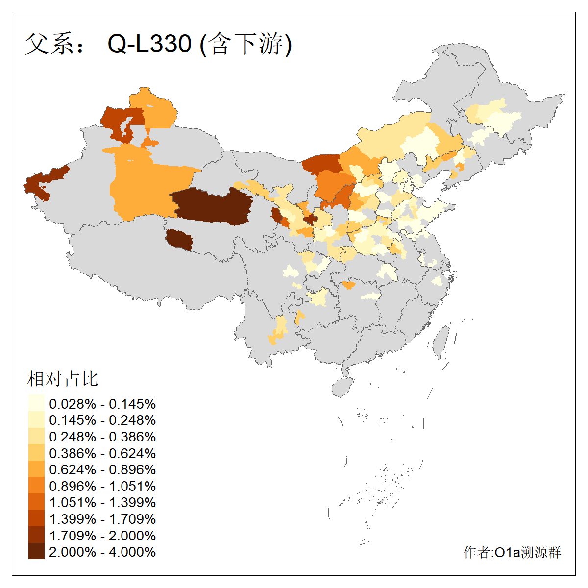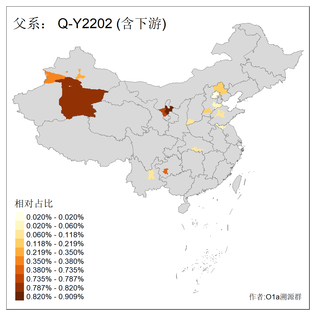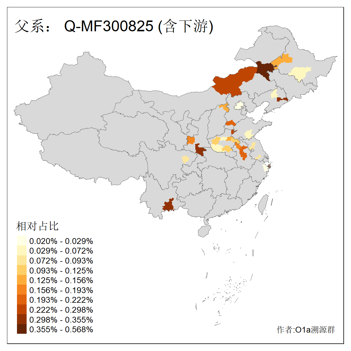 | Q_Q-L472_Q-M346_Q-L53_Q-L54 | 15700 | 0.095% | 223人(含下游) 刘:20 王:20 张:16 李:16 贺:9 马:8 白:7 陈:7 高:6 杨:5 贾:4 郭:4 于:3 周:3 ![]() | 2人(不含下游) 左:1 蔡:1 ![]() |