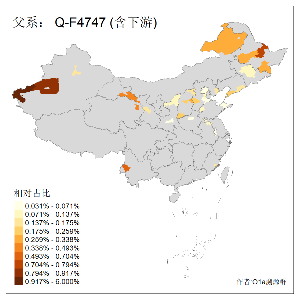 | Q_Q-L472_Q-M346_Q-Y2659_Q-F835 | 16340 | 0.046% | 66人(含下游) 李:10 马:10 王:6 张:4 赵:3 冯:2 刘:2 安:2 杨:2 白:2 买:1 依:1 叶:1 吐:1 ![]() | 32人(不含下游) 李:8 赵:3 张:2 杨:2 王:2 买:1 依:1 冯:1 刘:1 安:1 武:1 白:1 石:1 穆:1 ![]() |