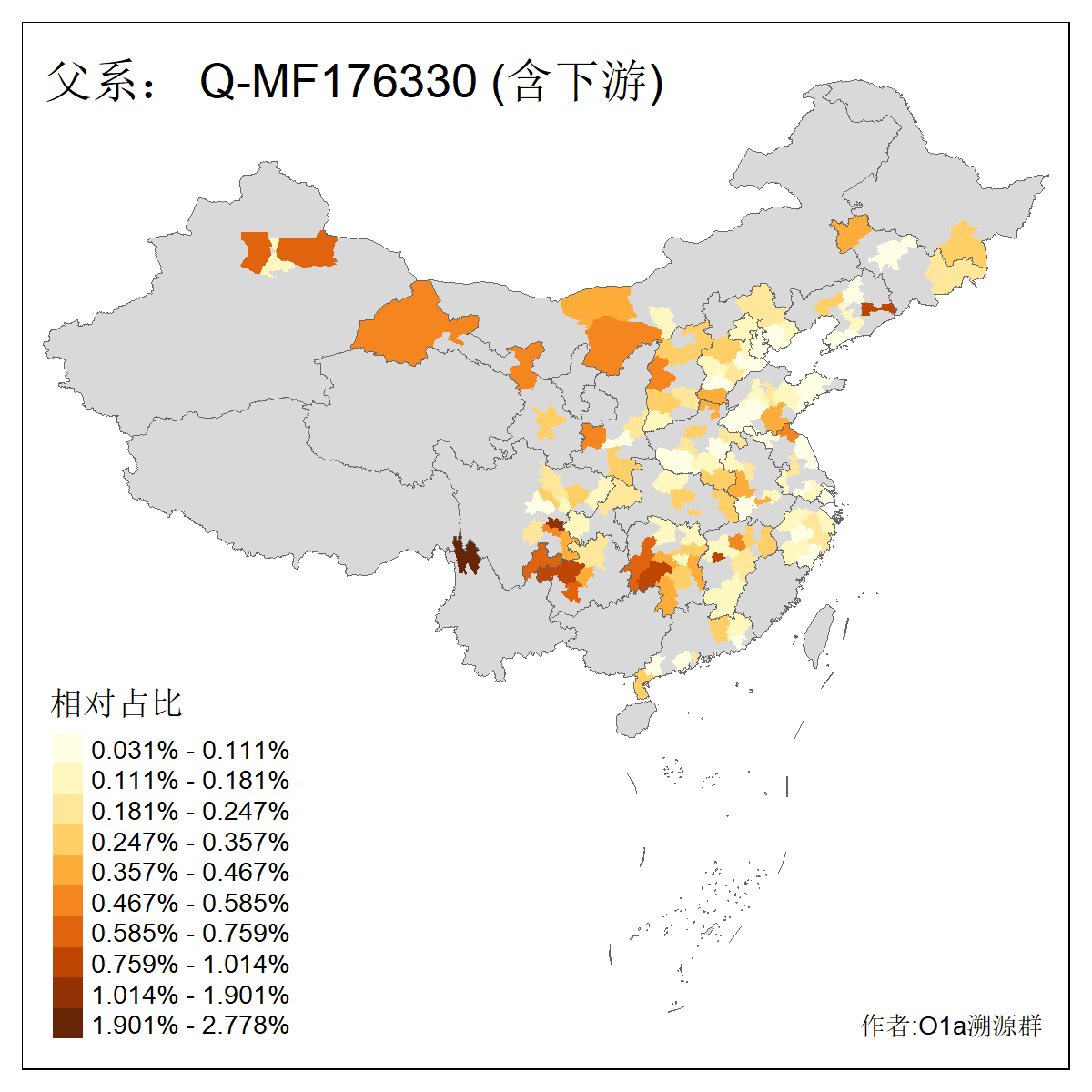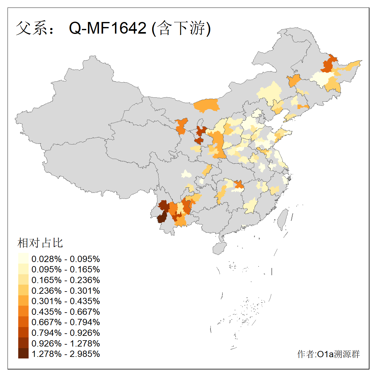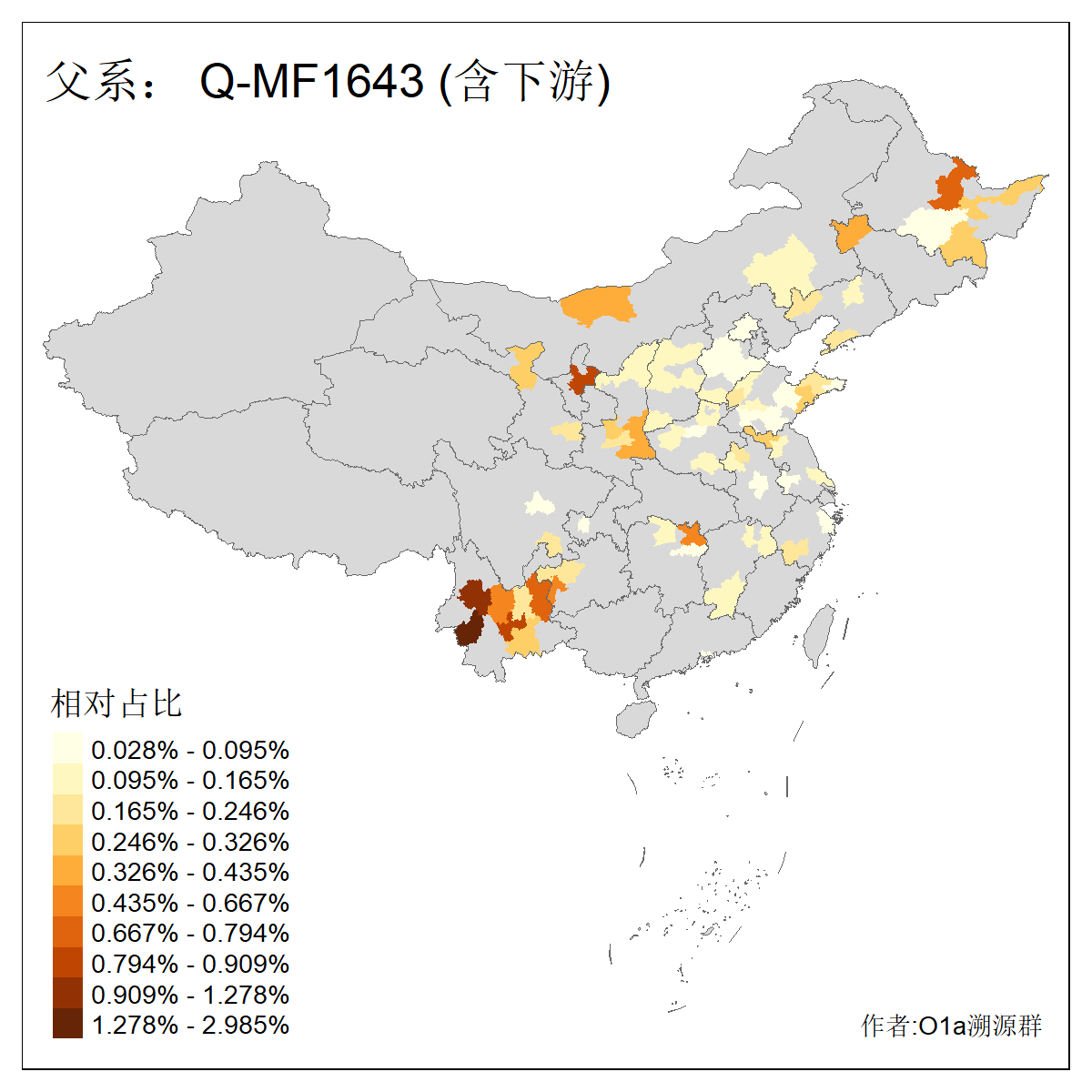 | Q_Q-L472_Q-F1096_Q-F746_Q-M120_Q-Y630_Q-Z19154_Q-F1626_Q-Y560_Q-Y542_Q-F4528_Q-Y565_Q-F4777_Q-F4759_Q-Y559_Q-Y17430_Q-Y557_Q-MF176330 | 3030 | 0.503% | 272人(含下游) 张:36 李:16 王:14 陈:12 刘:11 孙:8 居:8 周:7 龚:7 杨:6 许:6 范:5 邢:5 兴:4 ![]() | 0人(不含下游) |