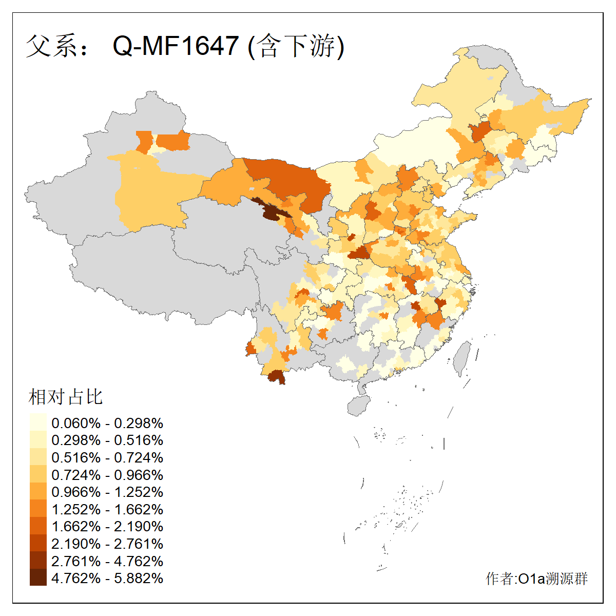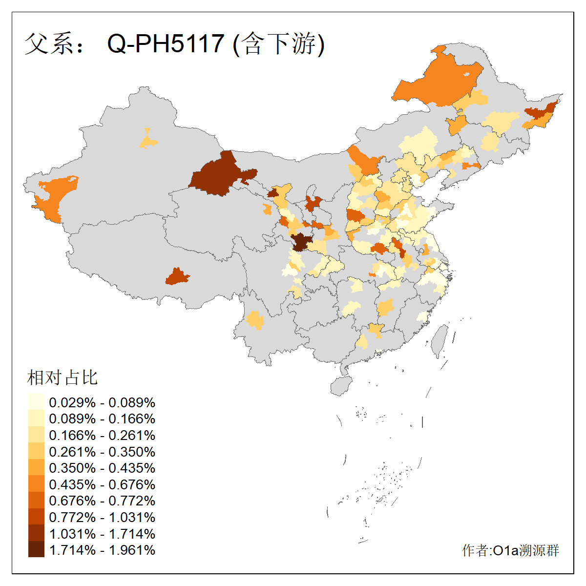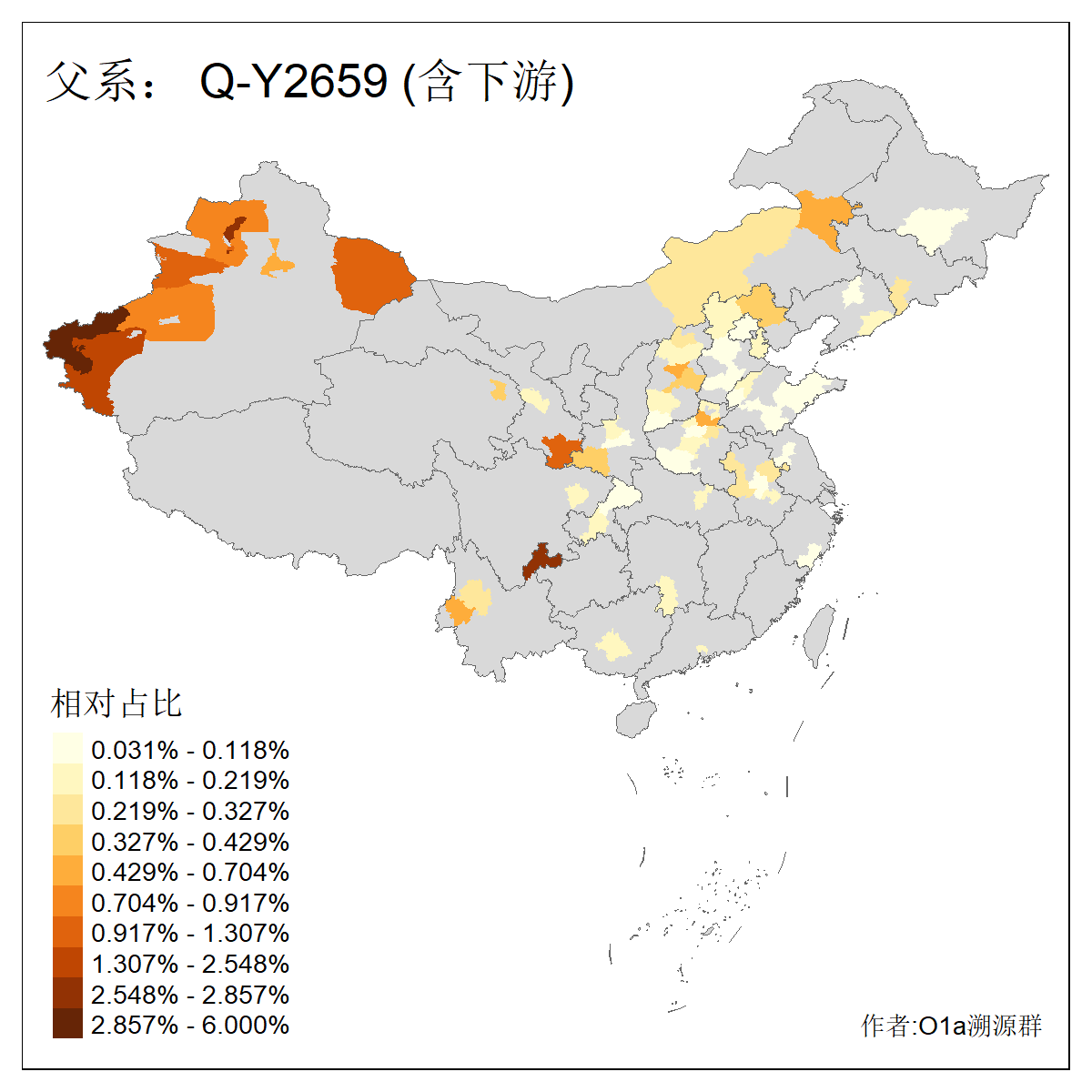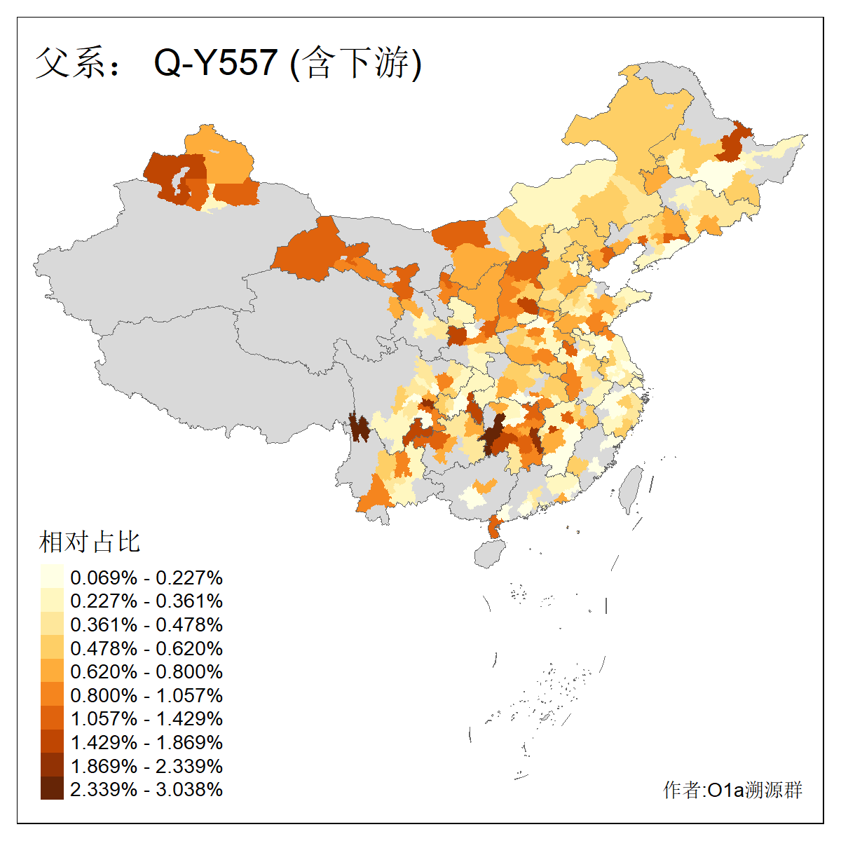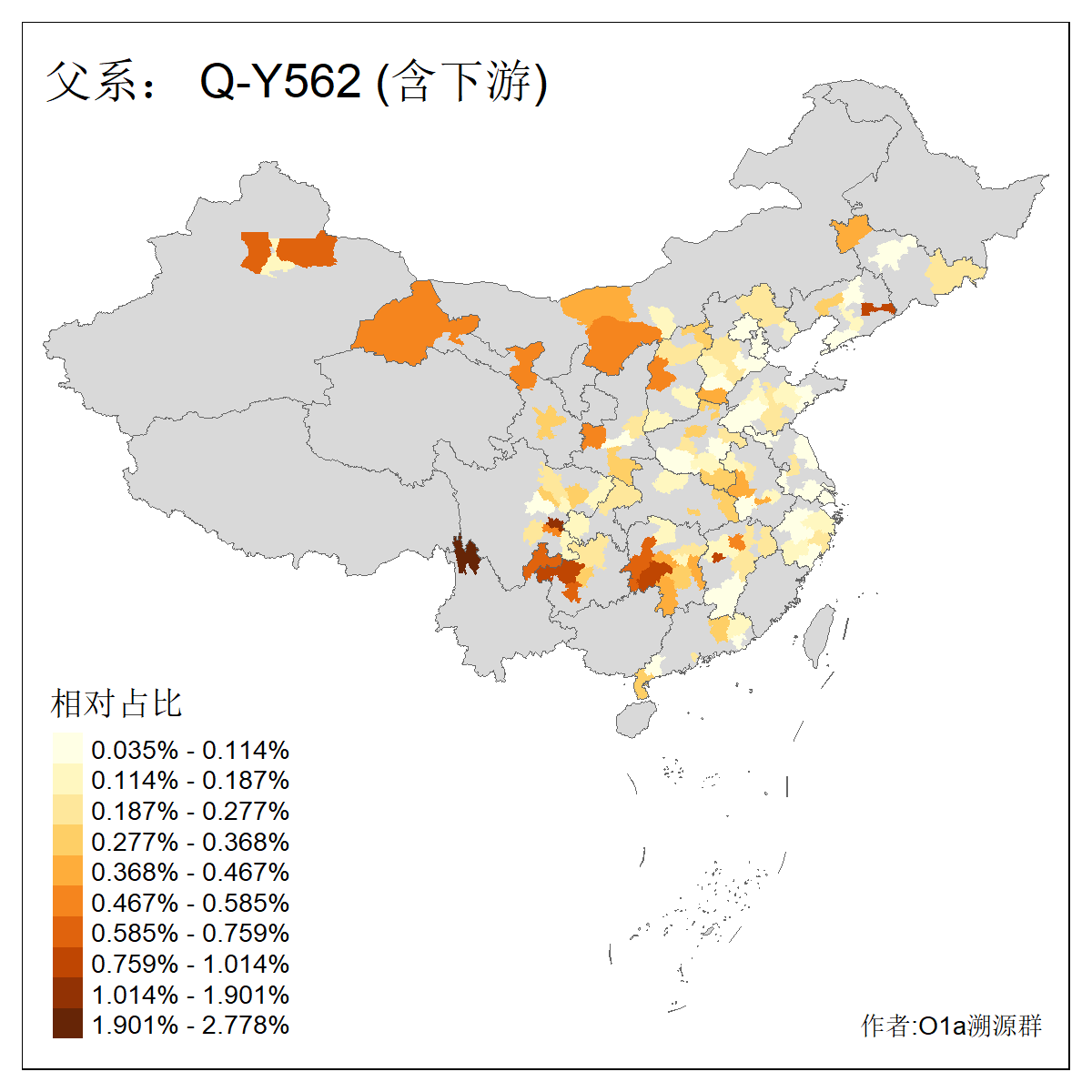 | Q_Q-L472_Q-F1096_Q-F746_Q-M120_Q-Y630_Q-Z19154_Q-F1626_Q-Y560_Q-Y542_Q-F4528_Q-Y565_Q-F4777_Q-F4759_Q-Y559_Q-Y17430_Q-Y557_Q-MF176330_Q-Y562 | 2960 | 0.133% | 244人(含下游) 张:34 李:14 王:11 陈:11 刘:8 孙:8 居:8 周:7 龚:7 杨:6 许:5 邢:5 兴:4 吴:4 ![]() | 87人(不含下游) 张:16 李:7 周:4 孙:4 王:4 陈:4 牛:3 龚:3 丁:2 刘:2 吴:2 曹:2 秦:2 葛:2 ![]() |