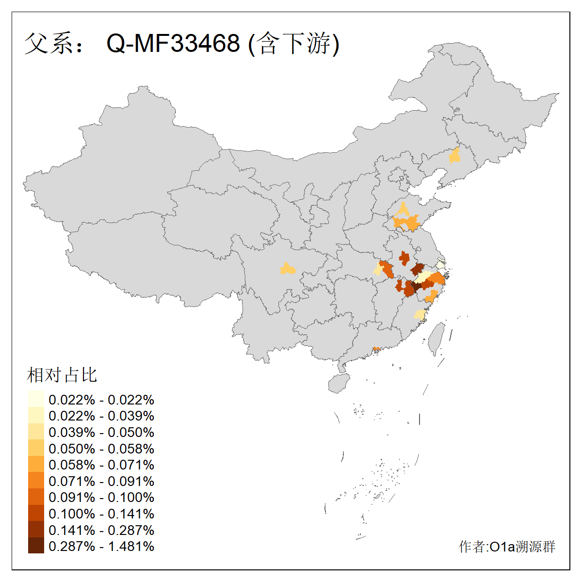 | Q_Q-L472_Q-F1096_Q-F746_Q-M120_Q-Y630_Q-Z19154_Q-F1626_Q-MF1647_Q-MF31071_Q-MF33468 | 1750 | 0.044% | 34人(含下游) 郑:9 毛:5 王:3 孙:2 殷:2 赵:2 陈:2 叶:1 吕:1 吾:1 周:1 姜:1 李:1 祝:1 ![]() | 17人(不含下游) 王:3 孙:2 毛:2 郑:2 叶:1 周:1 姜:1 李:1 殷:1 翁:1 陈:1 韩:1 ![]() |