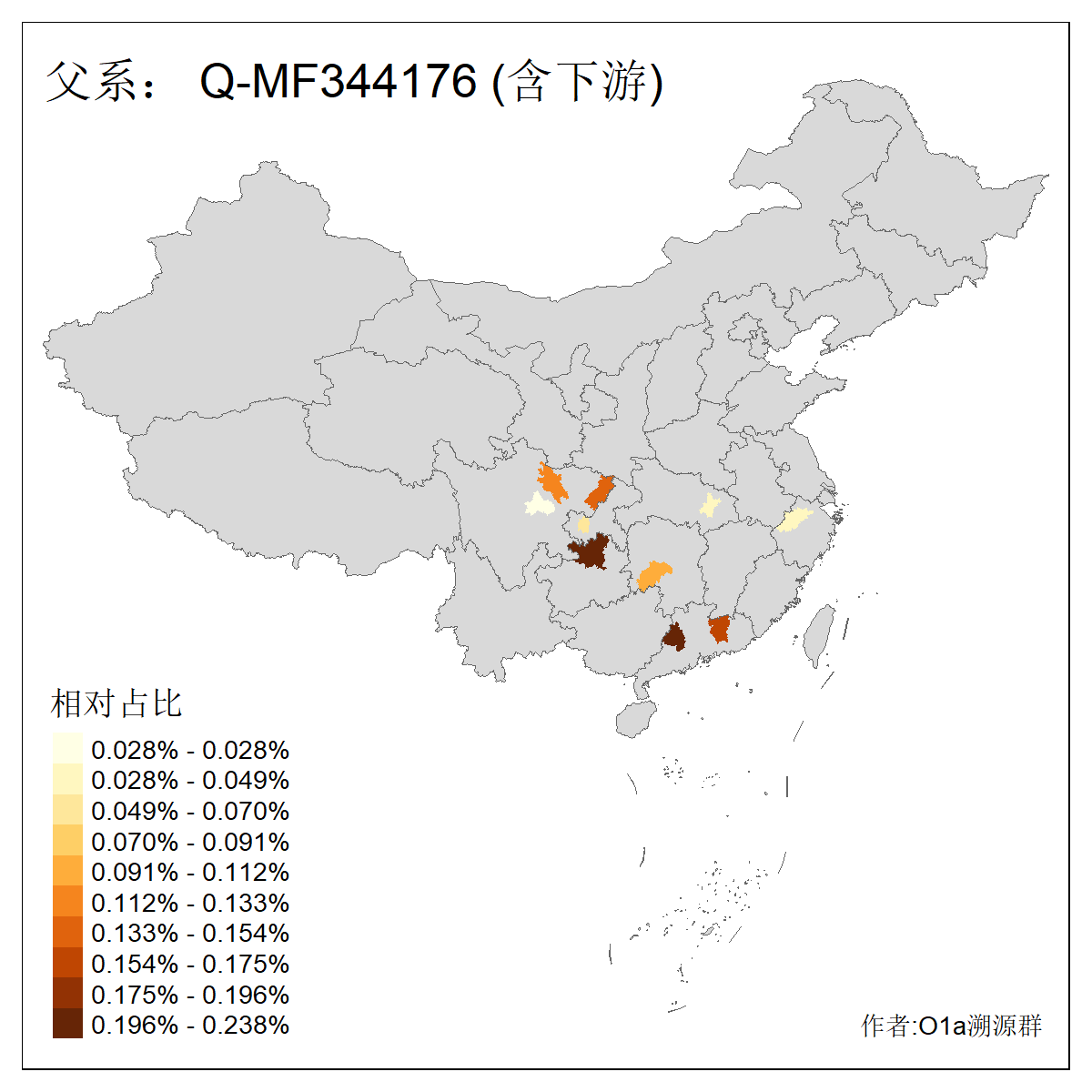 | Q_Q-L472_Q-M346_Q-Y2659_Q-F4674_Q-F4774 | 15960 | 0.023% | 42人(含下游) 张:8 洪:6 王:4 陈:3 亚:2 杨:2 艾:2 何:1 凯:1 刘:1 包:1 奴:1 木:1 李:1 ![]() | 16人(不含下游) 洪:6 张:2 凯:1 包:1 奴:1 秦:1 艾:1 连:1 陈:1 ![]() |