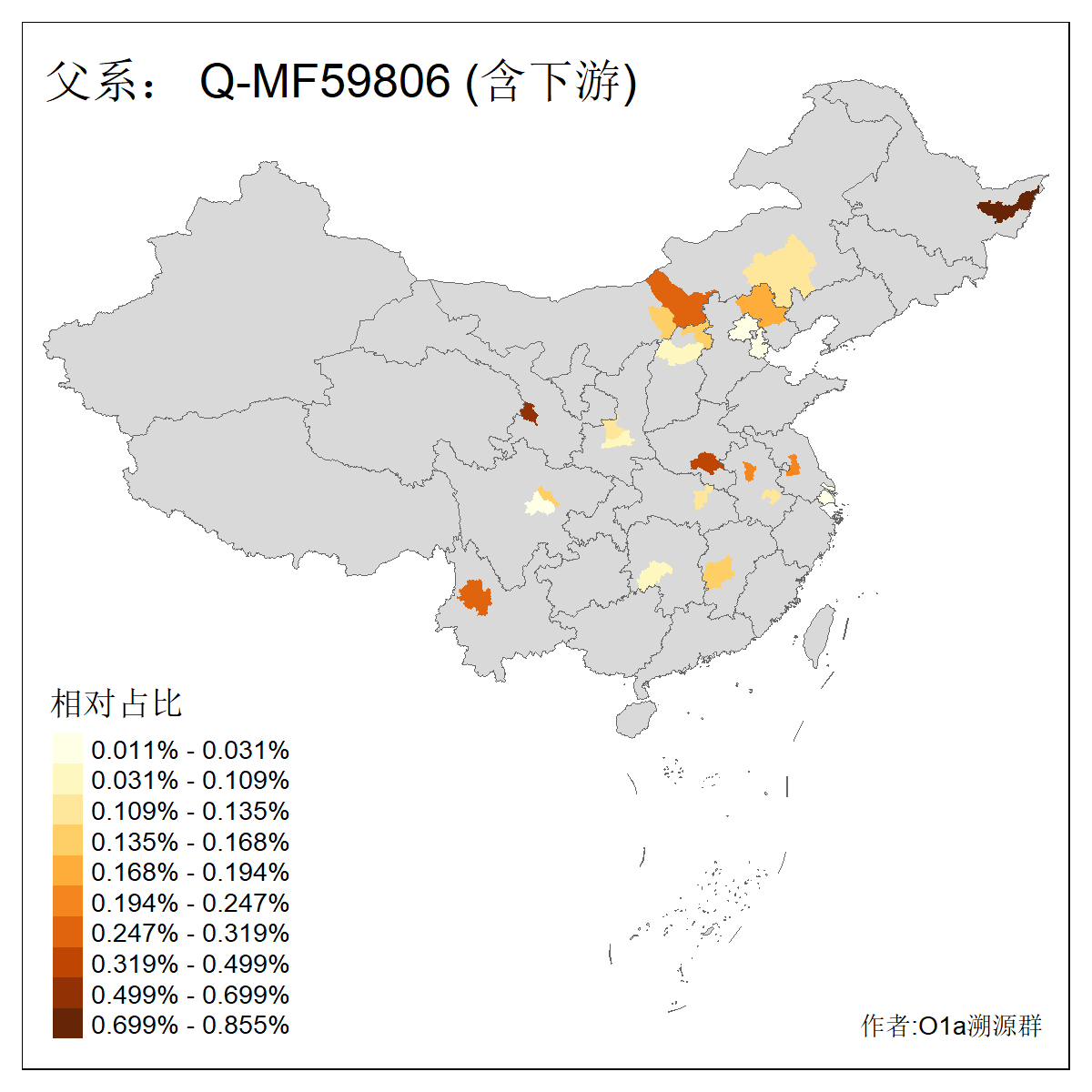 | Q_Q-L275_Q-F1213_Q-Y2076_Q-M378 | 8280 | 0.032% | 57人(含下游) 李:9 马:5 杨:4 高:3 余:2 康:2 张:2 艾:2 金:2 阿:2 陈:2 任:1 傅:1 刘:1 ![]() | 1人(不含下游) 阿:1 ![]() |