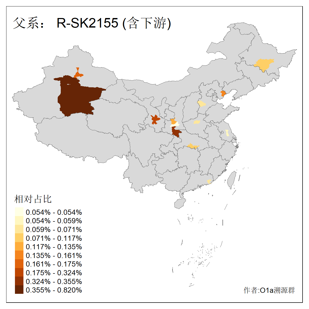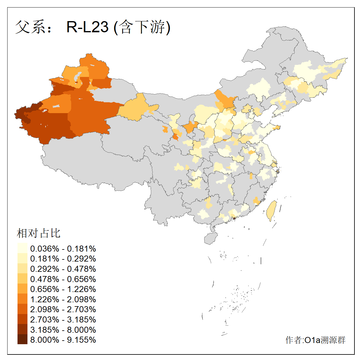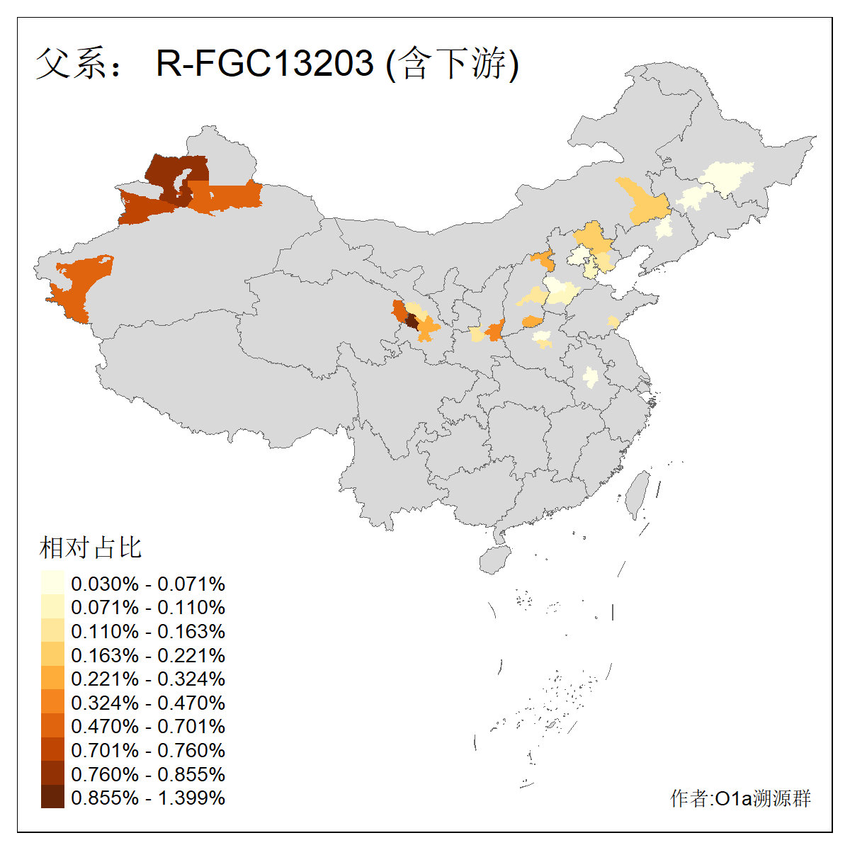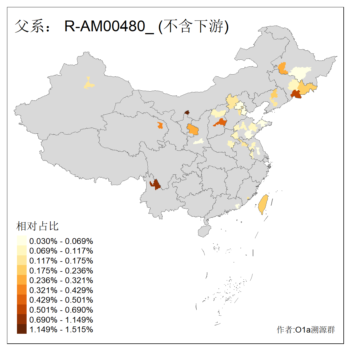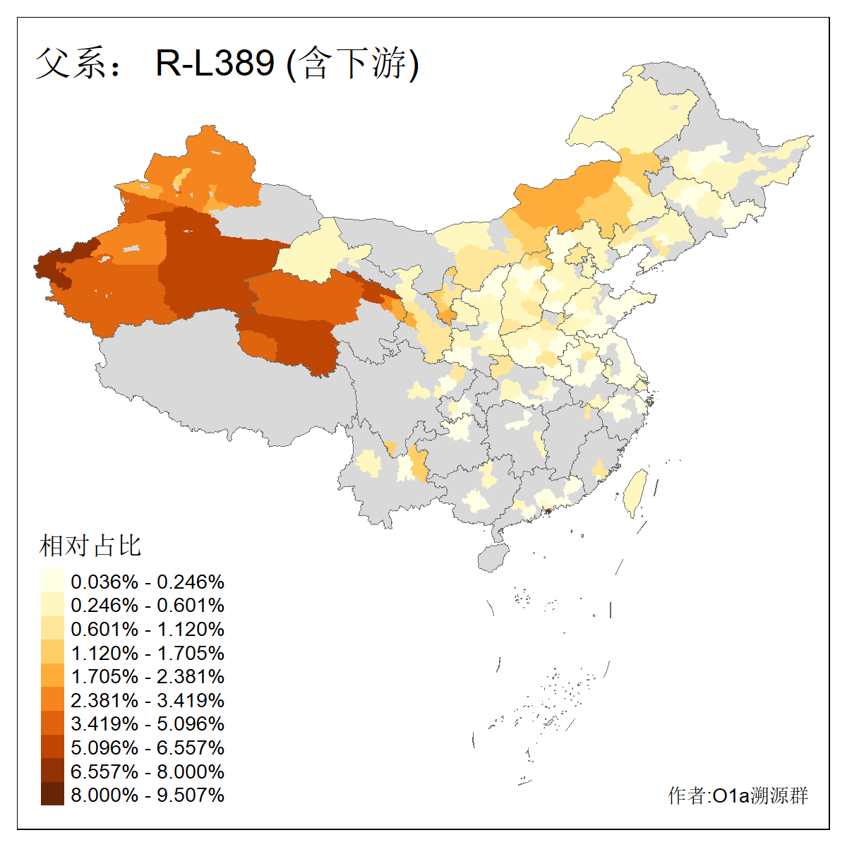 | R_R-Y482_R1_R-M343_R-L754_R-L761 | 17730 | 0.291% | 673人(含下游) 张:46 李:37 王:36 马:35 刘:25 杨:21 丁:12 曹:12 苗:12 安:10 韩:10 白:8 艾:8 赵:8 ![]() | 20人(不含下游) 张:5 杨:4 白:2 阎:2 扈:1 曹:1 李:1 霍:1 韩:1 ![]() |