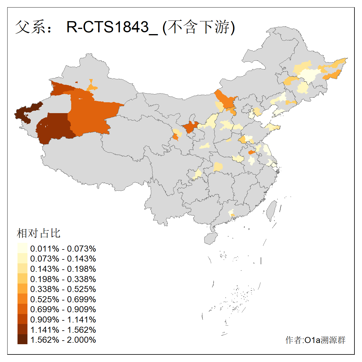 | R_R-Y482_R1_R1a_R-M459_R-M198_R-M417_R-PF6162_R-F992_R-F3105_R-AM00480_R-Y2_R-L657.1_R-M648_R-M787 | 3350 | 0.036% | 59人(含下游) 来:4 艾:4 张:3 李:3 杨:3 金:3 徐:2 忽:2 王:2 苏:2 郭:2 阿:2 于:1 任:1 ![]() | 54人(不含下游) 来:4 艾:4 张:3 李:3 杨:3 徐:2 王:2 苏:2 金:2 阿:2 于:1 任:1 伊:1 单:1 ![]() |