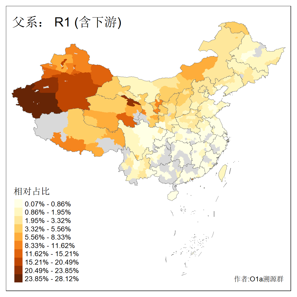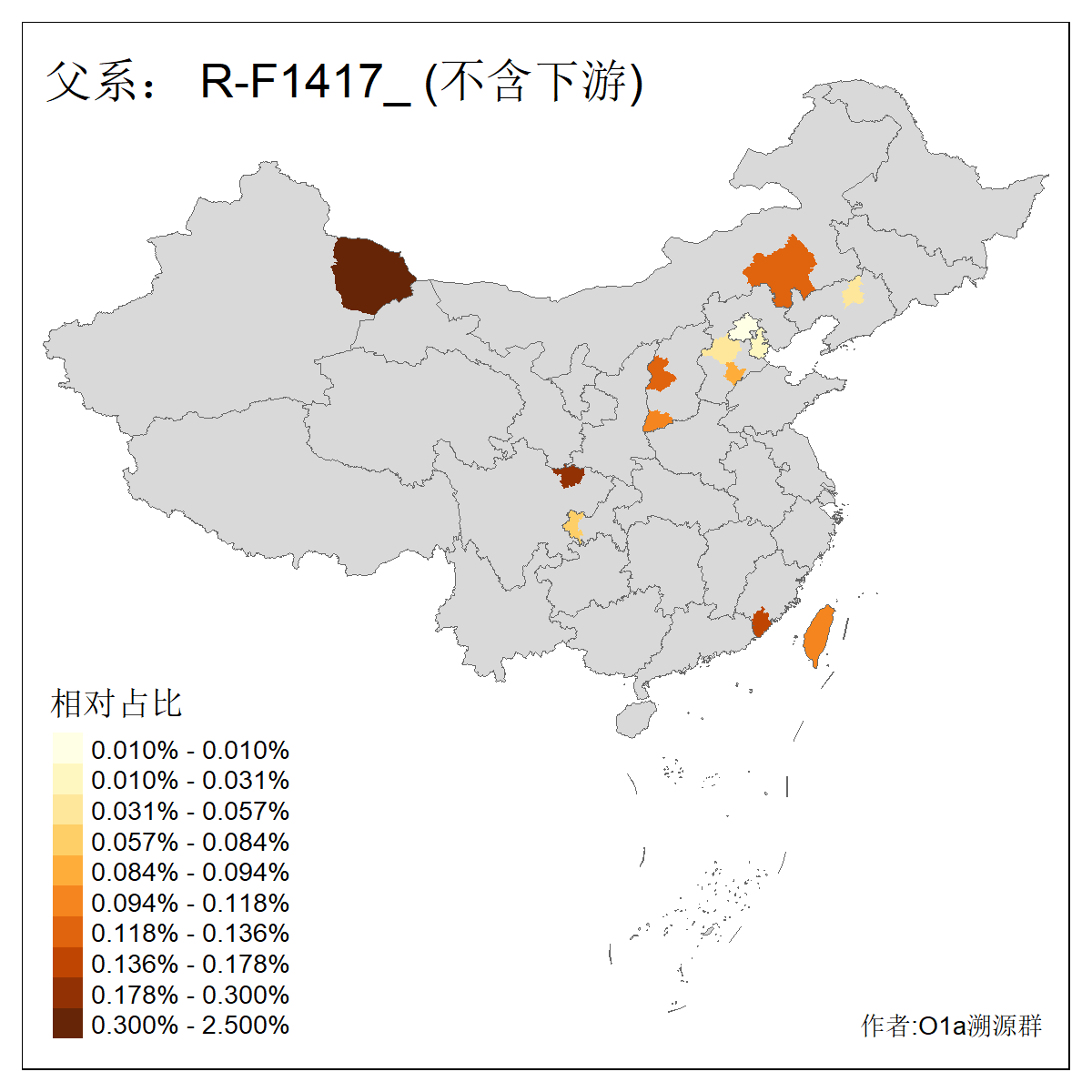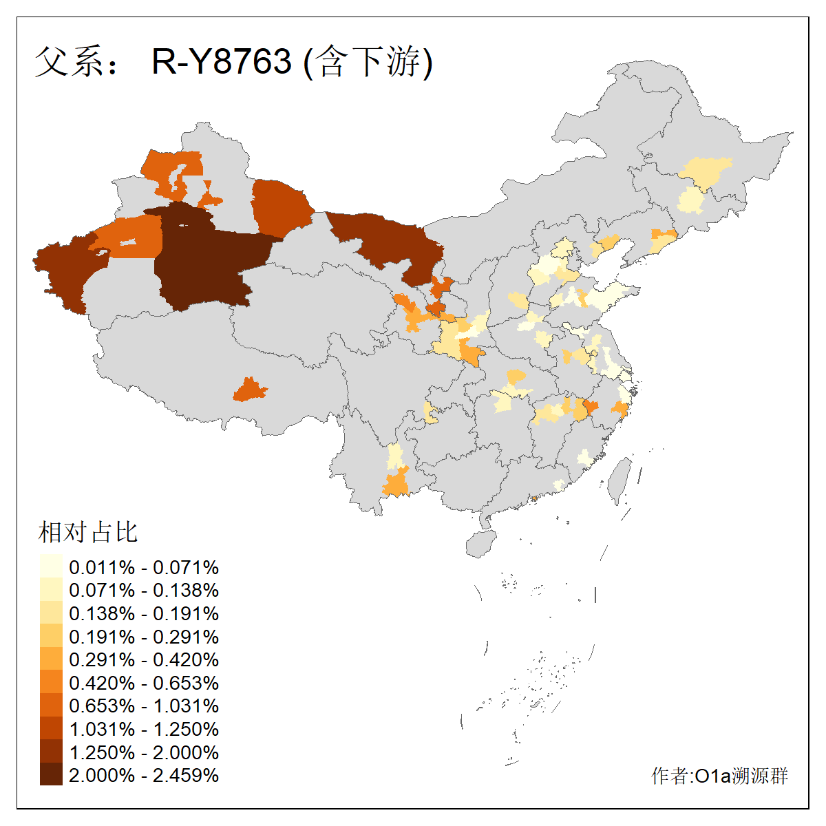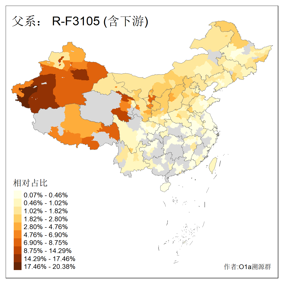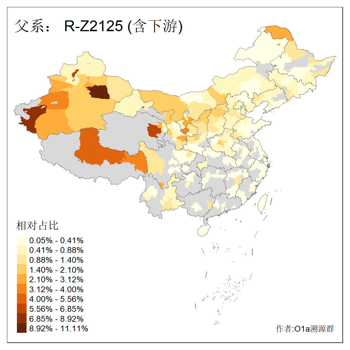 | R_R-Y482_R1_R1a_R-M459_R-M198_R-M417_R-PF6162_R-F992_R-F3105_R-Z2124_R-S4576 | 4160 | 0.100% | 212人(含下游) 王:18 张:17 李:12 卓:10 马:10 刘:9 白:9 陈:9 徐:6 胡:6 高:6 杨:5 赵:5 郑:4 ![]() | 36人(不含下游) 王:4 张:3 白:3 雷:3 马:2 克:1 吴:1 察:1 屈:1 康:1 徐:1 施:1 曹:1 李:1 ![]() |